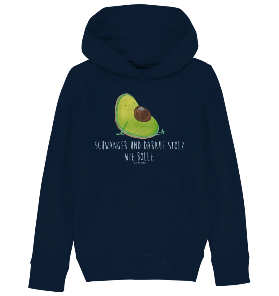 Organic Kids Hoodie avocado pregnancy - 5-6 Jahre (110/116) - with saying - French Navy
