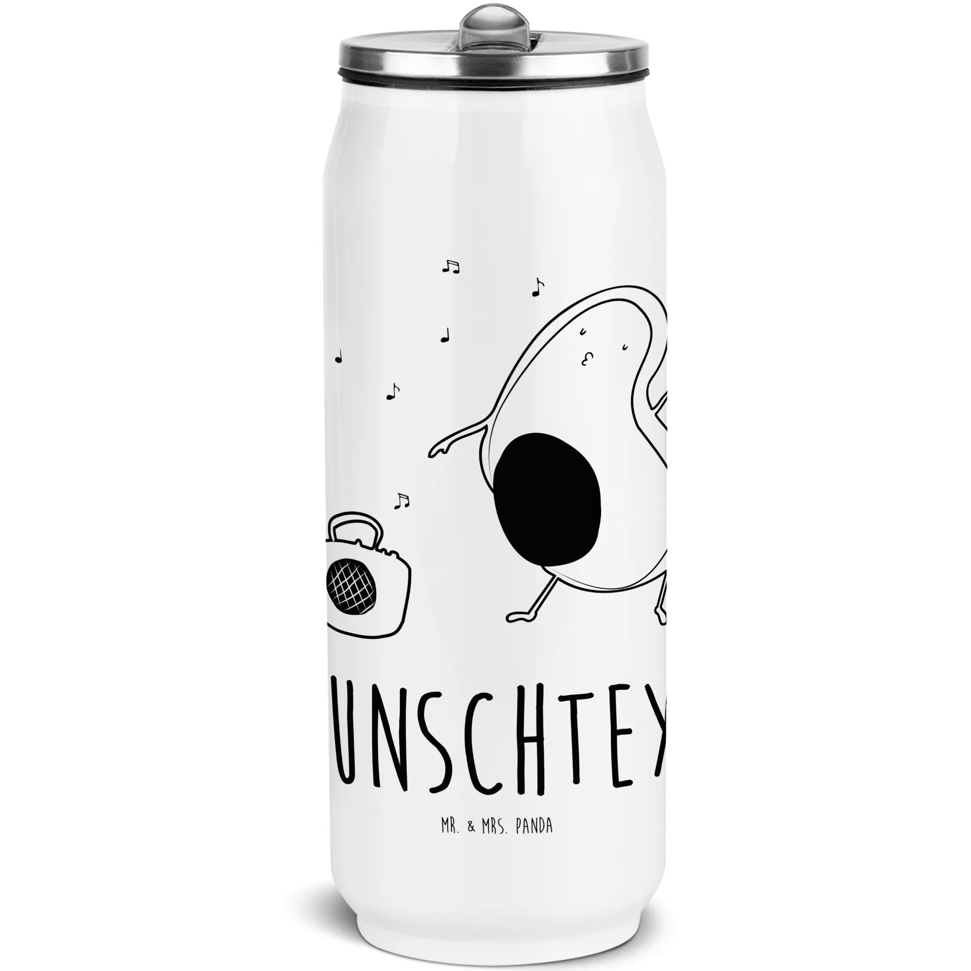 Du bist auf der Suche nach dem perfekten Geschenk für einen lieben Menschen? Dann ist die personalisierte Getränkedose Trinkflasche "Avocado tanzt" aus der einzigartigen Avocado Kollektion von Mr. & Mrs. Panda genau das Richtige! Mit einem niedlichen Motiv einer tanzenden Avocado vor einem Ghettoblaster bringt sie jeden zum Schmunzeln und zaubert ein Lächeln ins Gesicht.