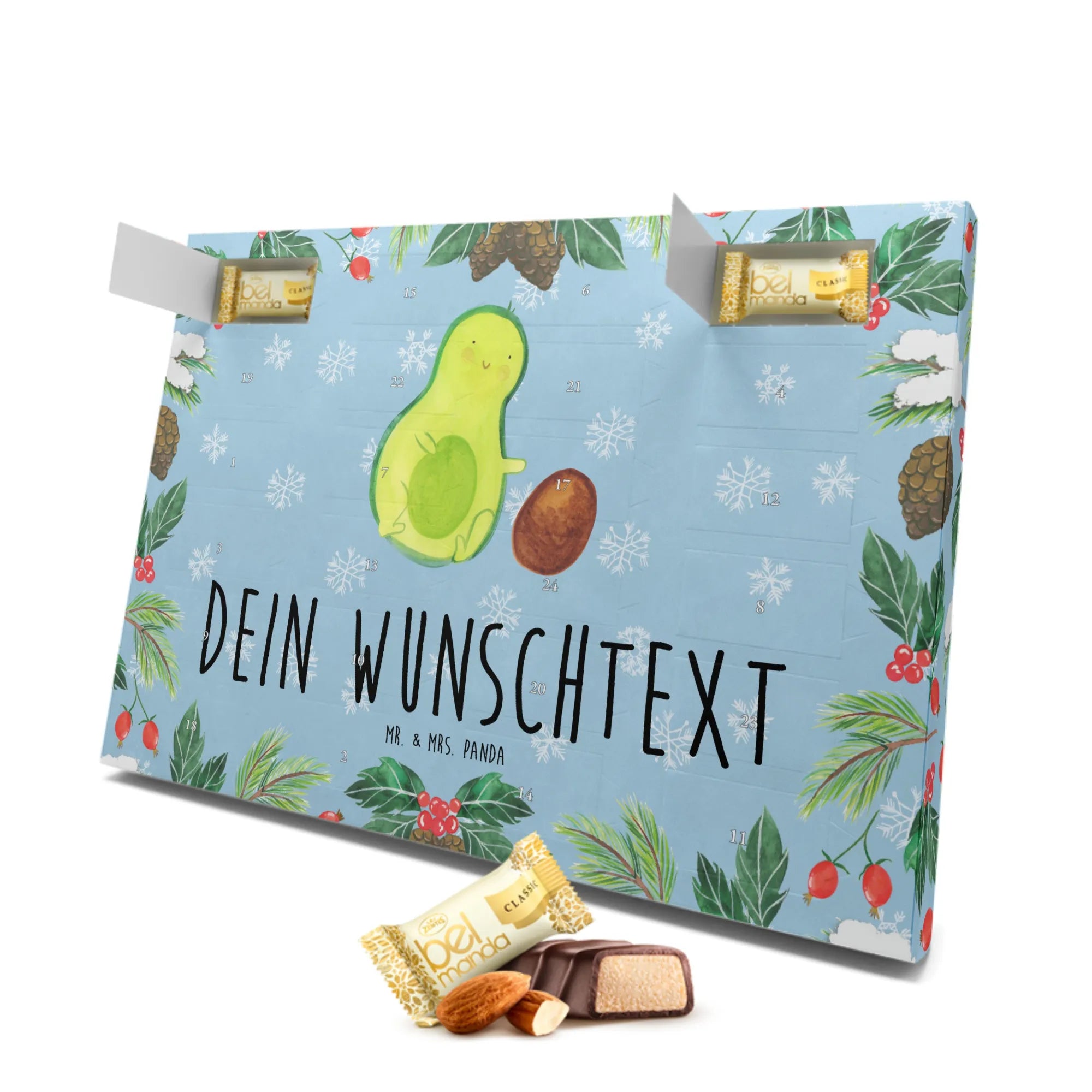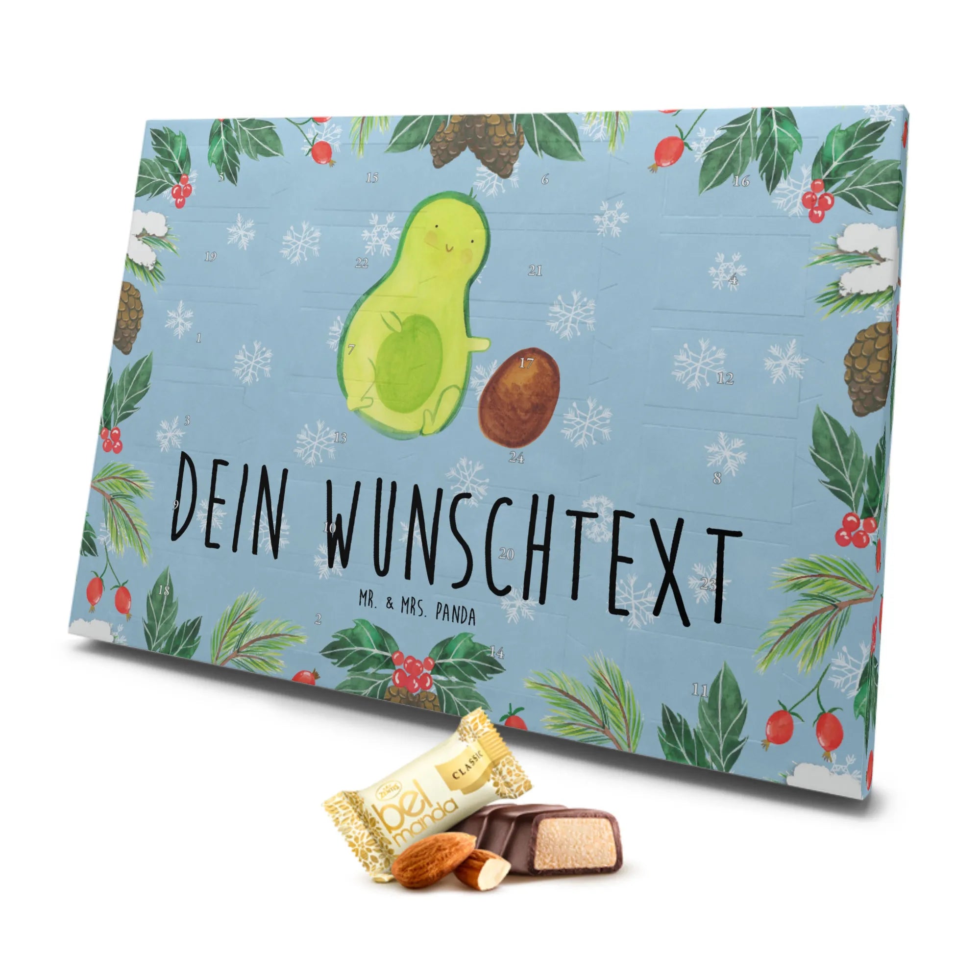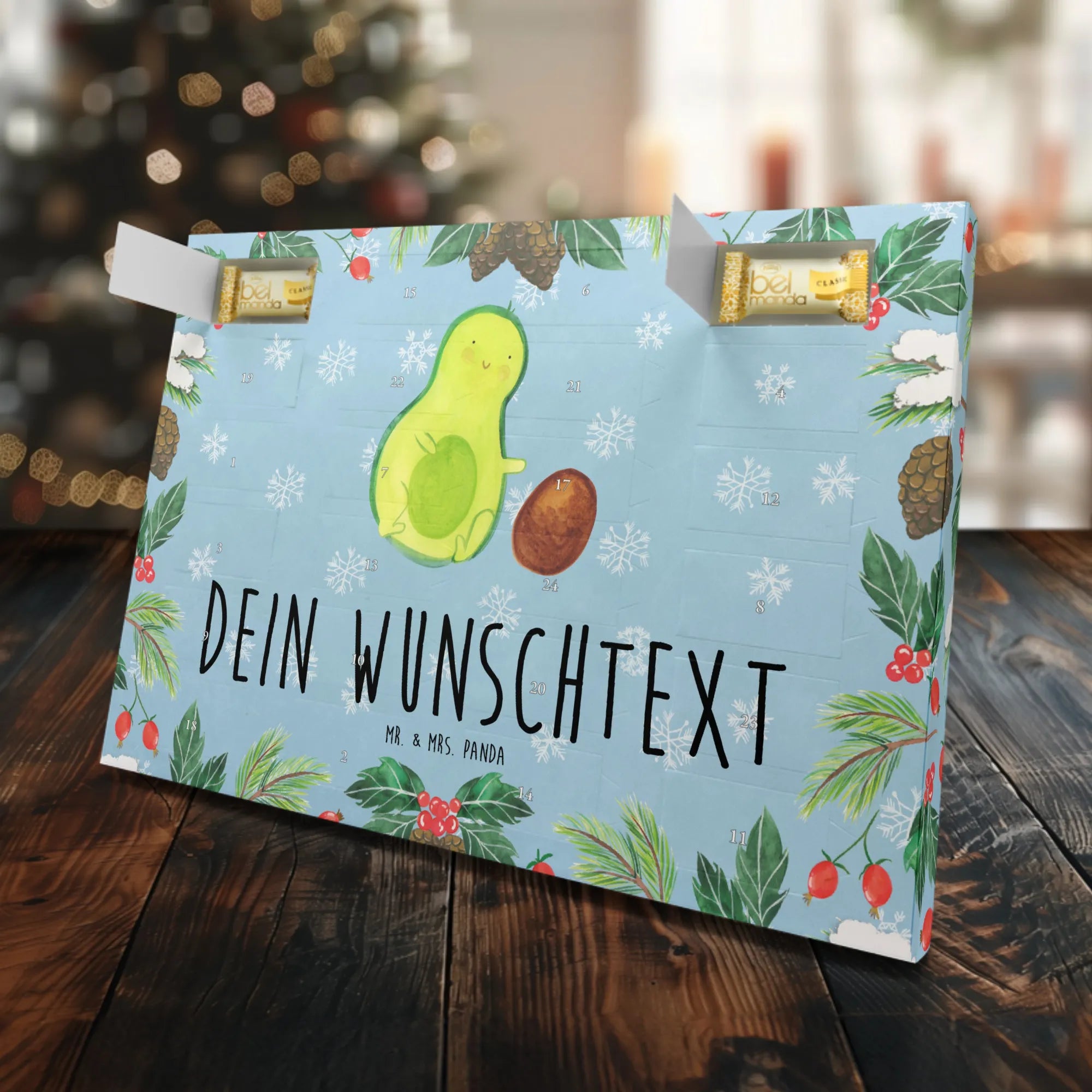 Mit einer liebevoll handgezeichneten Avocado, die ihren Kern vor sich her rollt, ist er nicht nur ein leckeres Highlight, sondern auch ein Blickfang in jedem Zuhause. Er wird mit 24 persönlichen Pralinés gefüllt, die jeden Tag im Advent zu einem kleinen Fest machen. Und das Beste: Du kannst ihn mit deinem Wunschtext personalisieren!