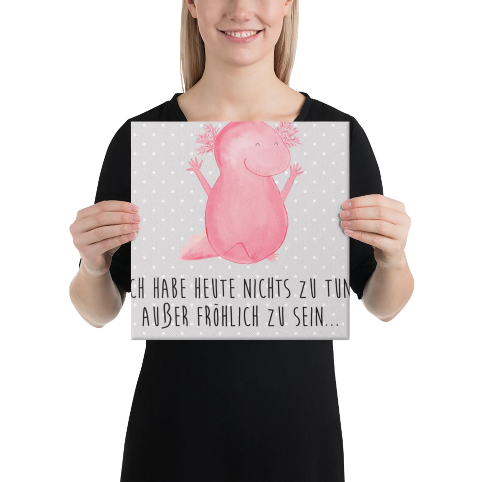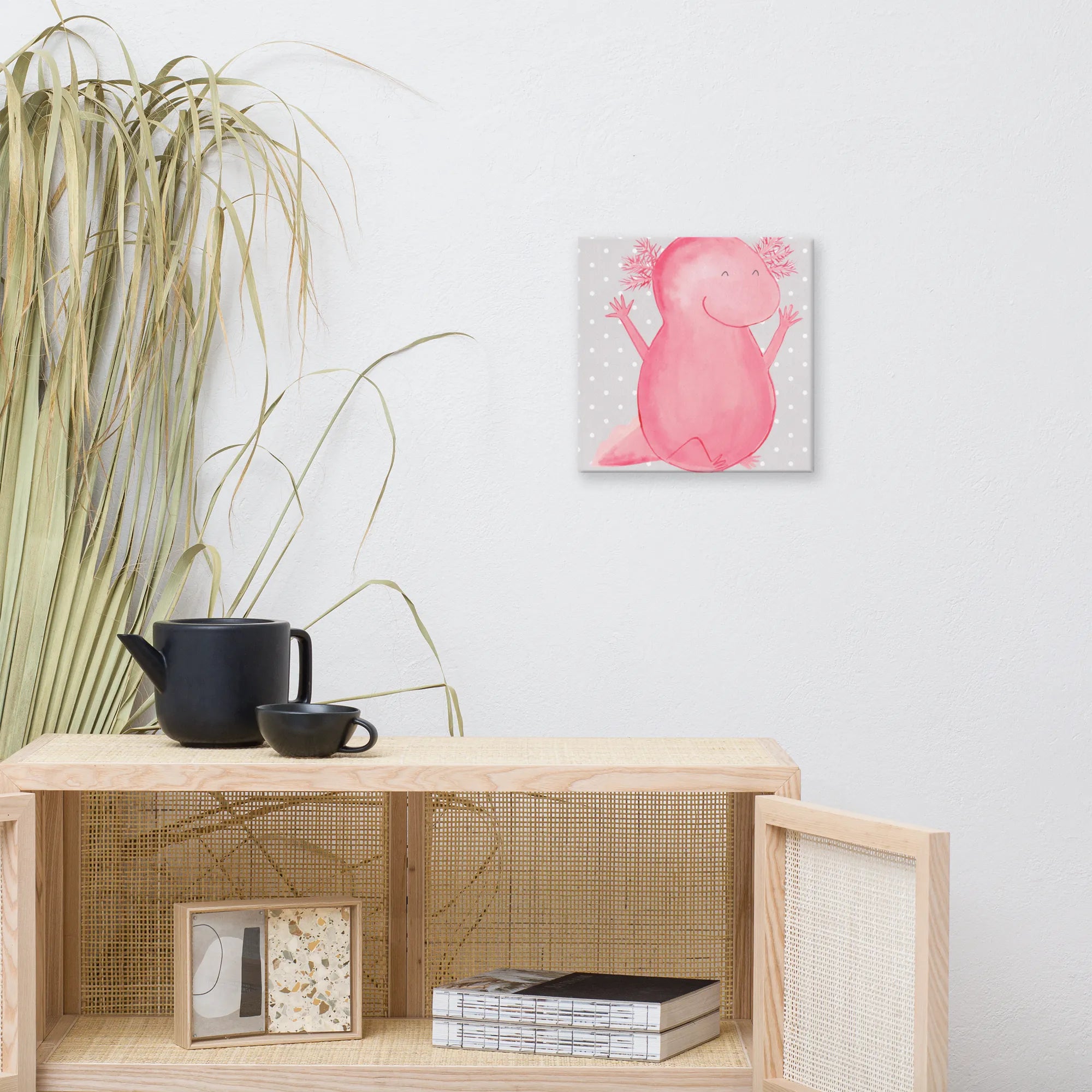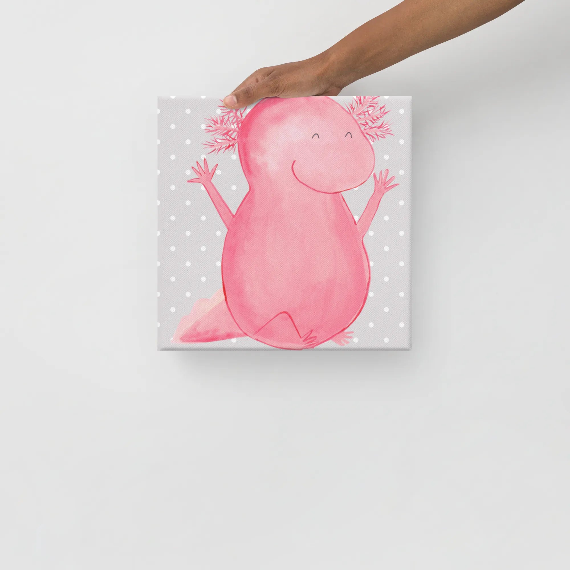 Canvas picture axolotl Hooray - 40 x 40 cm - with saying - Pastel Gray