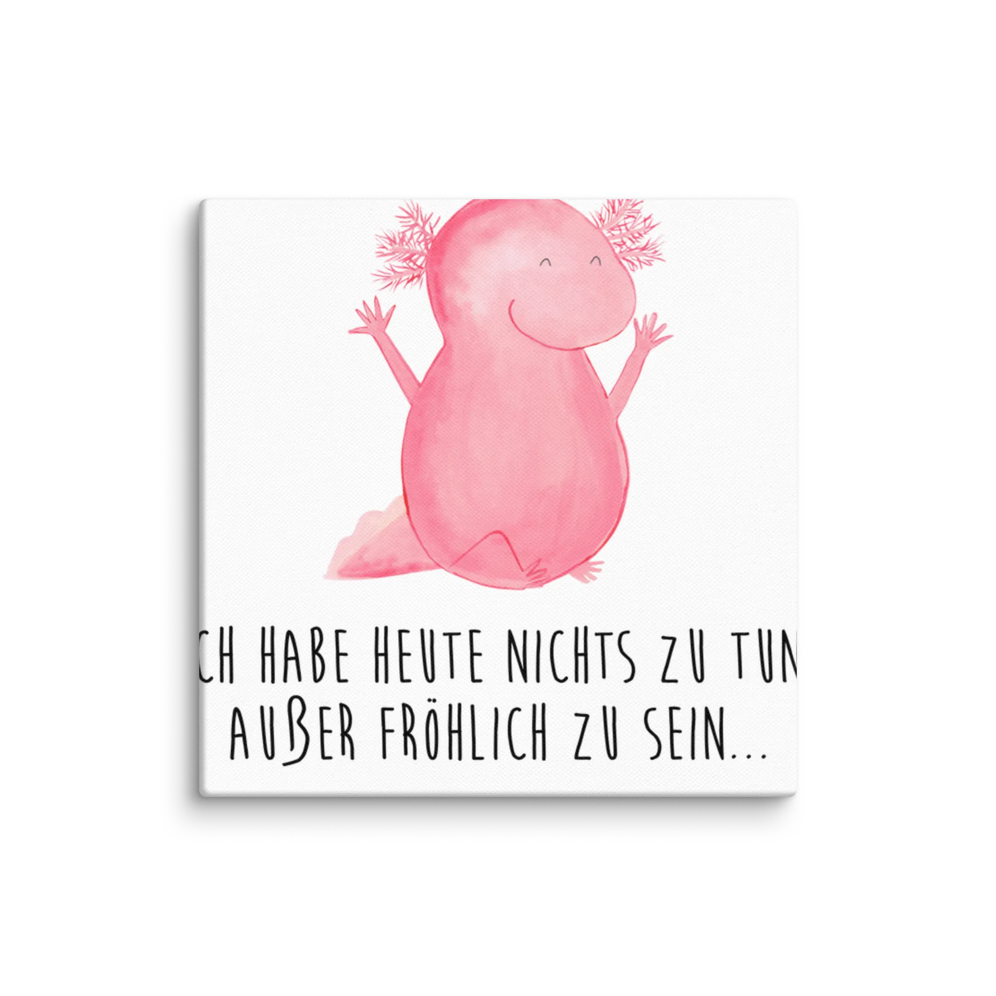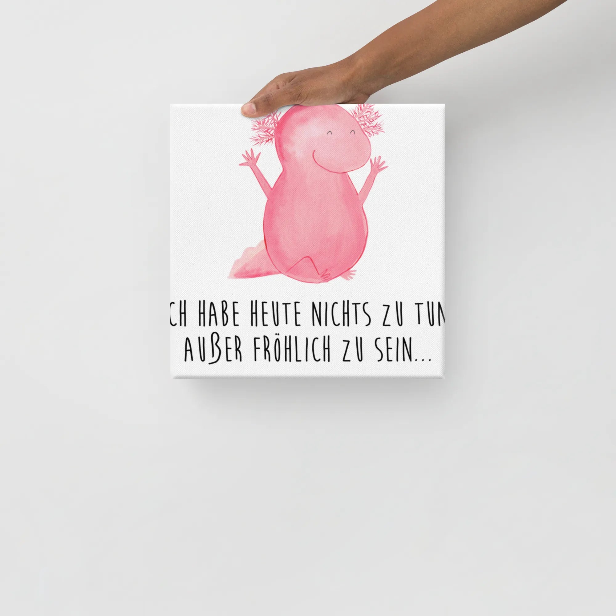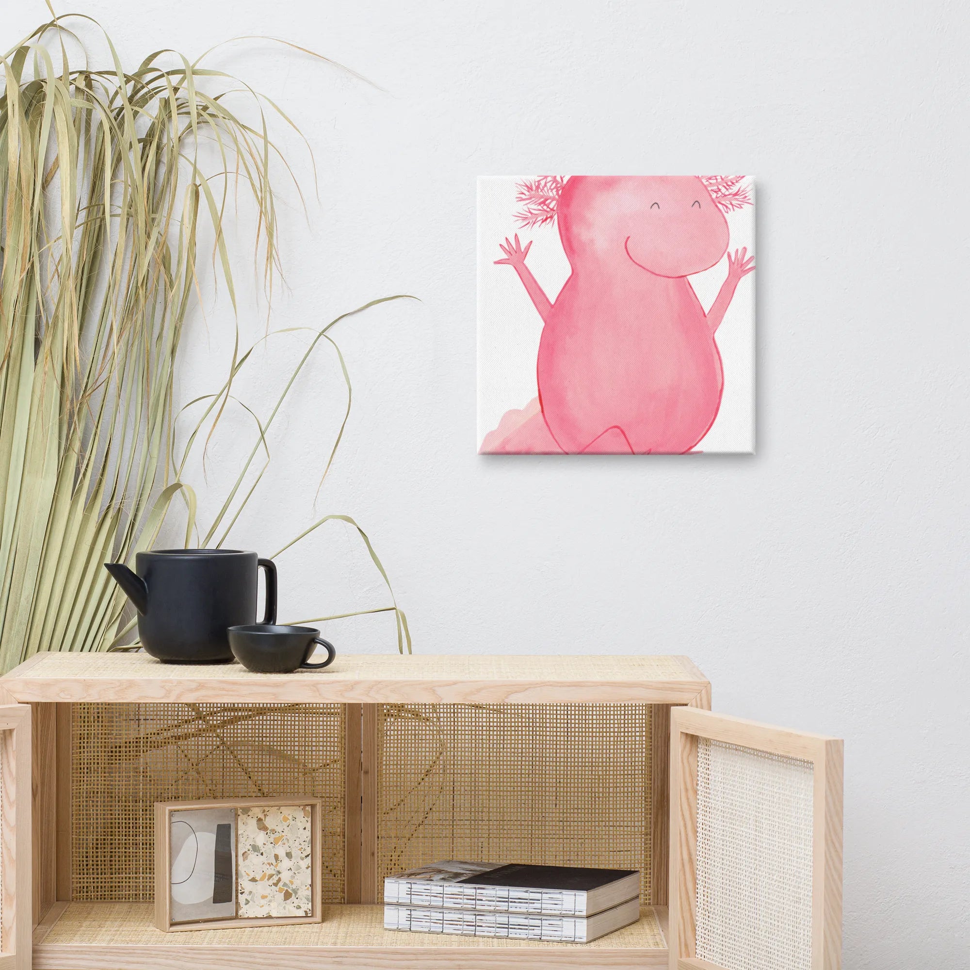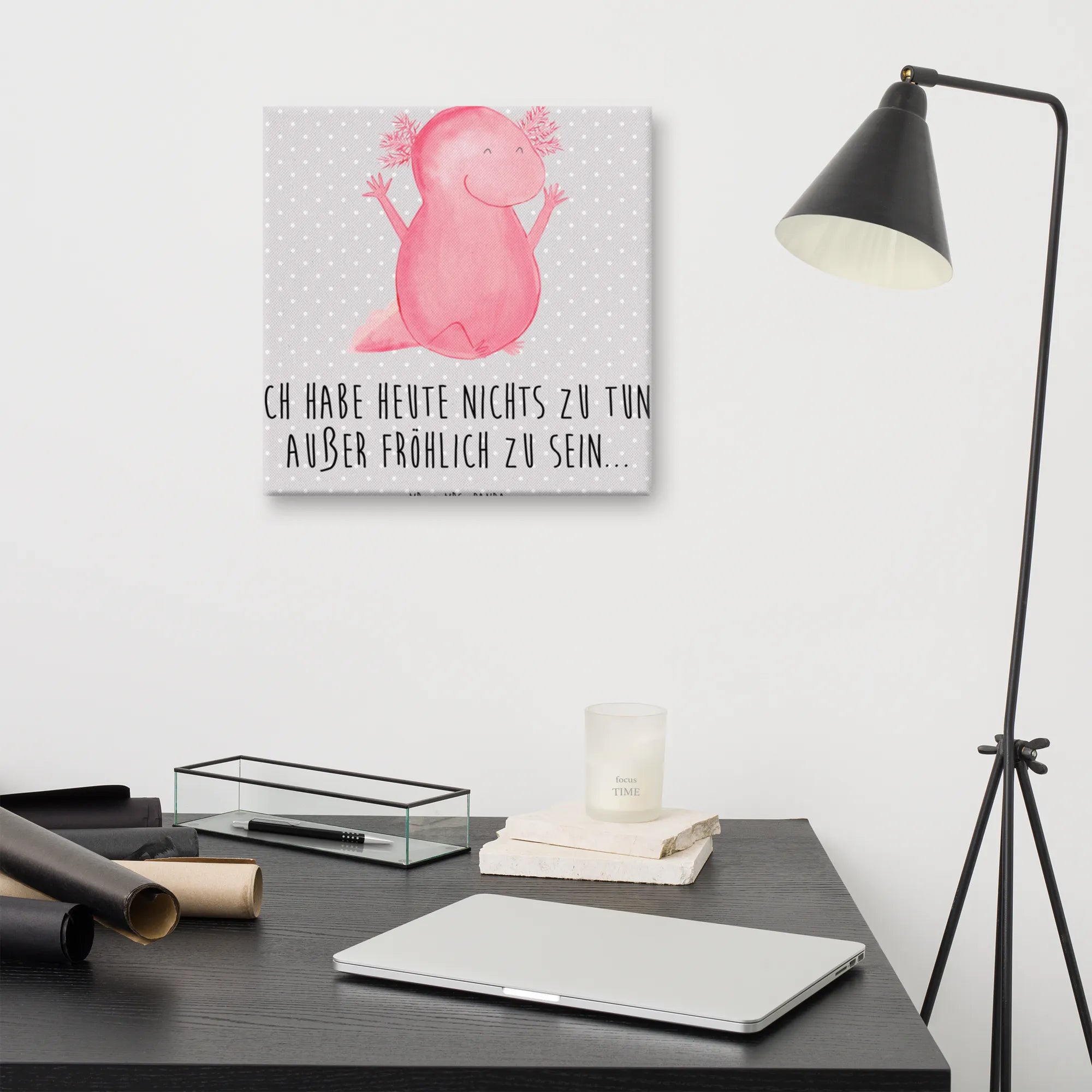 Canvas picture axolotl Hooray - 40 x 40 cm - with saying - Pastel Gray