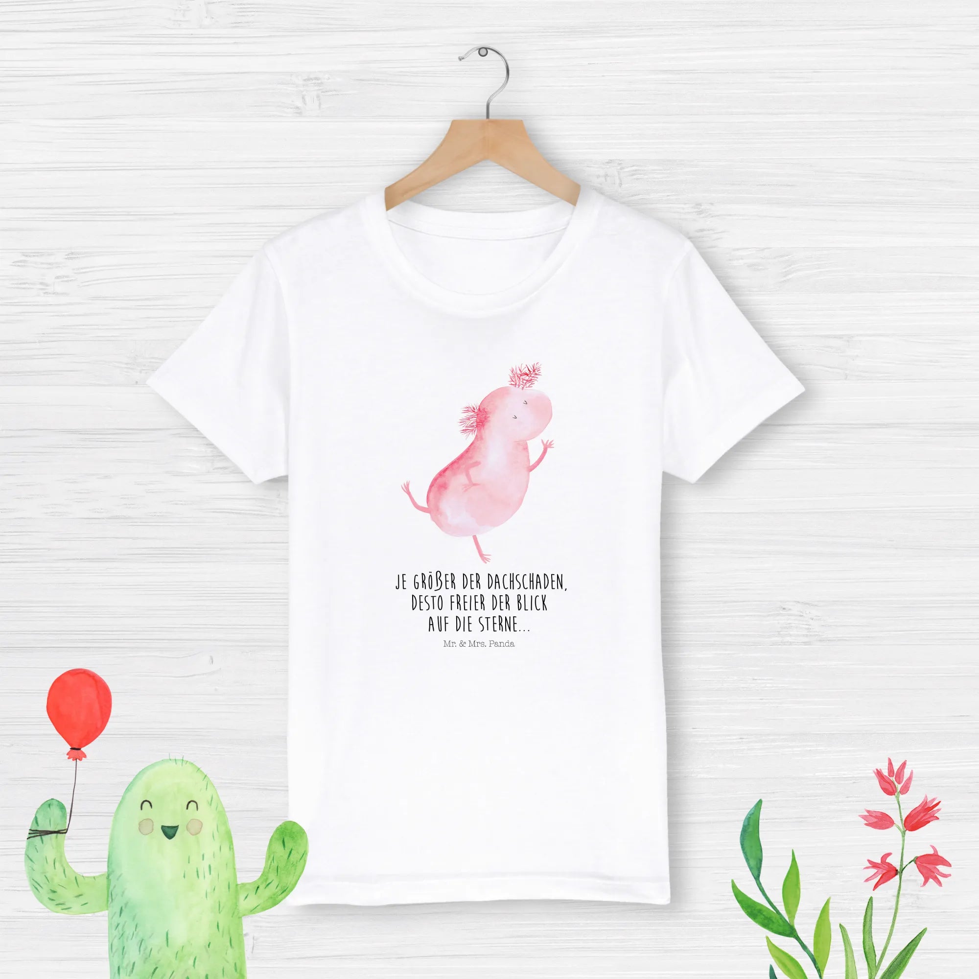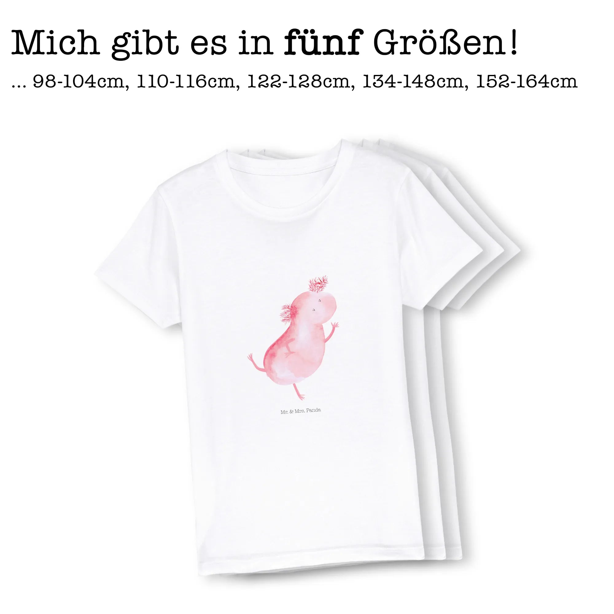 The Axolotl design showcases an adorable axolotl dancing, elegantly drawn in our loved "panda style" by Mrs. Panda herself. This design is perfect for kids who want to express their wild and fun-loving personalities. As axolotls are known for their captivating beauty and unique traits, this t-shirt encourages discussions about marine life, conservation, and the importance of protecting our planet.