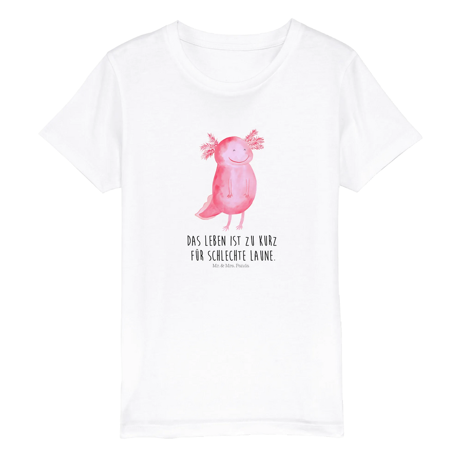What makes this Kinder T-Shirt stand out is the beautiful, hand-drawn Axolotl illustration created by Mrs. Panda herself. The design is playful and cheerful, evoking a good mood, just like our slogan suggests: "Life is too short to spend in a bad mood." Although the shirt features a happy Axolotl without text, the design speaks volumes about positivity!