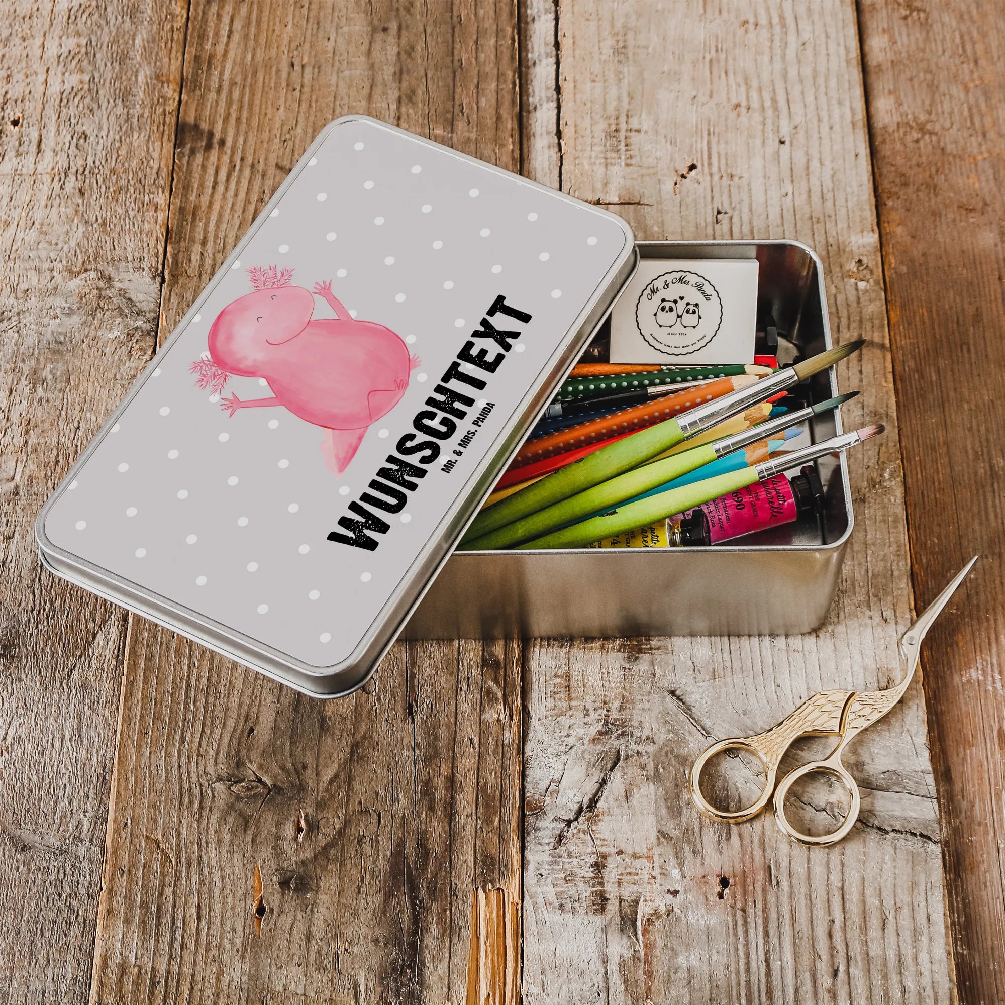 Discover the charm of our personalised metal tin, perfect for storing your favorite cookies or precious memories. Measuring 198 mm x 128 mm x 50 mm (8 inch x 5 inch x 2 inch), this sturdy tin is crafted from high-quality metal and weighs 180 g (6 oz). Adorned with beautiful Mr. & Mrs. Panda designs and sayings, it can be personalized with your chosen name or text to make it truly special. Its glossy finish adds an extra touch of elegance. Ideal as a sustainable gift box, it’s perfect for birthdays, weddings, or just to show you care. Please note, we recommend hand washing for longevity. Fill it with sweet treats, surprise notes, or use it as a decorative piece in your home. This durable tin is not only functional but also a whimsical addition to any space, promising to bring a smile to anyone who receives it.