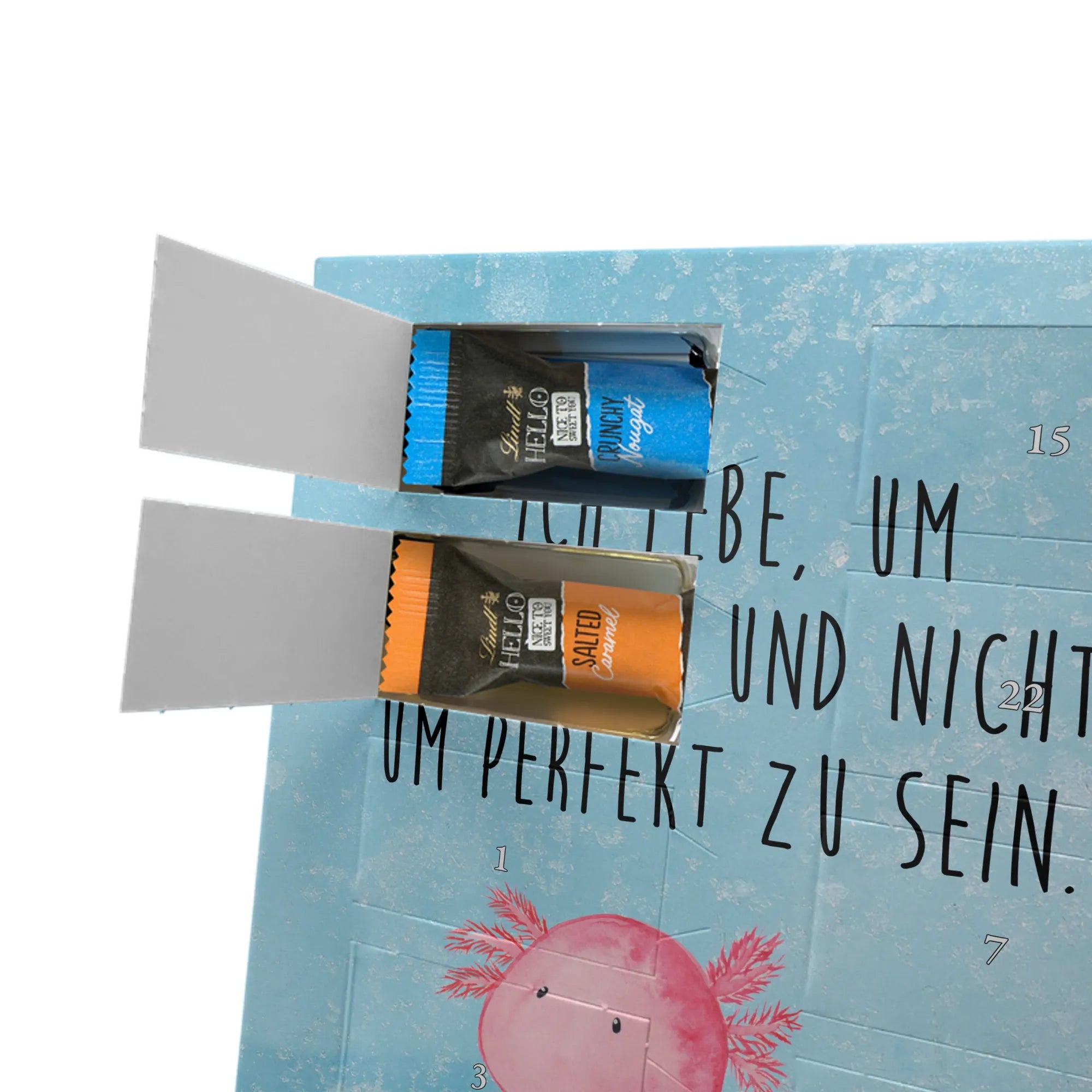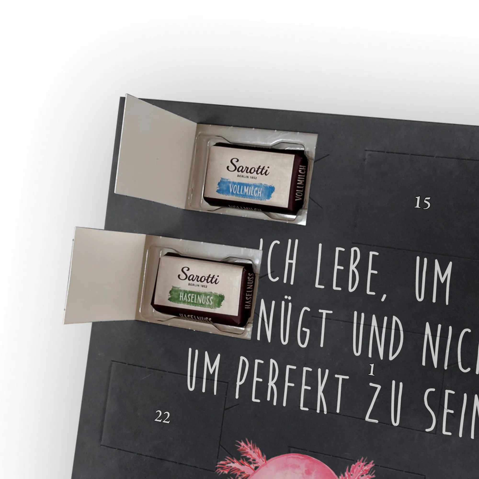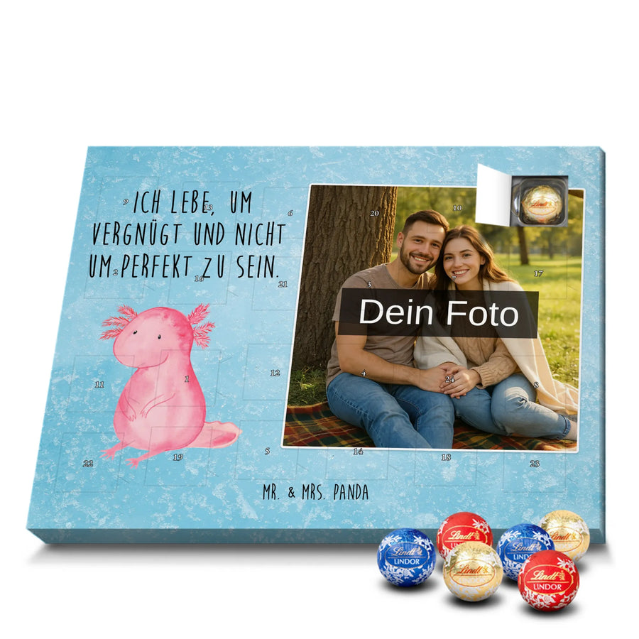 Schoko Foto Adventskalender personalisiert – ein fröhlicher Hingucker von Mr. & Mrs. Panda, der Adventszeit und Erinnerungen verbindet. Der Kalender ist bedruckt mit zauberhaften Motiven & Sprüchen von Mr. & Mrs. Panda und lässt sich ganz leicht mit einem Foto deiner Wahl personalisieren. Achtung Bildqualität: Für ein scharfes Druckbild solltest du ein Foto in hoher Auflösung verwenden. Kontrolliere den Bildausschnitt, damit wichtige Gesichter oder Details nicht verloren gehen. Verwende nur Fotos, für die du die Rechte besitzt oder die frei nutzbar sind. Bitte beachte: Die Fotos werden weder nachbearbeitet noch zugeschnitten und personalisierte Foto Artikel sind vom Umtausch ausgeschlossen. Die Verarbeitung überzeugt mit seidenmatter Oberflächenveredelung und bedruckten Seitenflächen für ein edles Finish. Maße: 325 mm x 225 mm x 27 mm. Besonderheit: Du kannst den Kalender aufhängen oder aufstellen – ganz flexibel. Gefüllt ist der Kalender mit Ritter Sport Schokowürfeln in leckeren Geschmacksrichtungen wie Mousse au Chocolat, Schoko Crisp, Voll-Nuss in Nougatcreme, Karamell Duo, Joghurt und Erdbeer-Joghurt. Ein liebevolles Geschenk, das jeden Tag im Advent versüßt.