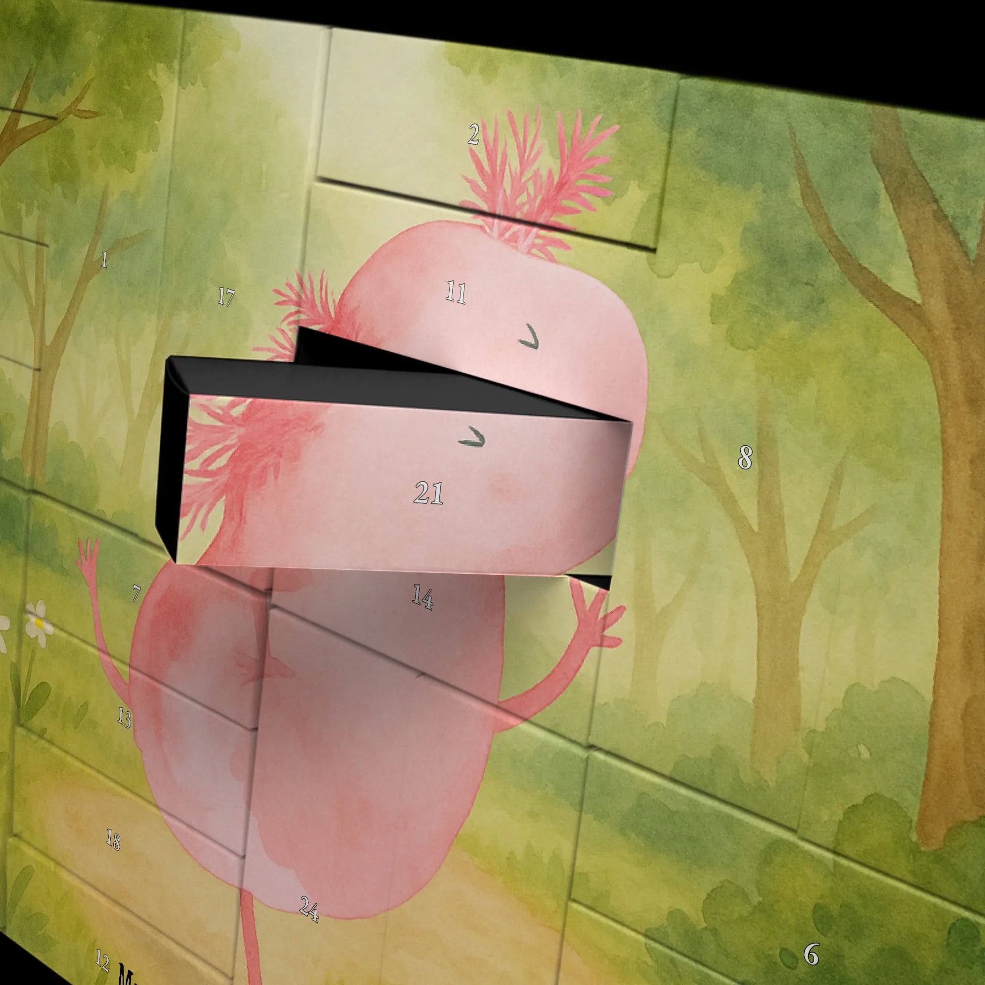 Entdecke den Befüllbaren Adventskalender „Axolotl tanzt“ von Mr. & Mrs. Panda