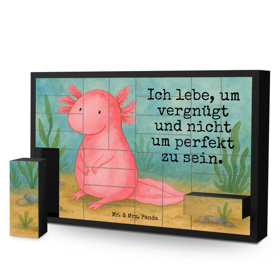 Unser Adventskalender zum Selbstbefüllen bringt Dir und Deinen Liebsten eine besondere Adventszeit: ein niedlicher, fröhlicher Axolotl, liebevoll von Mrs. Panda gezeichnet, begleitet von dem herzlichen Spruch „Ich lebe, um vergnügt und nicht um perfekt zu sein." Dieses Motiv aus der Axolotl-Kollektion steht für Lebensfreude, Zufriedenheit und Liebe – perfekt als Geschenk für Freundin, beste Freundin, Kinder oder alle Fans der Unterwasserwelt.