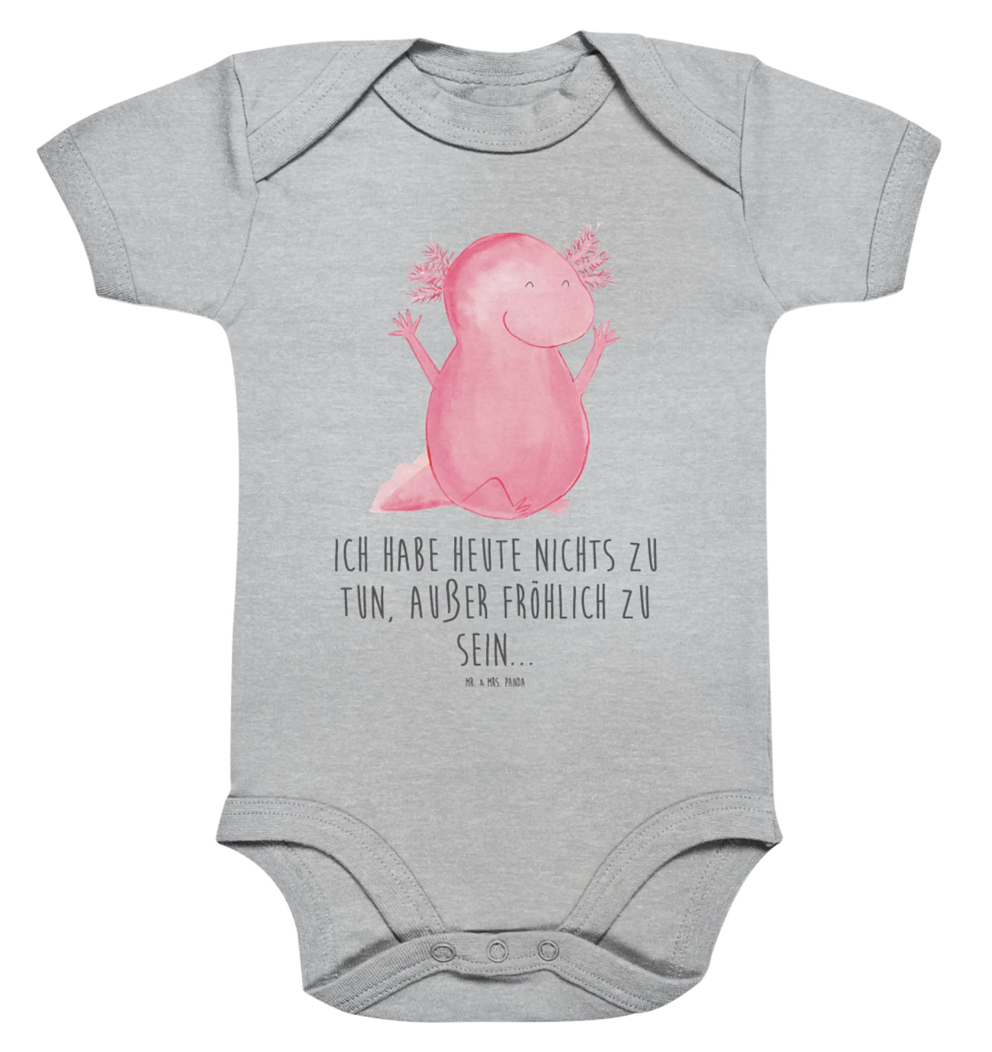 Made from high-quality organic cotton, this baby body is not only super soft but also gentle on your baby's sensitive skin. With an eye-catching motif of a cheerful Axolotl — a playful amphibian known for its ability to cheerfully thrive, this design is bound to bring smiles to everyone who sees it!