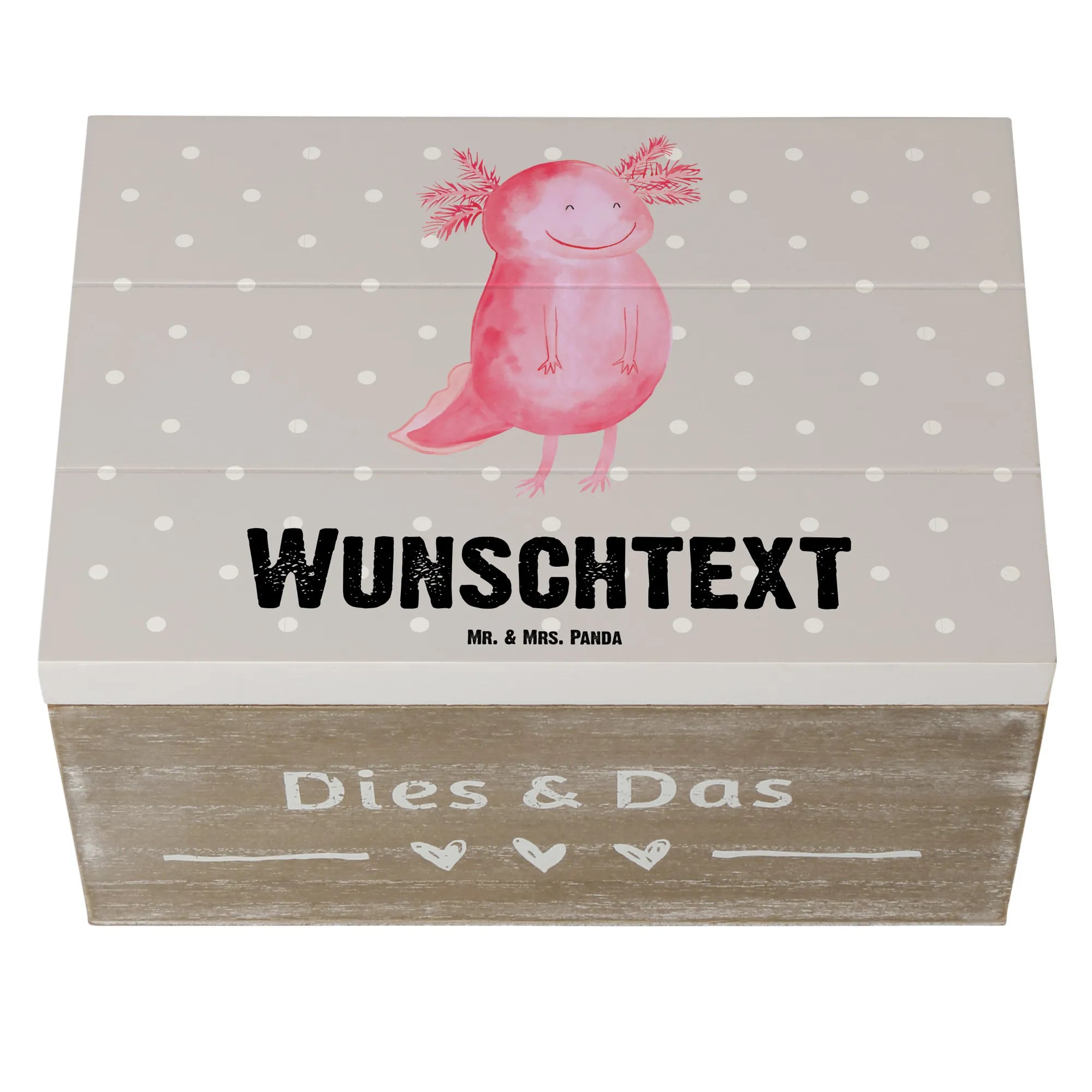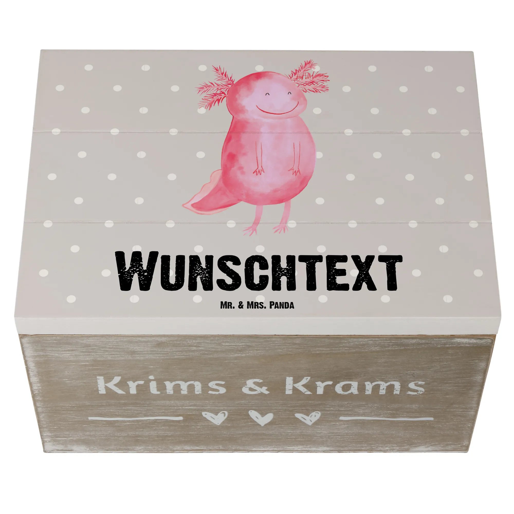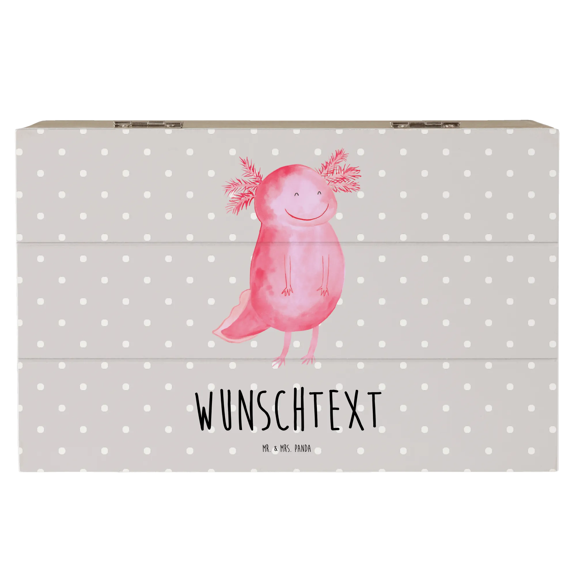 Personalised wooden chest axolotl Happy - 22 x 15 cm - Pastel Gray