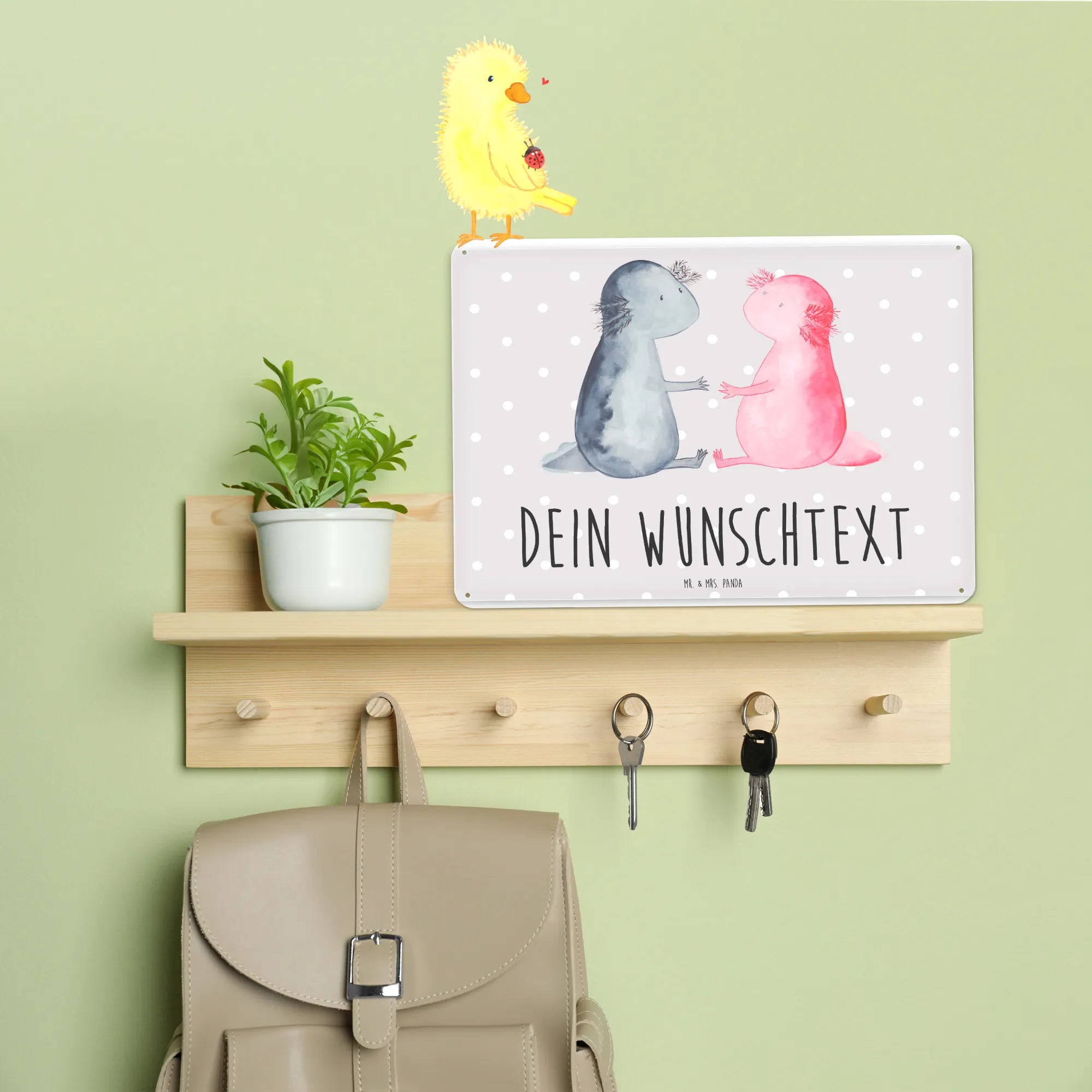Personalized metal sign axolotl Love - DIN A6 - Pastel Gray