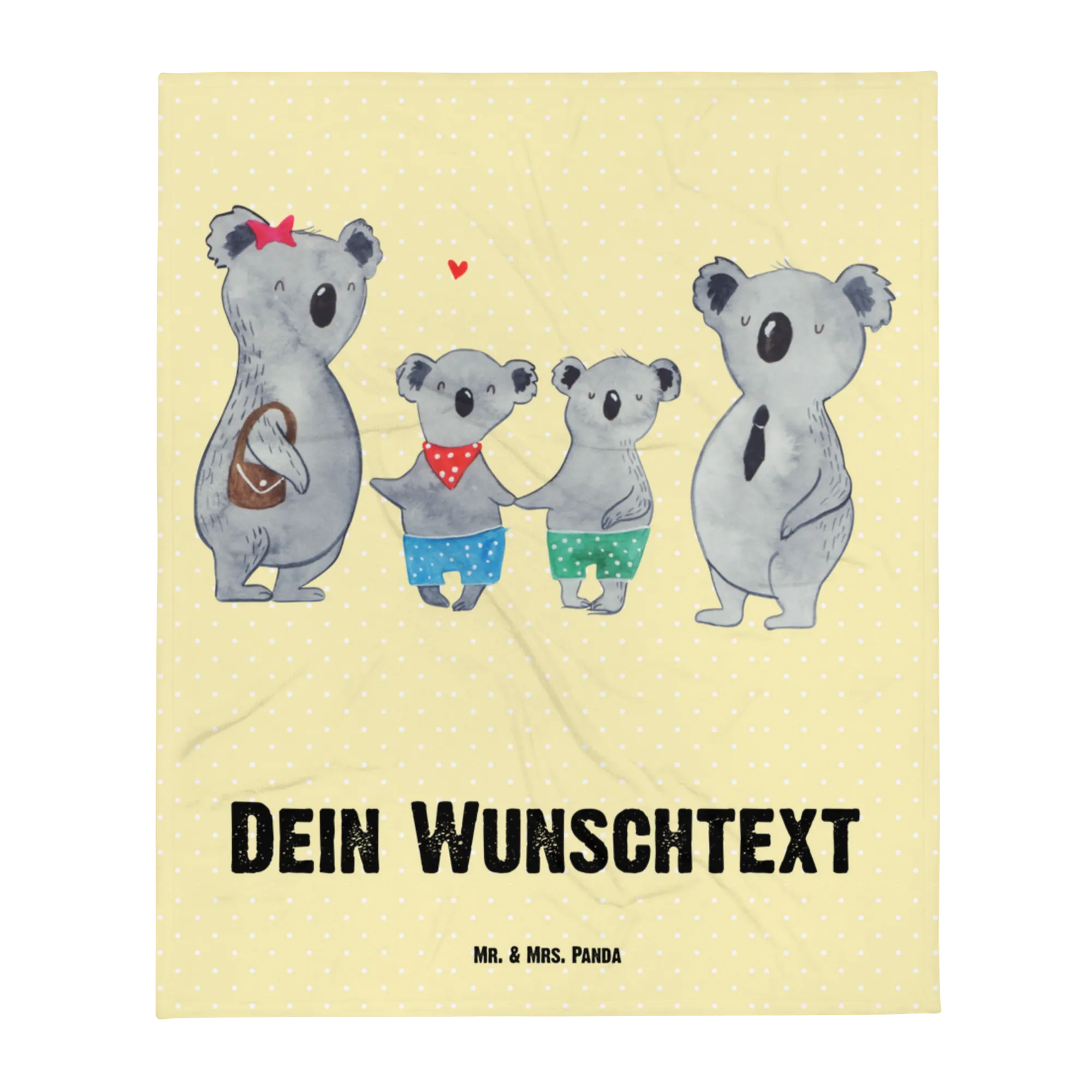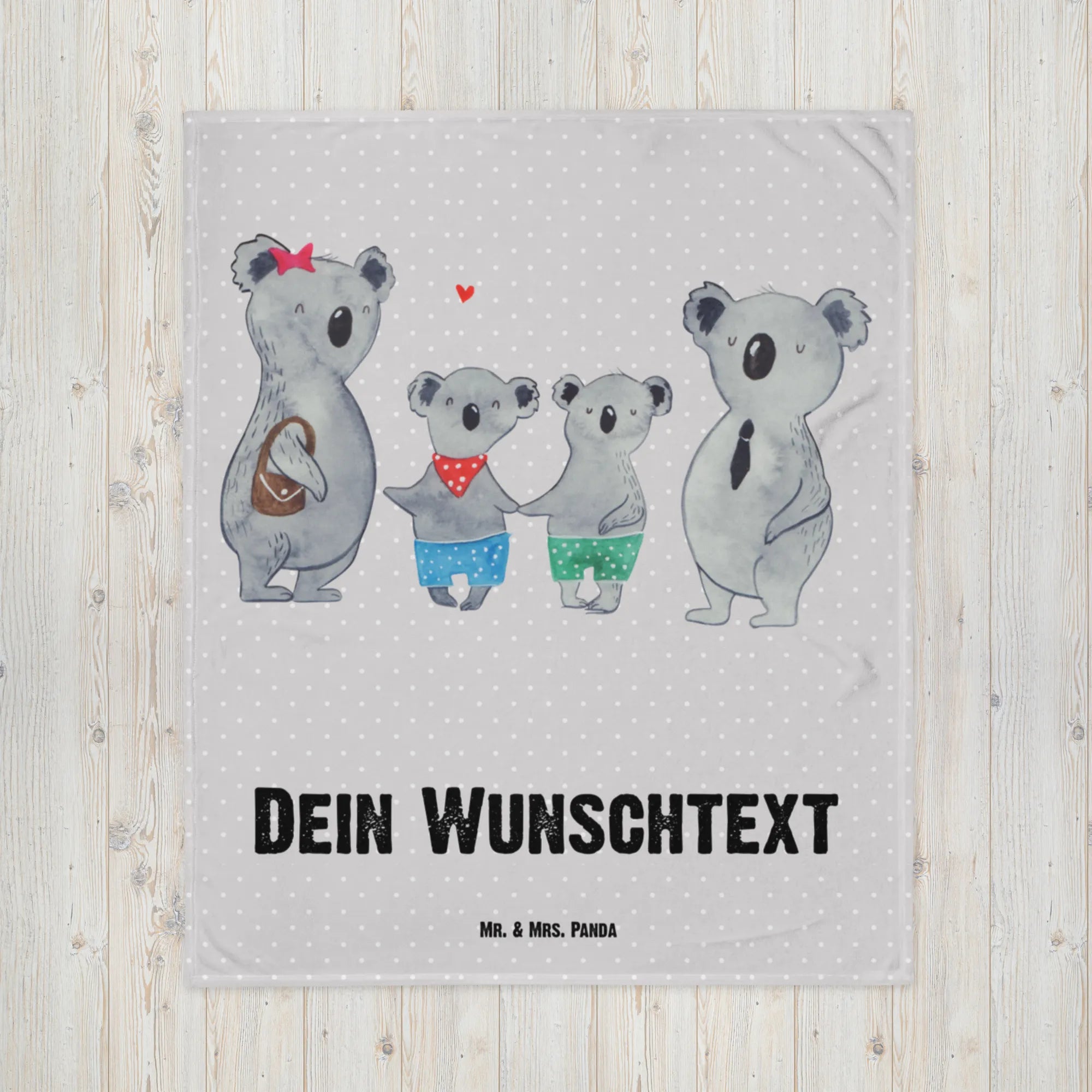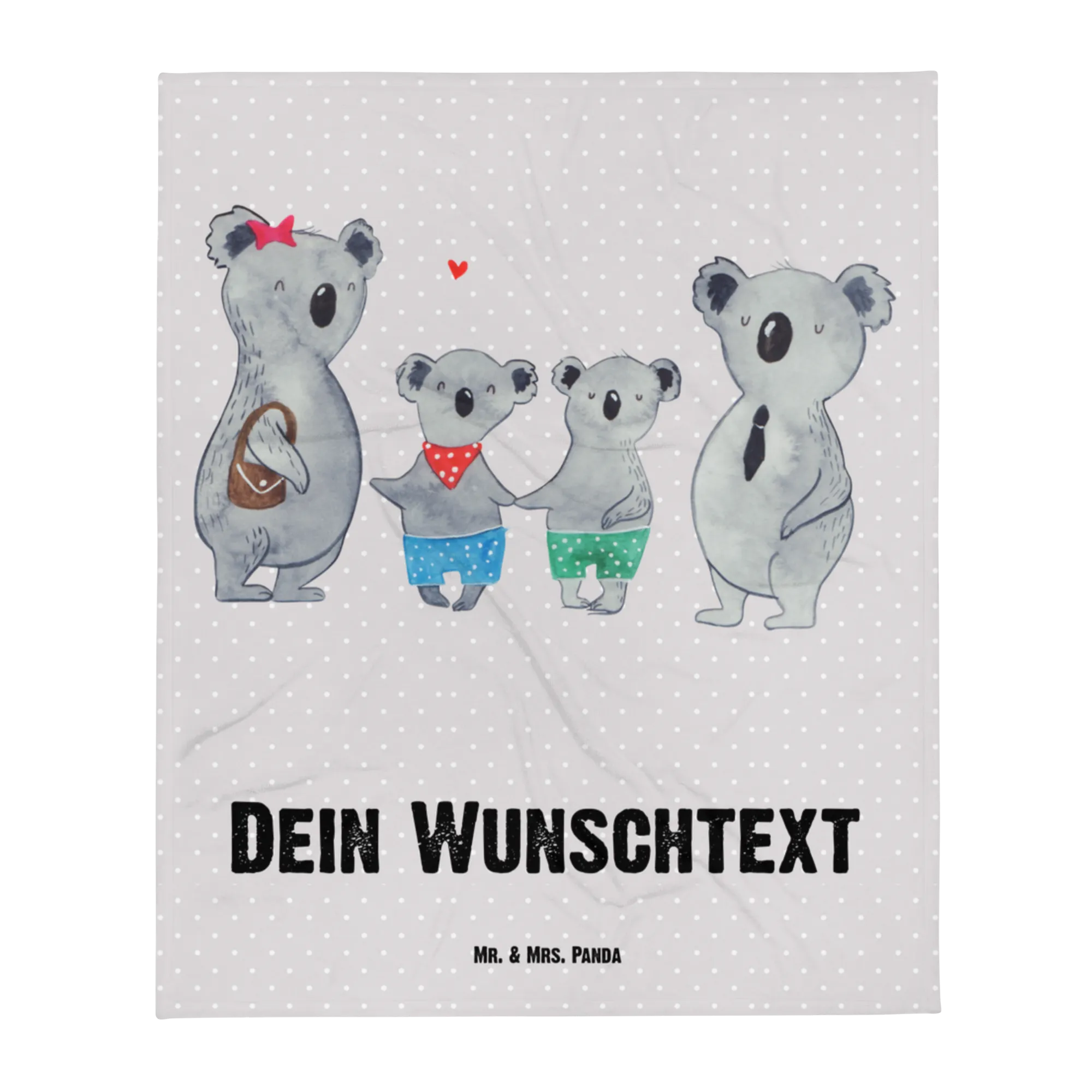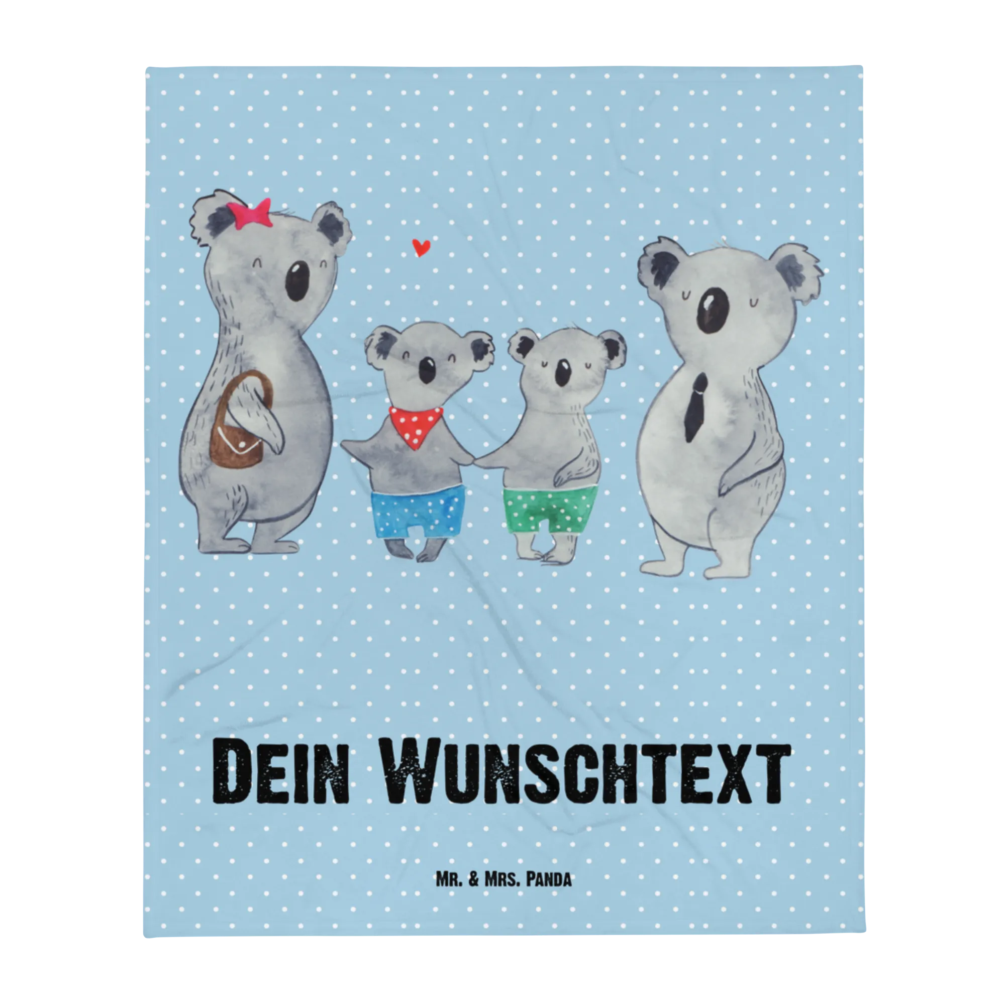Baby blanket with name Koala family with two kids - Blue Pastel