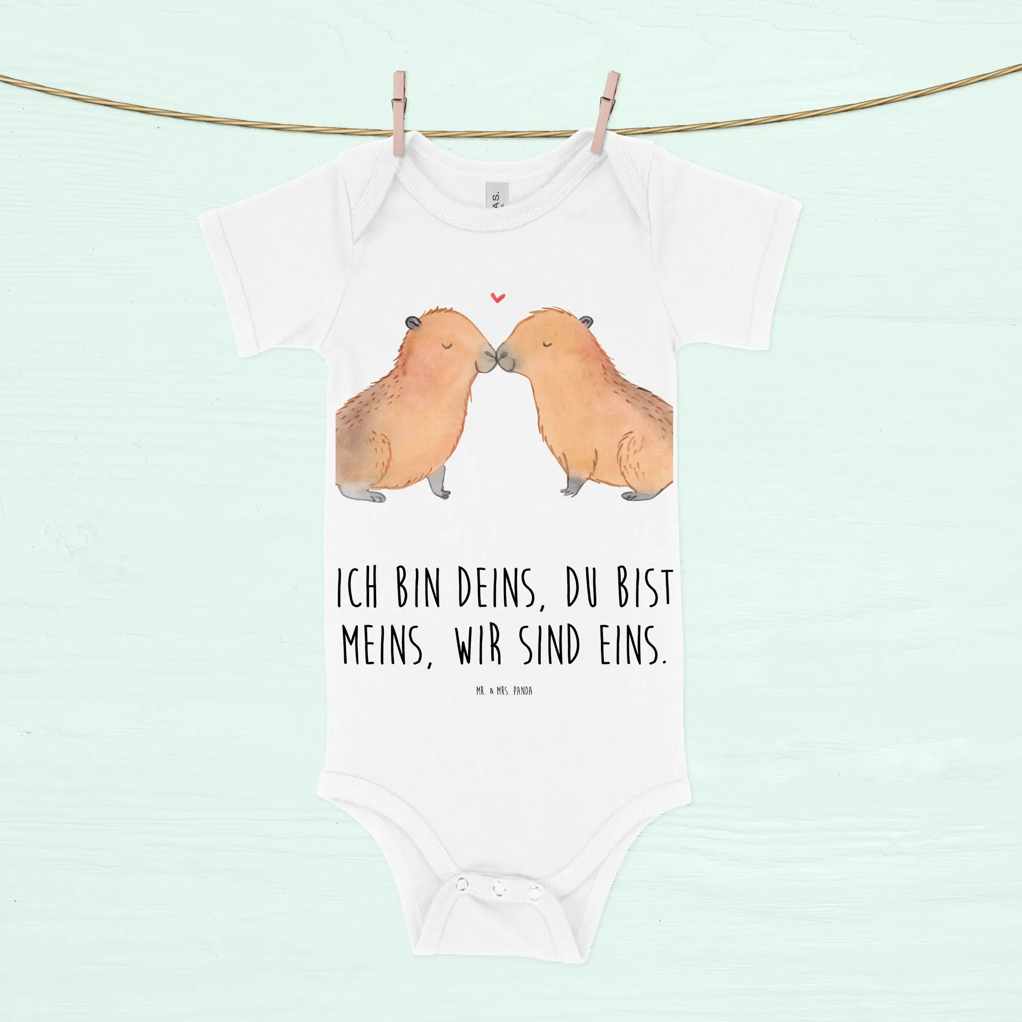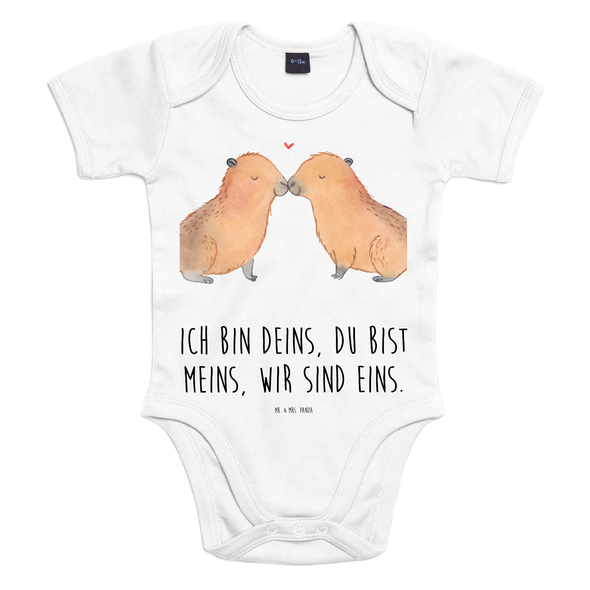 Experience a heartwarming moment captured in our delightful motif where two capybaras lovingly touch noses, forming a perfect heart. Their soft, brown fur, carefully illustrated, reflects all the warmth and affection that love can bring. Just above, a bright red heart floats — a symbol of their enduring love and connection. With the words 'Ich bin deins, du bist meins, wir sind eins,' we are reminded of the beauty found in unity and companionship. This charming scene is an ideal romantic gift for couples, ideal for celebrating anniversaries or even as a sweet gesture on Valentine's Day. Whether you are celebrating your love with someone special or simply appreciating the beauty of animal friendships, this motif is designed to bring smiles and warmth to the heart.