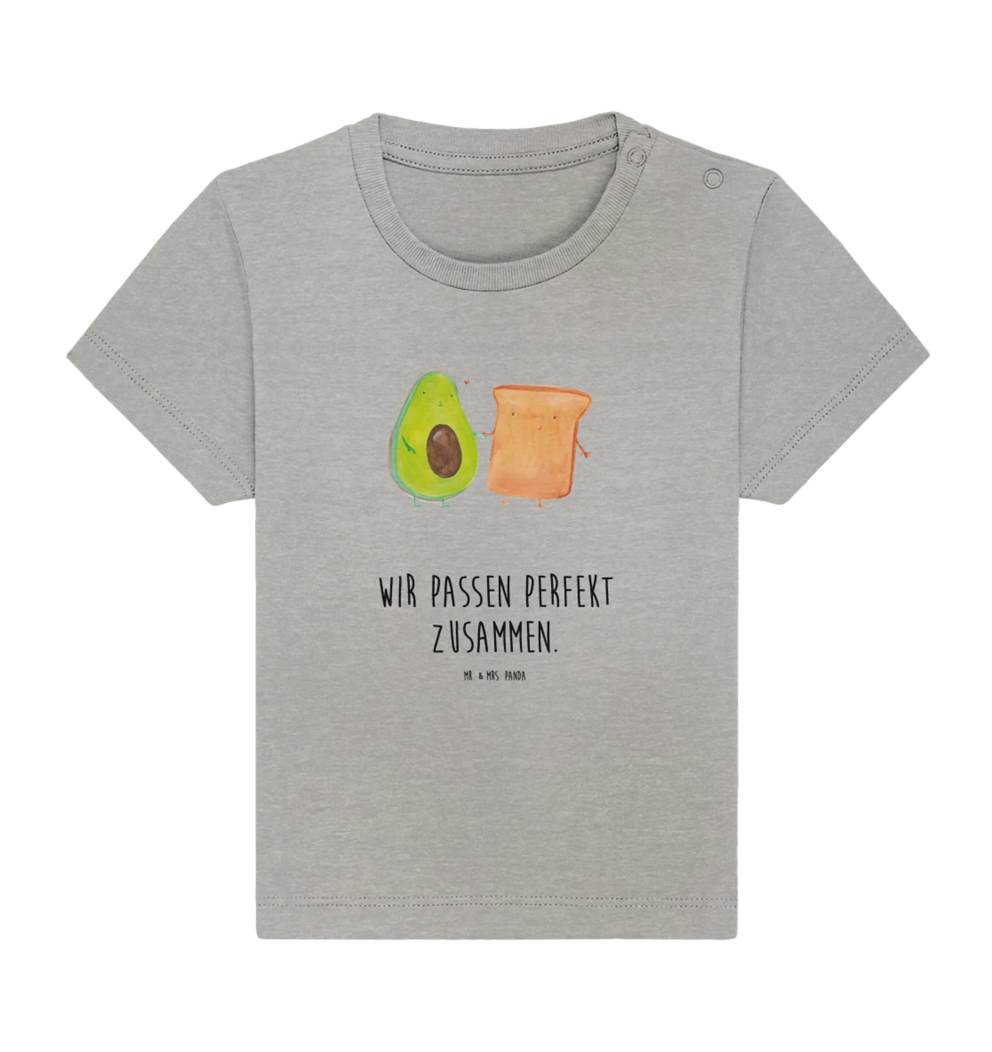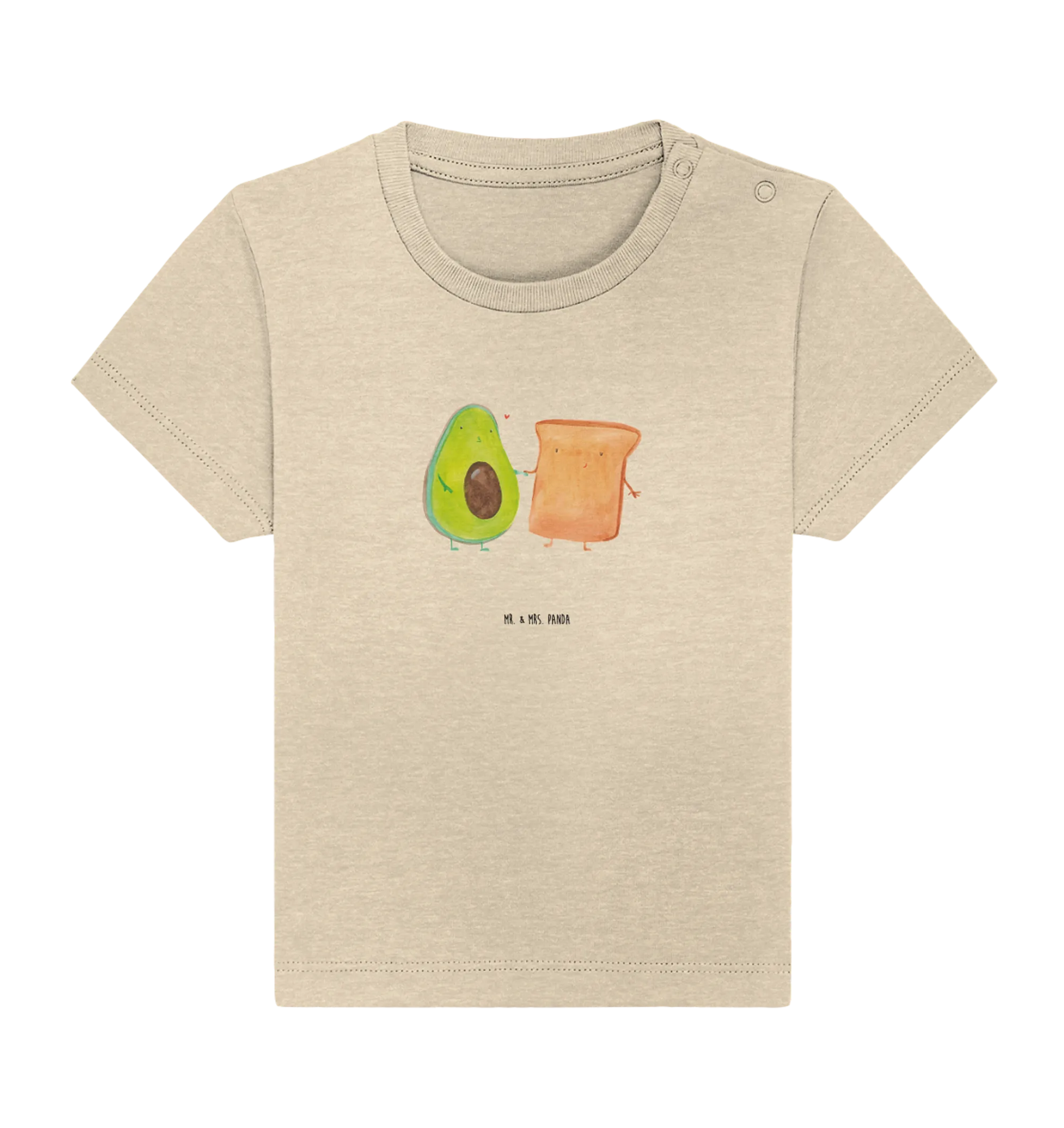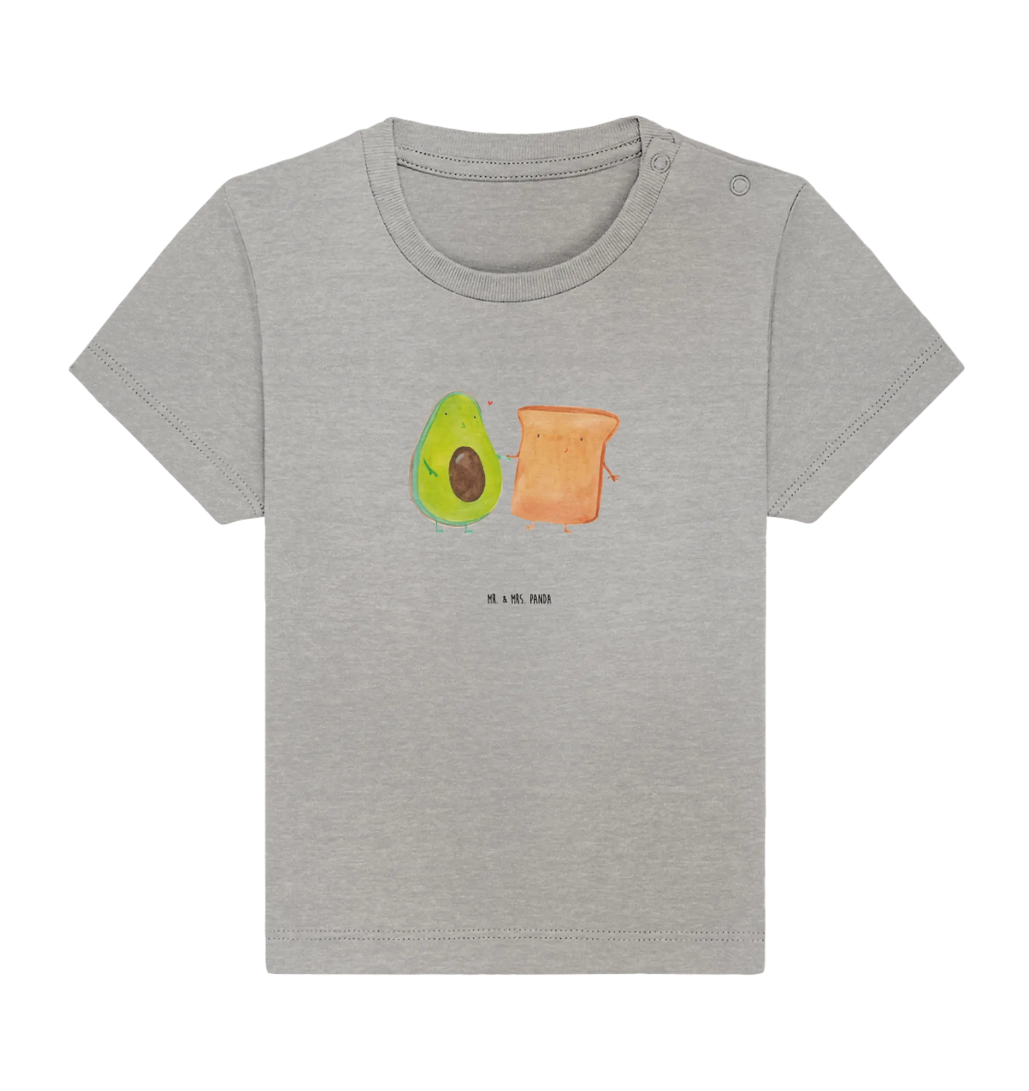 Welcome to the world of Mr. & Mrs. Panda, where cuteness knows no bounds! Our Organic Baby Shirt featuring the adorable motif of an avocado holding hands with a sweet toast is the perfect gift for your little one or as a delightful present for expectant parents.