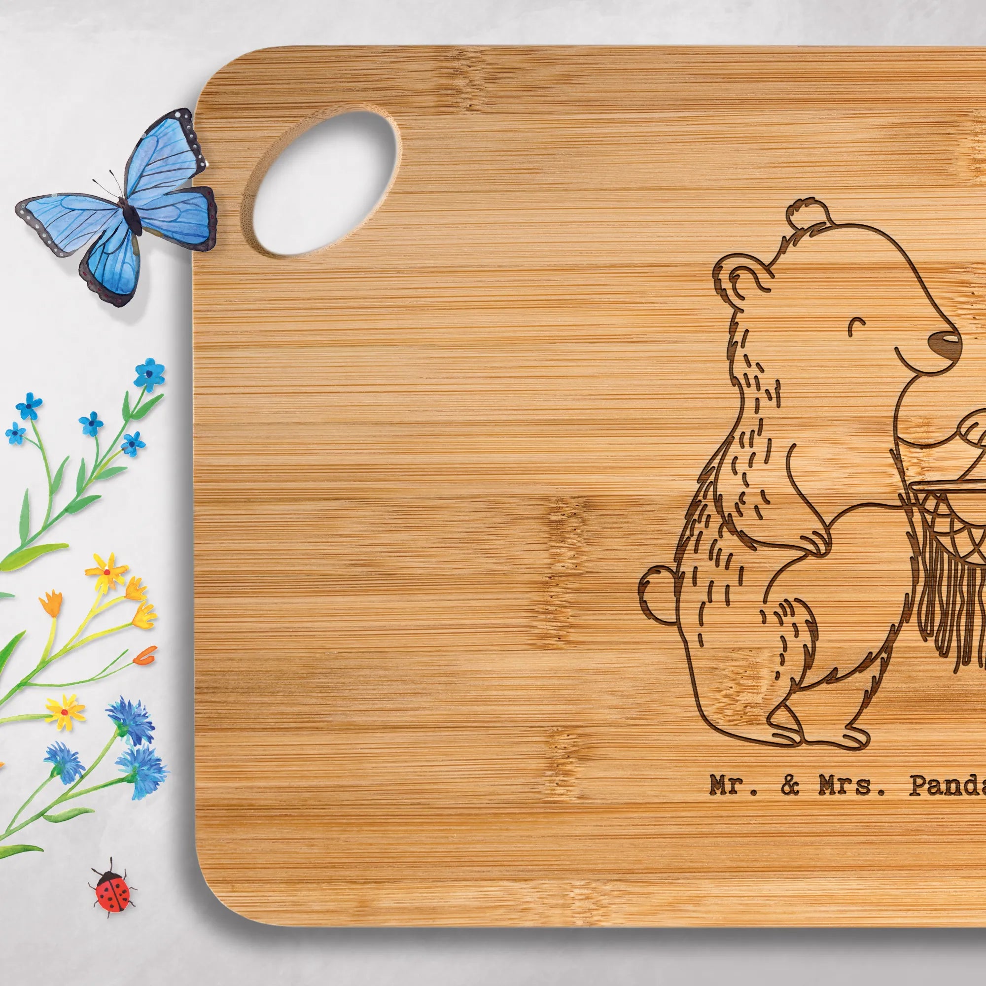 🐼 Hochwertiges Bambus-Schneidebrett mit robuster Beschaffenheit und liebevoller Gravur – ideal für Speisen und Frühstück.