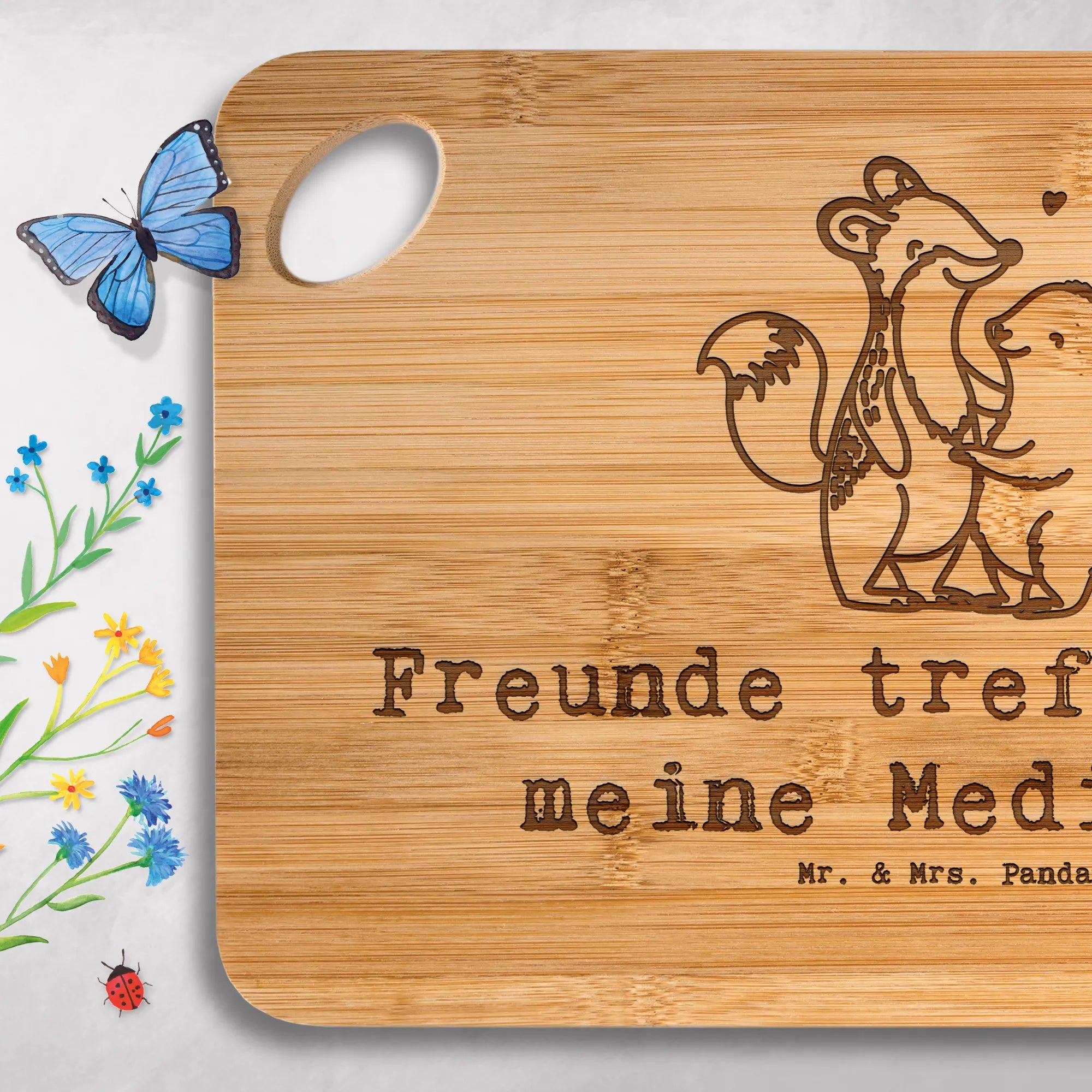 Bamboo chopping board fox rabbit meet friends - mit Spruch