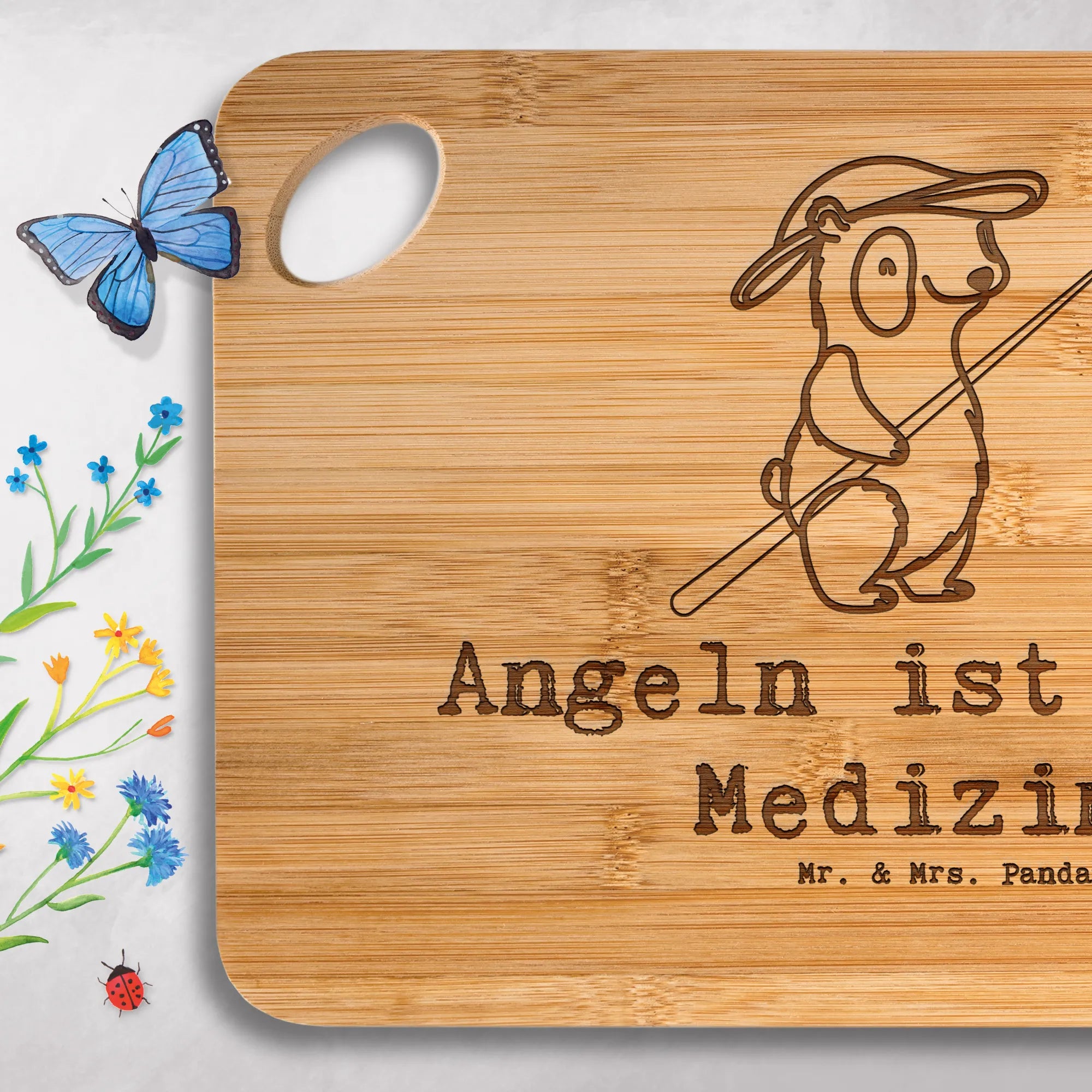 Bamboo chopping board panda fishing - mit Spruch