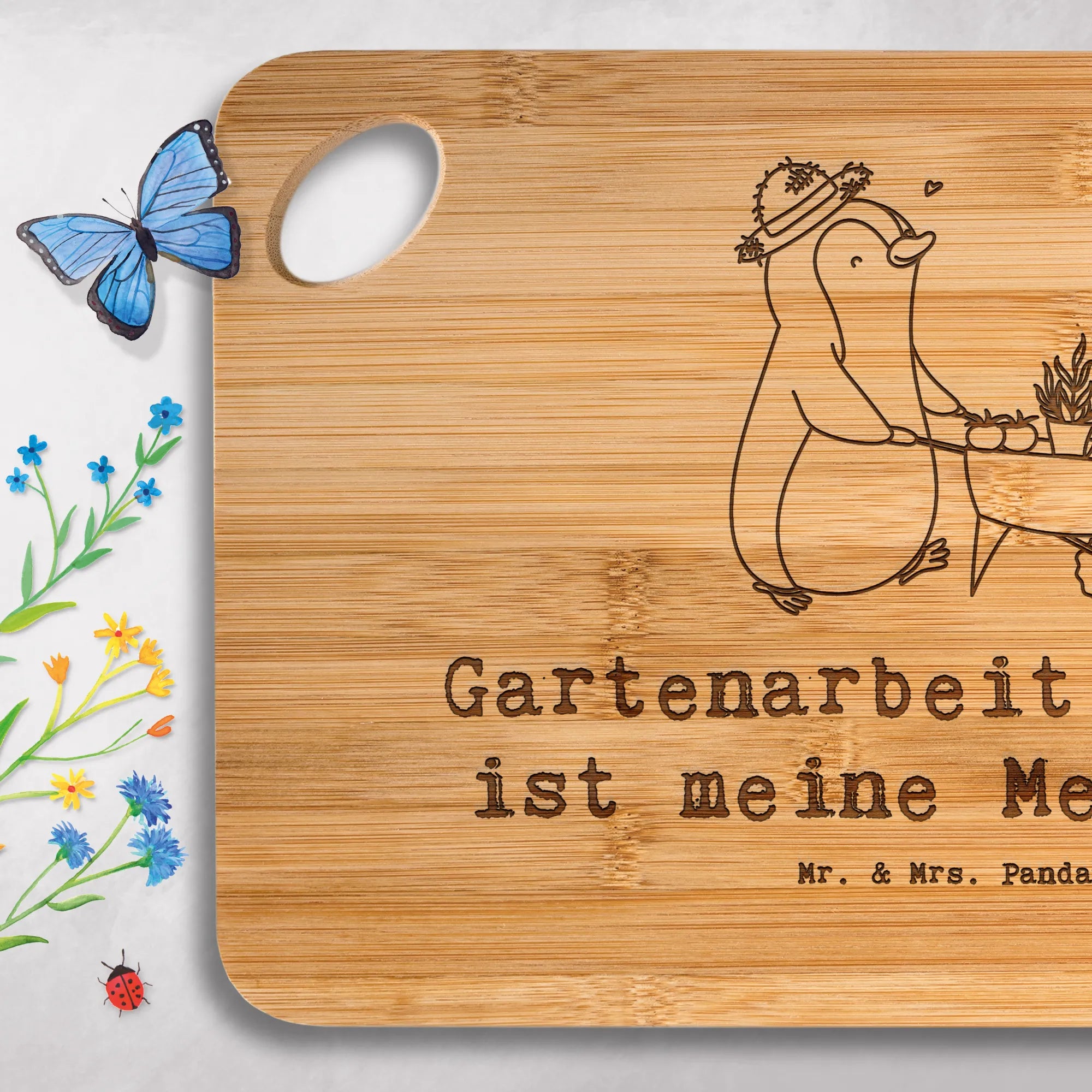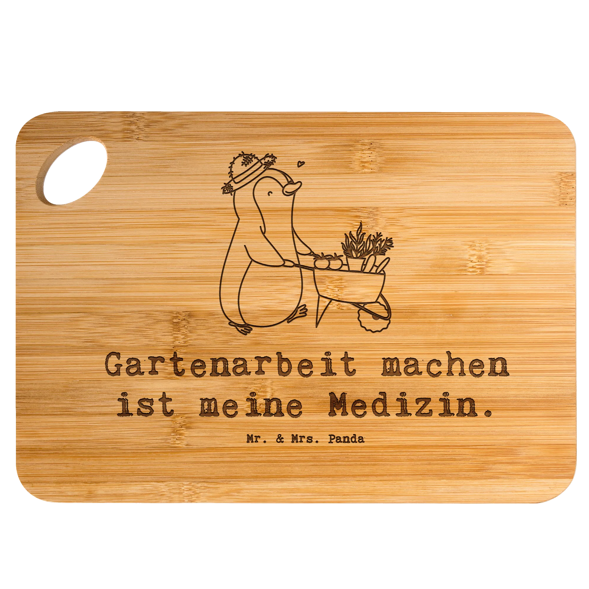Bamboo chopping board penguin gardening - mit Spruch