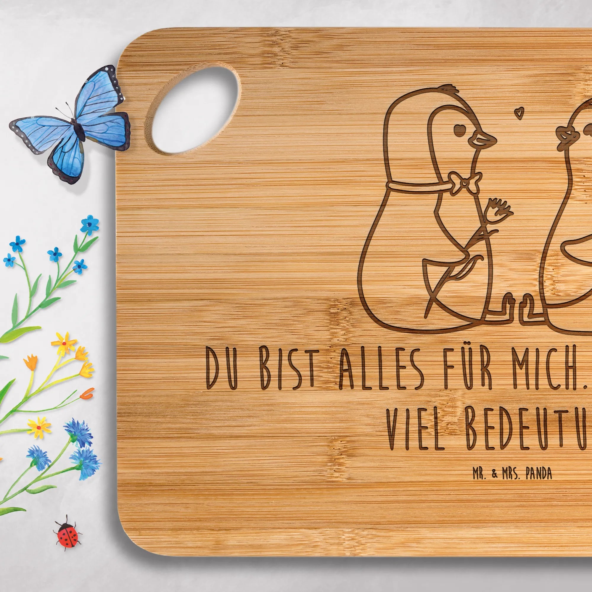 Dieses bezaubernde Schneidebrett aus der Pinguin - Kollektion vereint Funktion und Gefühl. Zwei handgezeichnete Pinguine schauen sich verliebt an, begleitet vom Spruch: „Du bist alles für mich. Wenig Worte. Viel Bedeutung.“ Ein liebevolles Geschenk für Verliebte, ideal als Hochzeitsgeschenk, Verlobungsgeschenk oder zum Jahrestag.