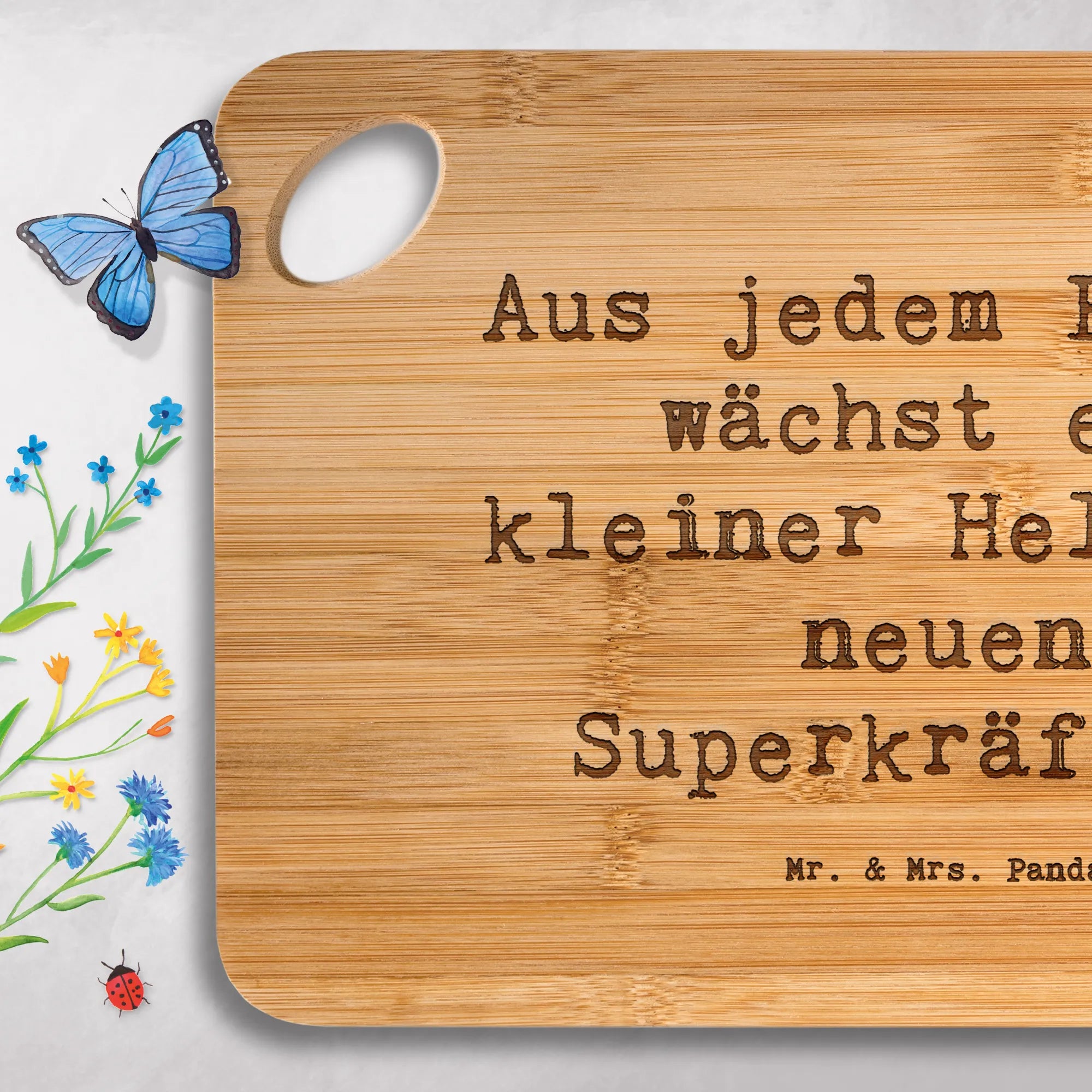 Bamboo chopping board Saying Aus jedem Fehler wächst ein kleiner Held mit neuen Superkräften!