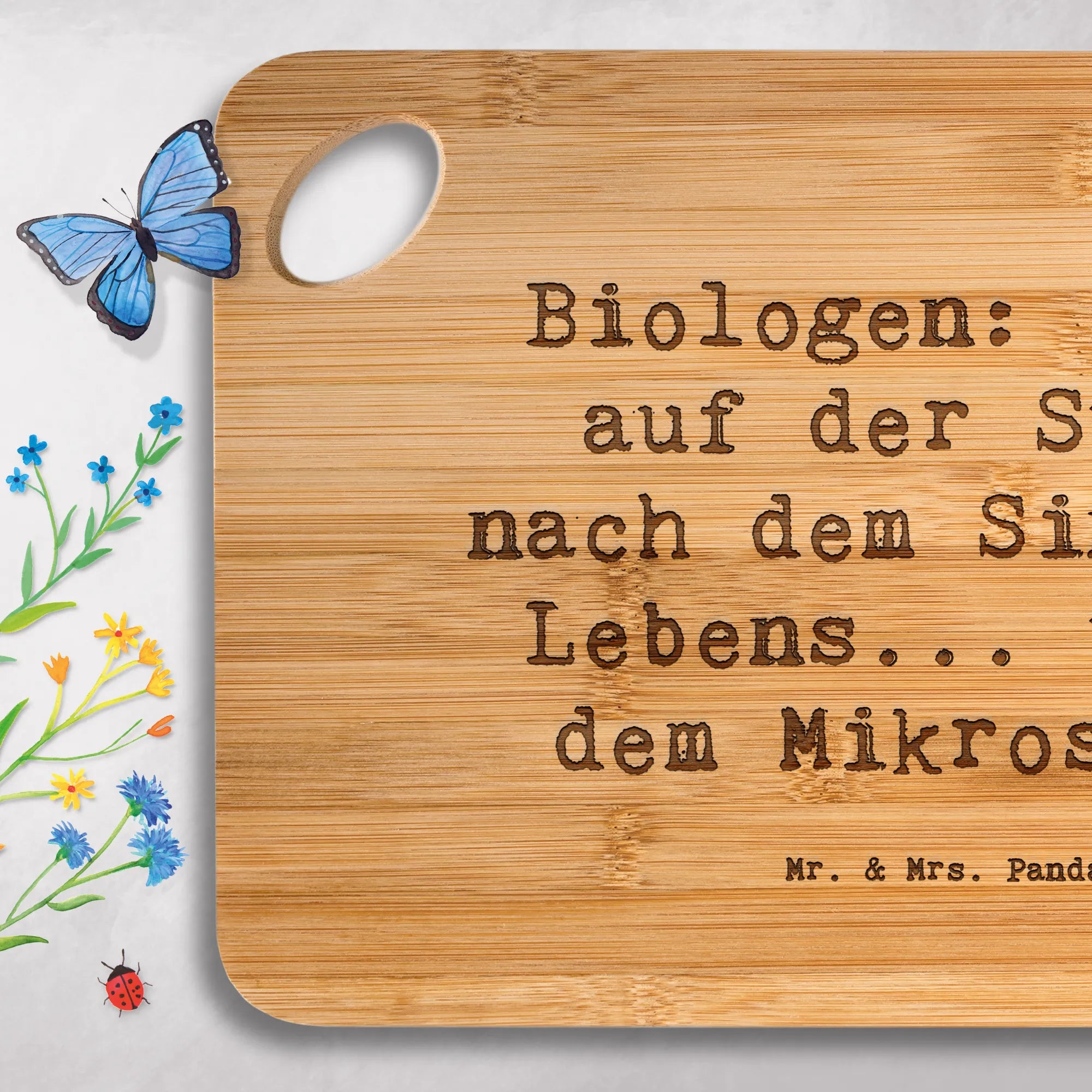 Bamboo chopping board Saying Biologen: Immer auf der Suche nach dem Sinn des Lebens... unter dem Mikroskop!