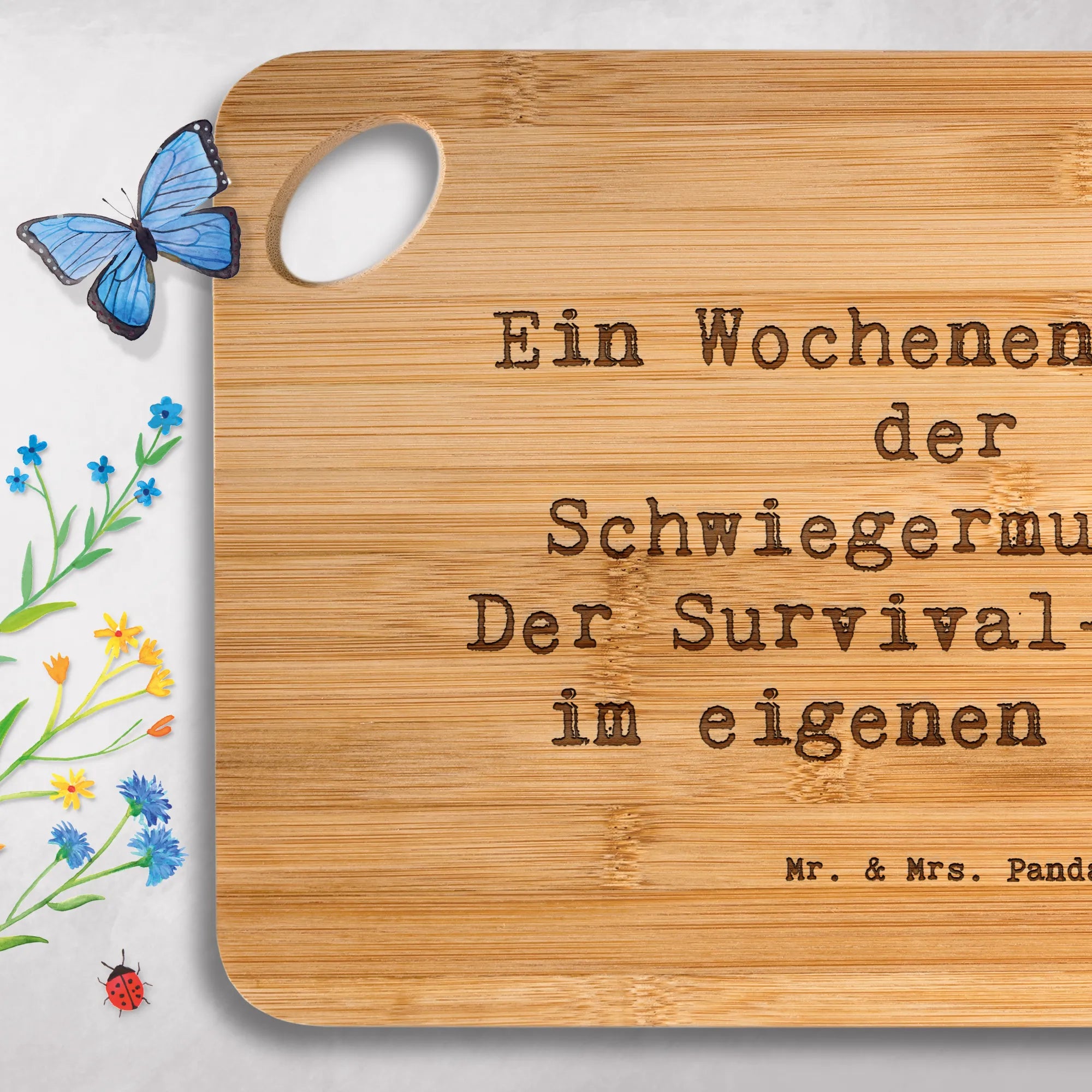 Bamboo chopping board Saying Ein Wochenende mit der Schwiegermutter: D – Mr. & Mrs. Panda