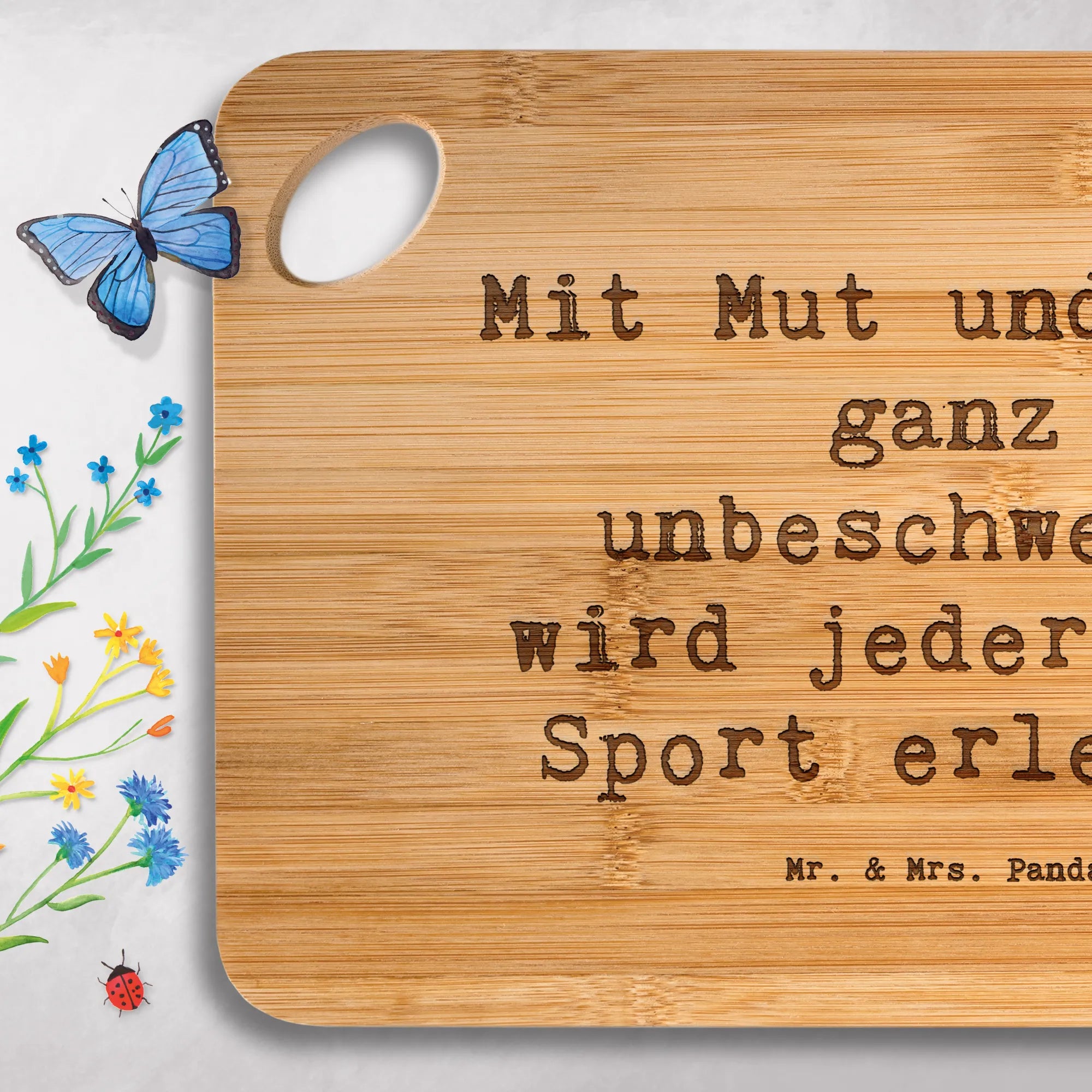 Bamboo chopping board Saying Mit Mut und Spaß ganz unbeschwert, wird jeder neue Sport erlernt!