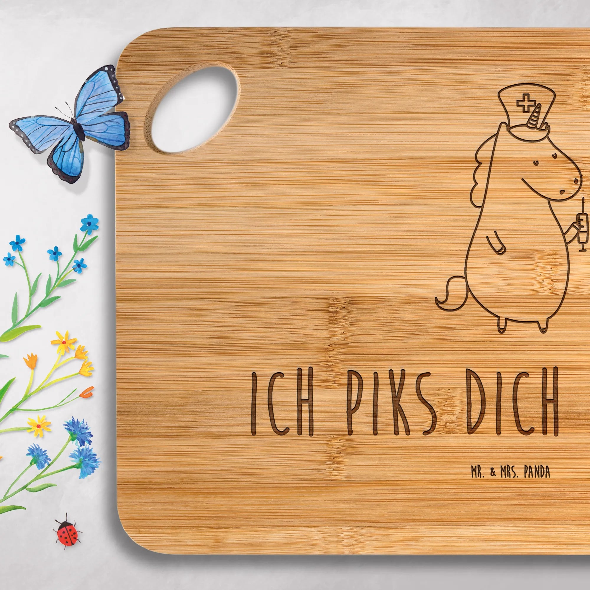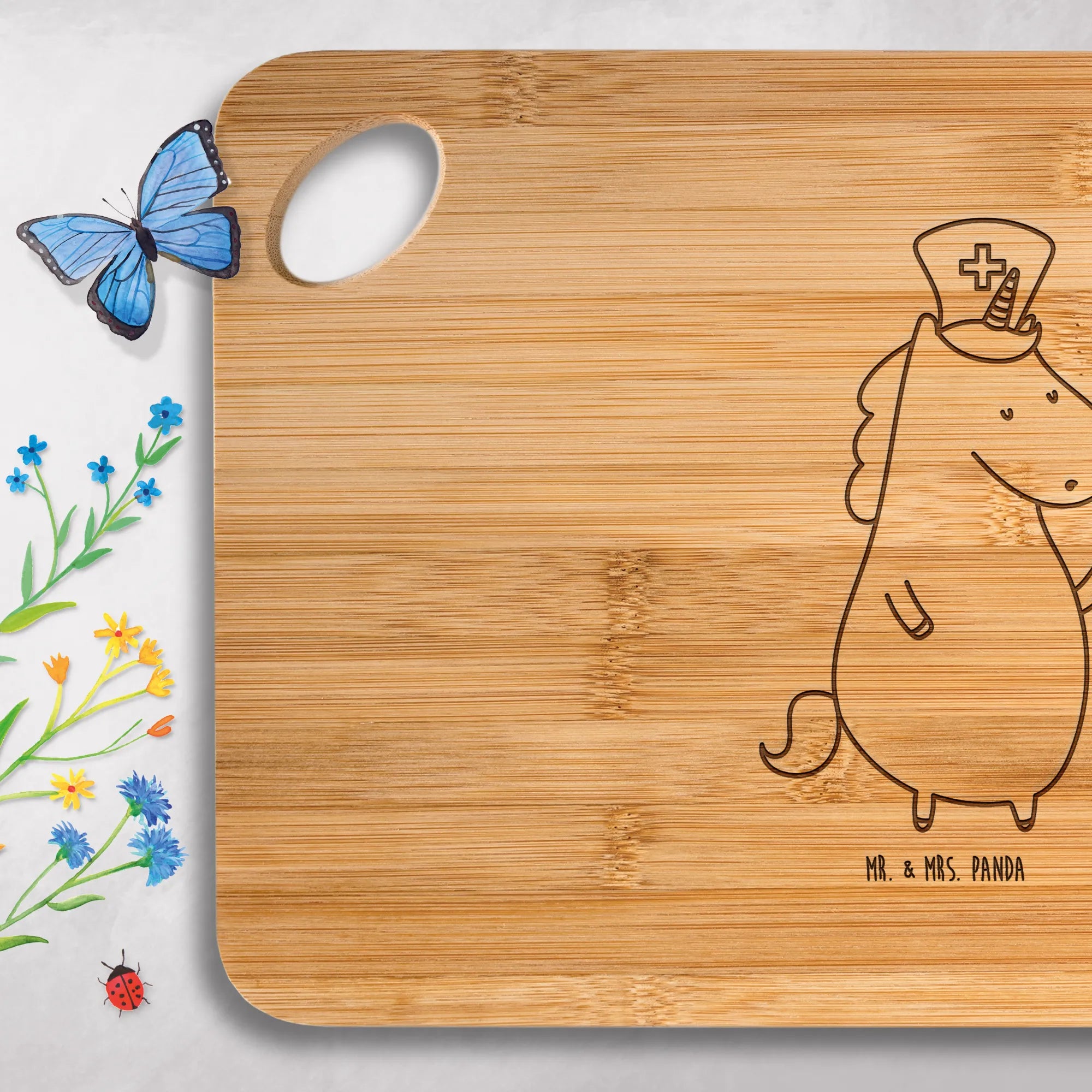 Bamboo chopping board unicorn Nurse - with saying