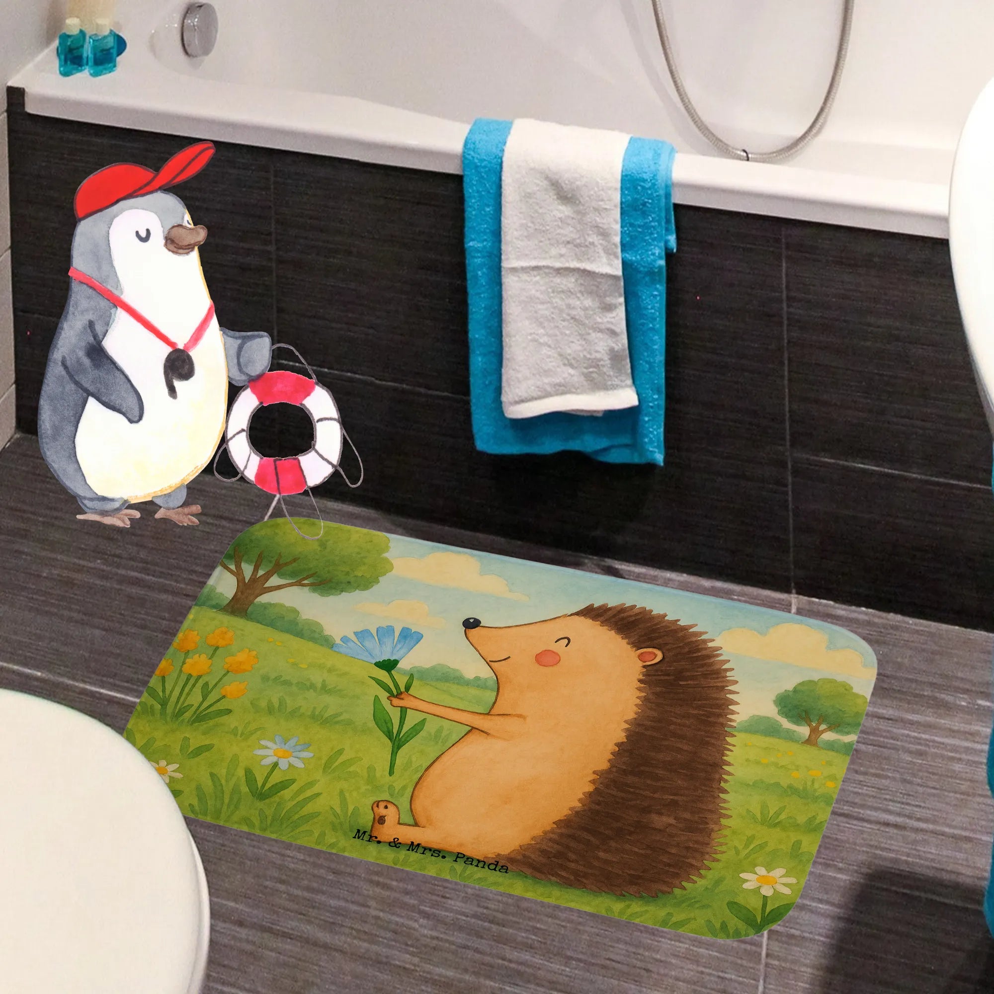 Dieser wunderschöne Badvorleger von Mr. & Mrs. Panda bringt nicht nur Farbe in dein Badezimmer, sondern sorgt auch für einen angenehmen Komfort unter den Füßen. Mit seinen Maßen von 590 mm x 400 mm passt er perfekt vor die Dusche oder Badewanne. Der Badvorleger ist aus flauschiger Premium Kunstfaser hergestellt und verfügt über eine rutschfeste Gummibeschichtung, die das Ausrutschen verhindert. Die liebevoll bedruckten Motive und Sprüche verleihen deinem Badezimmer eine tolle Optik und machen den Aufenthalt dort noch angenehmer. Der Badvorleger ist besonders saugstark und sorgt dafür, dass Wasser schnell aufgenommen wird, während die Vorderseite angenehm weich bleibt. Du kannst ihn ganz leicht bei 30°C in der Waschmaschine waschen, sodass er immer frisch und einladend aussieht.