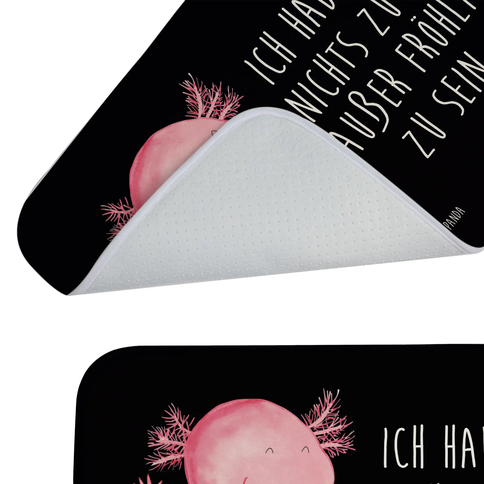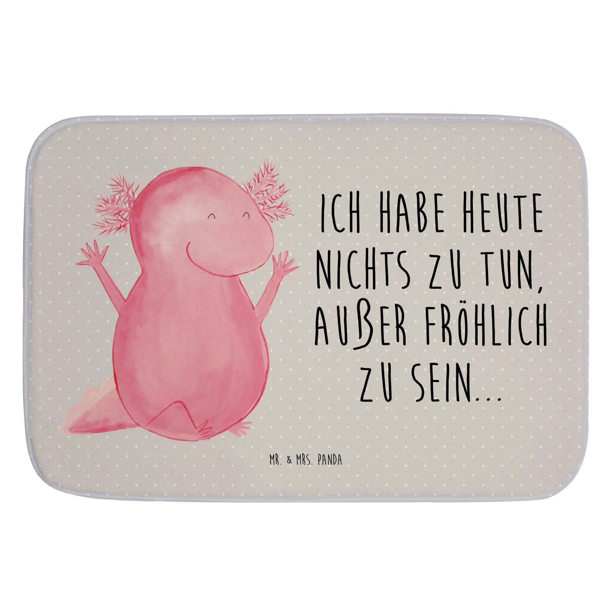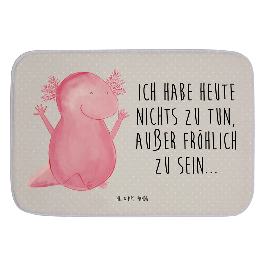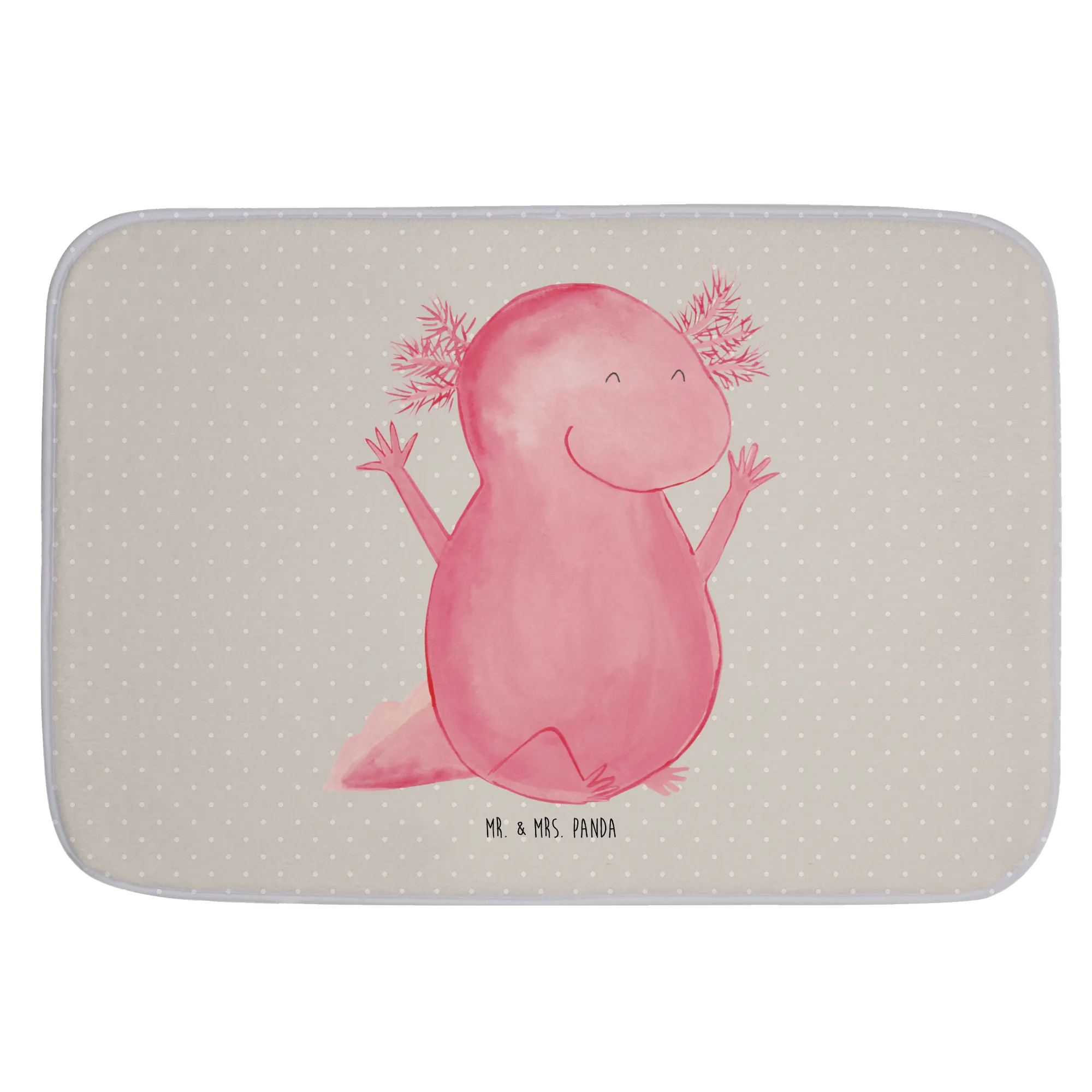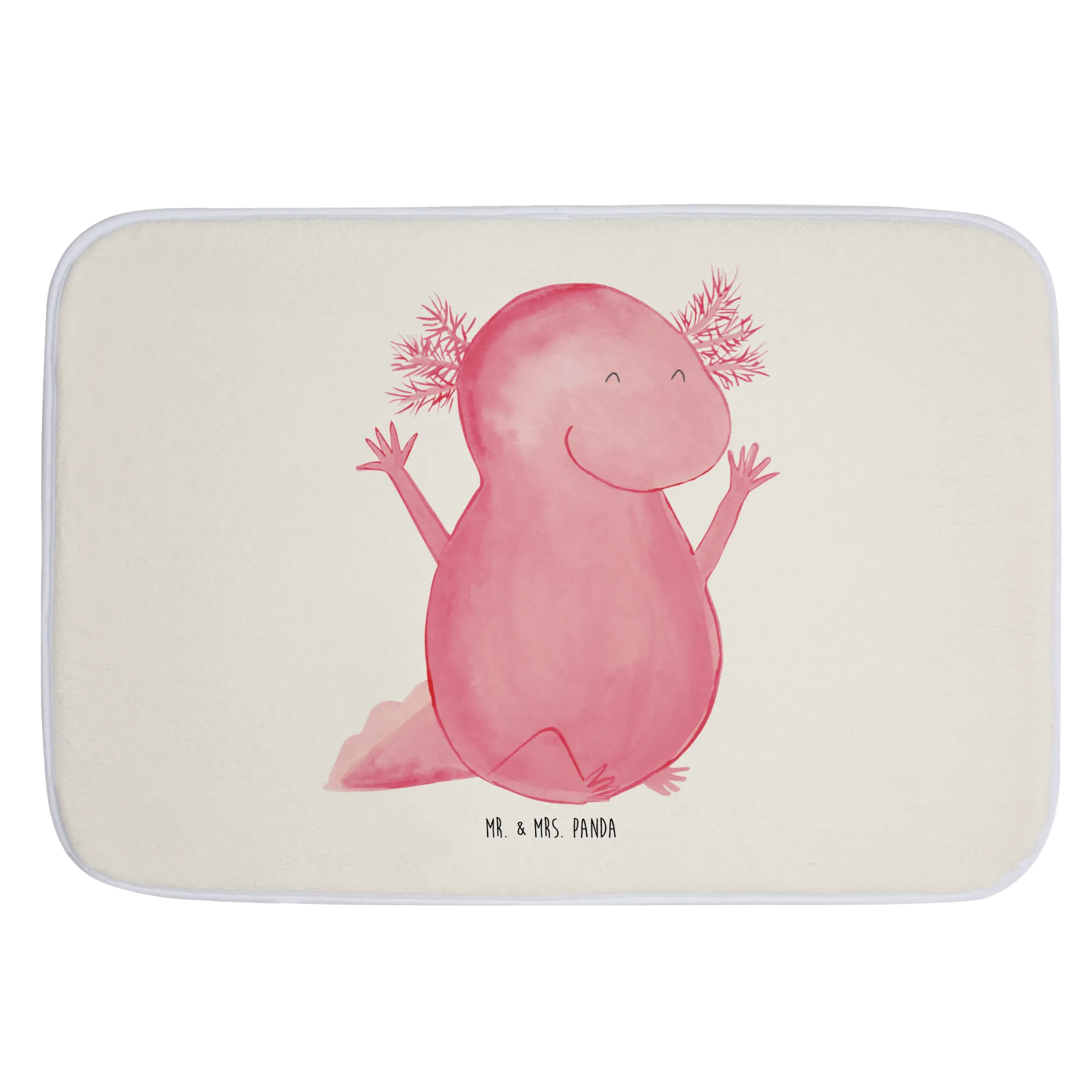 The cheerful Axolotl motif offers a fun and vibrant touch. Designed with love by Mrs. Panda in her signature panda style, this adorable amphibian is not just a quirky design choice but also a nod to the fascinating Mexican walking fish known for its cute appearance and joyful disposition. With its happy, raised arms and wide grin, this Axolotl bath mat is bound to put a smile on anyone's face, making it the perfect gift to uplift the spirits of your loved ones!