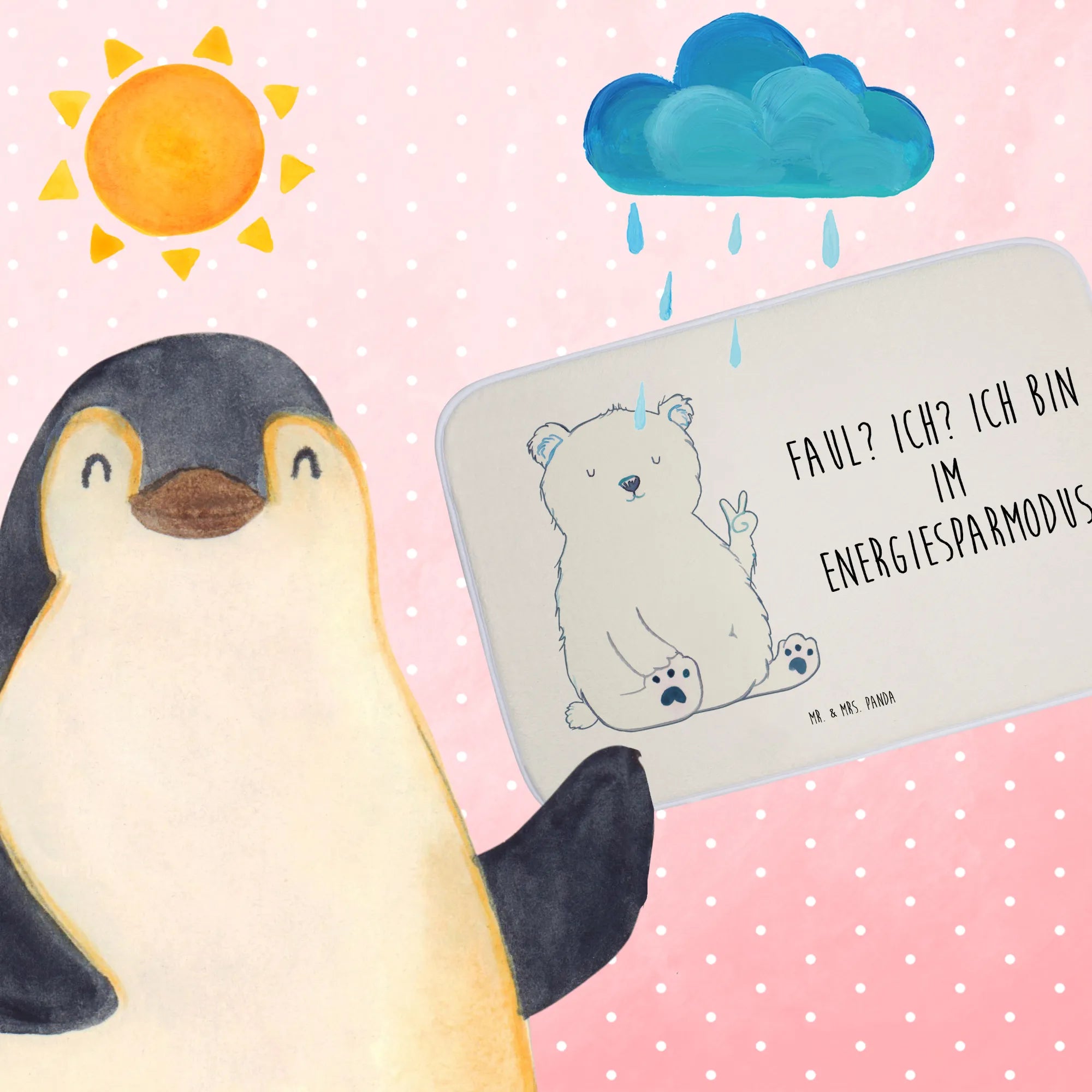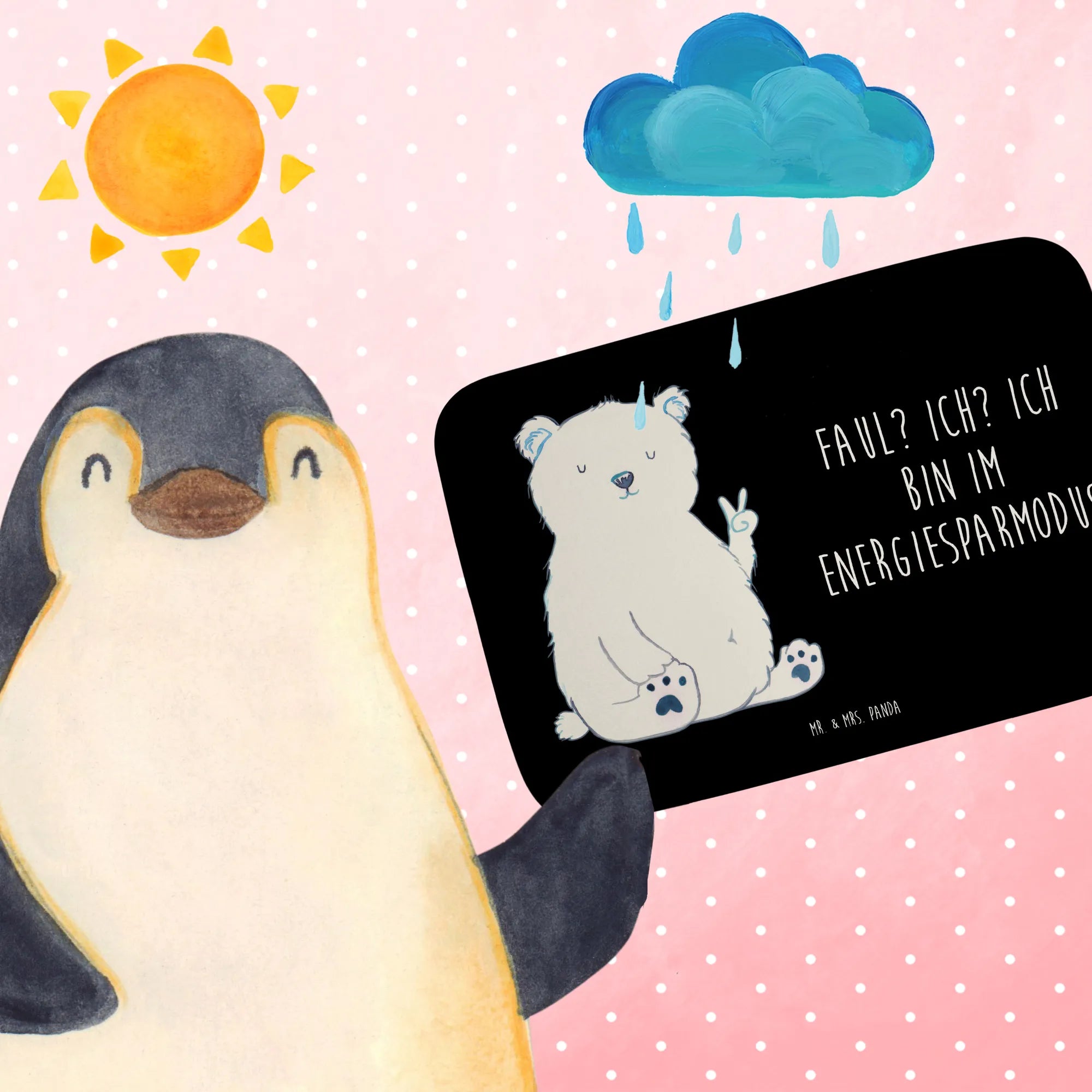 Introducing our whimsical Polar bear, the king of relaxation and peace! With a playful peace sign, this bear teaches us the value of taking a break. Under the motto 'Faul? Ich? Ich bin im Energiesparmodus,' he embodies the spirit of doing nothing—something we all need to embrace, especially during hectic workdays. Picture him lounging at the North Pole while we race around in our office jobs. This lovely motif serves as a daily reminder that it's perfectly okay to kick back and take things slow. Let this adorable bear brighten your workspace or home office with its gentle humor and soothing energy. Embrace the lazy life with a smile, and let this design motivate you to find harmony in both work and relaxation.