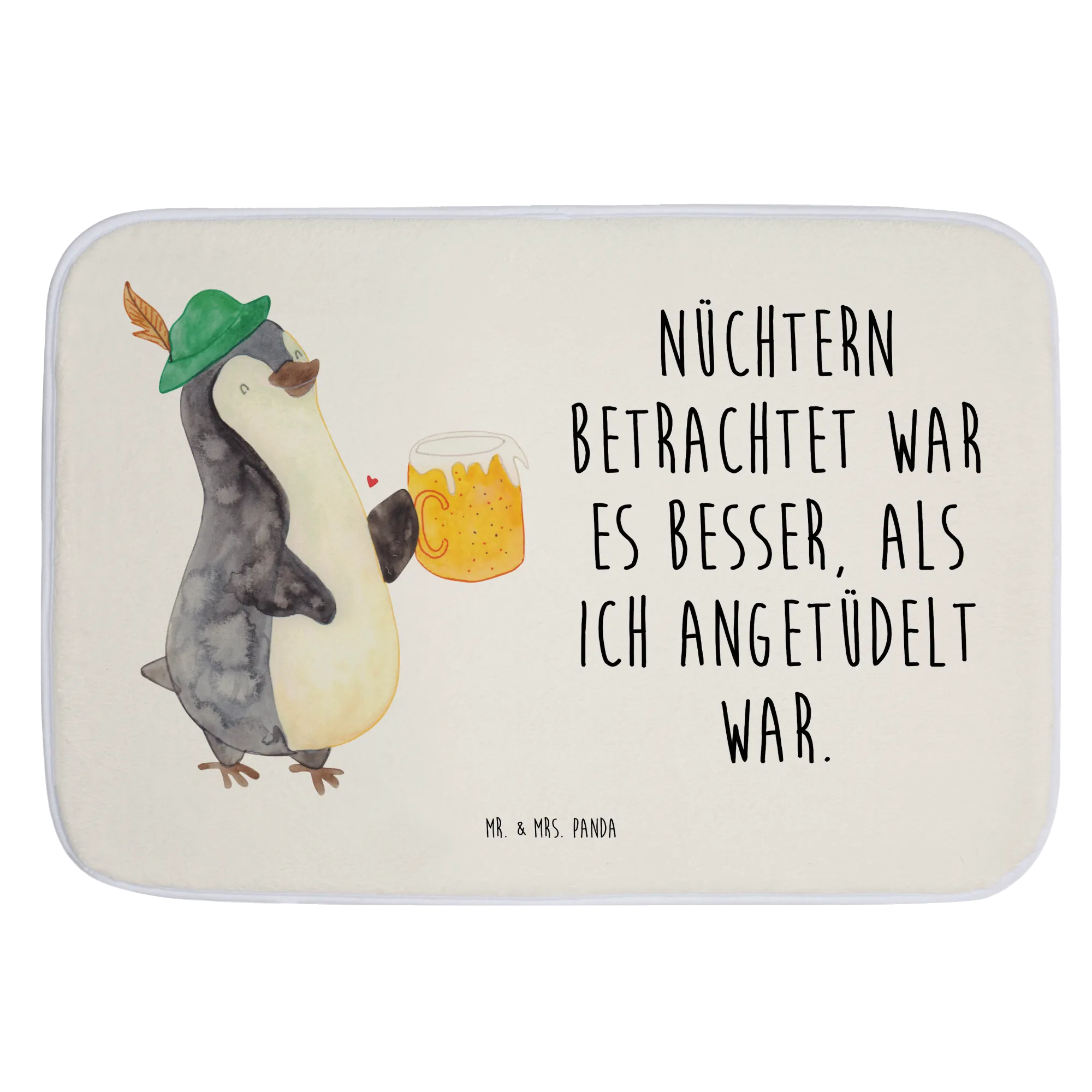 Our Penguin Beer design showcases a cute penguin dressed in traditional Bavarian attire, holding a large Maß of beer, ensuring a cheerful vibe every time you step out of the shower or bath.