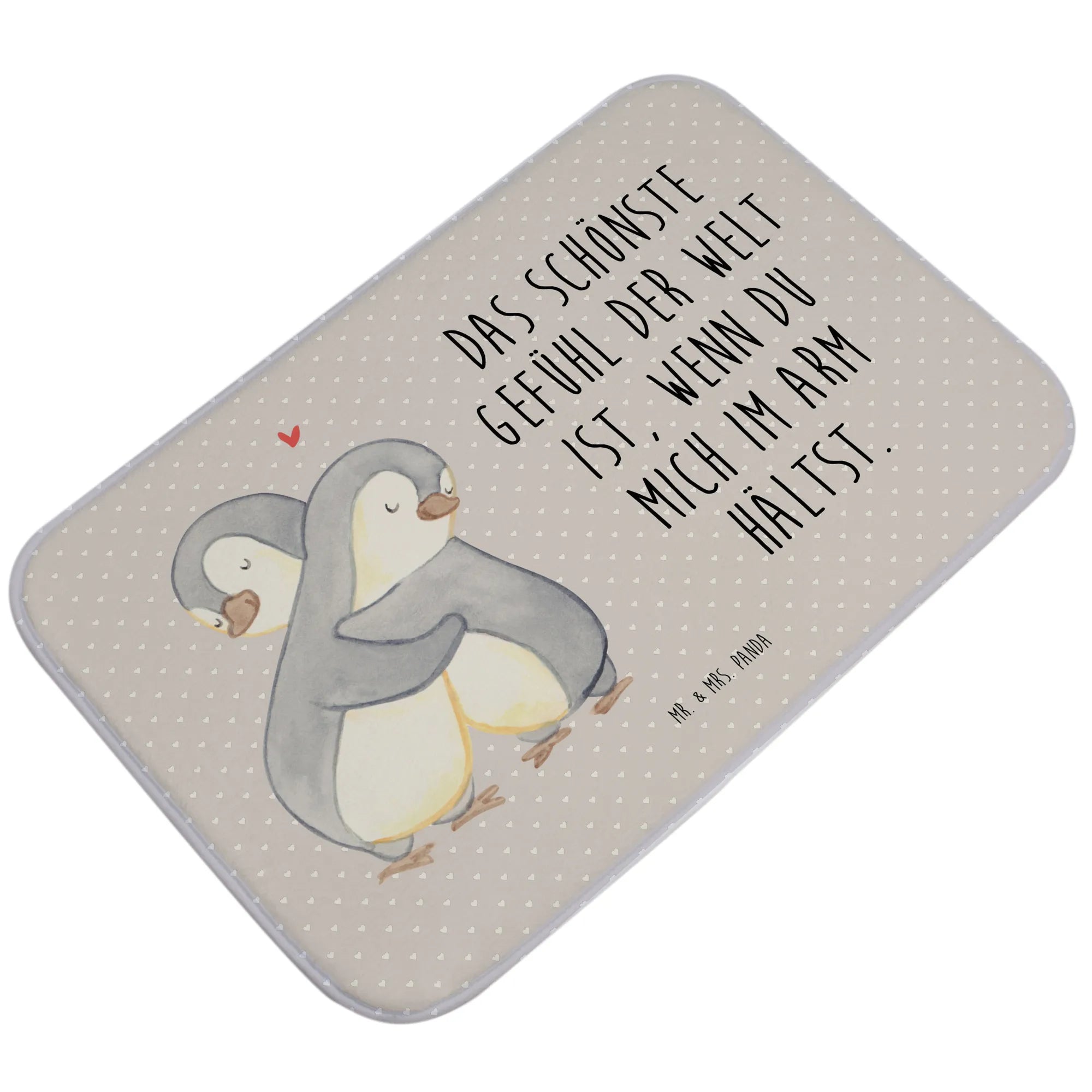 Entdecke den wärmsten und kuscheligsten Badvorleger von Mr. & Mrs. Panda – unsere bezaubernde Badezimmermatte mit dem liebevollen Motiv "Pinguine Kuscheln"! Dieser Badteppich ist nicht nur ein echter Hingucker in jedem Badezimmer, sondern spendet auch sanften Komfort unter deinen Füßen. Die beiden Pinguine, die sich innig umarmen, verkörpern das schönste Gefühl der Welt und bringen so täglich Freude in Deinen Alltag. Die sanften Grau- und Beigetöne harmonieren perfekt mit jedem Badezimmerstil und schaffen eine beruhigende Atmosphäre.