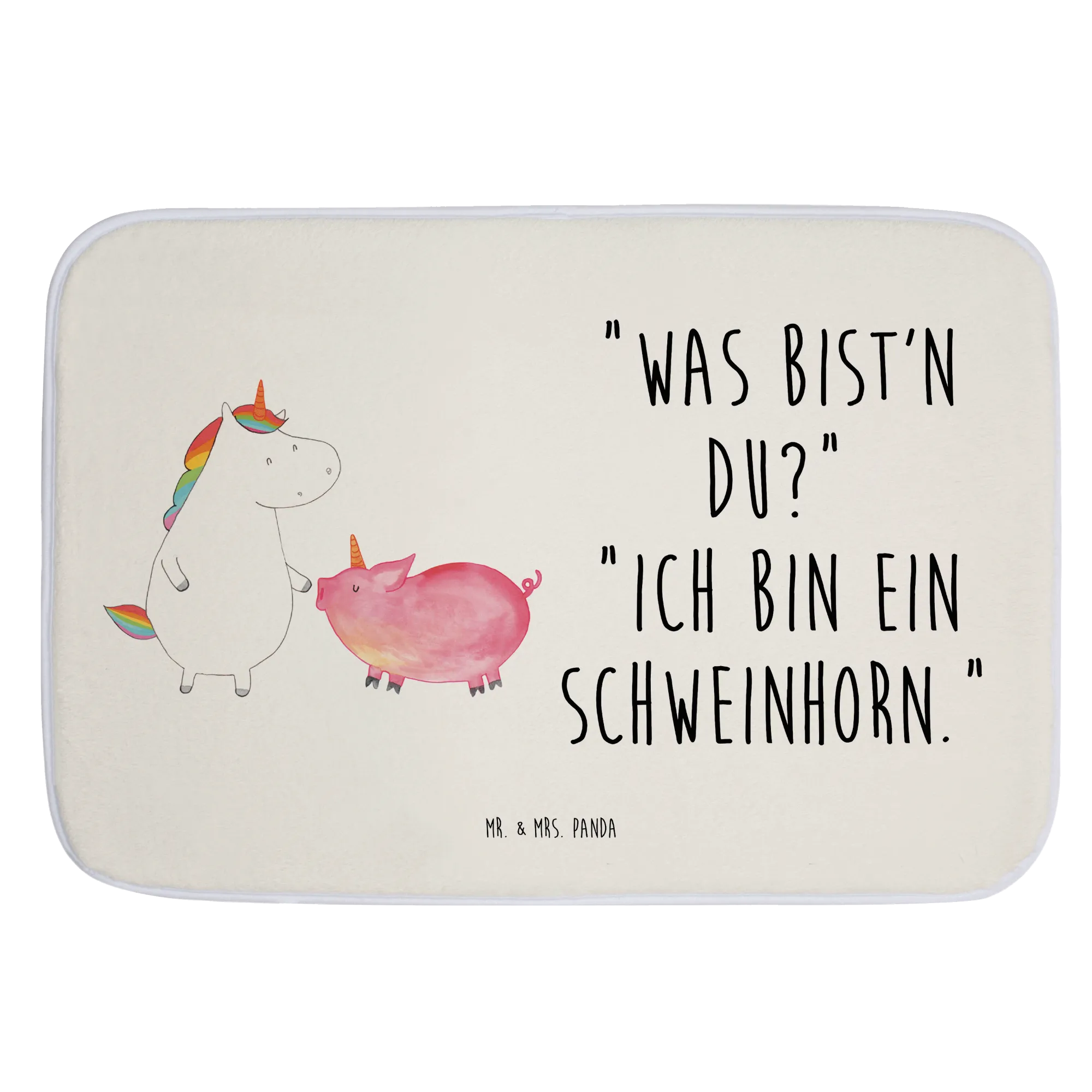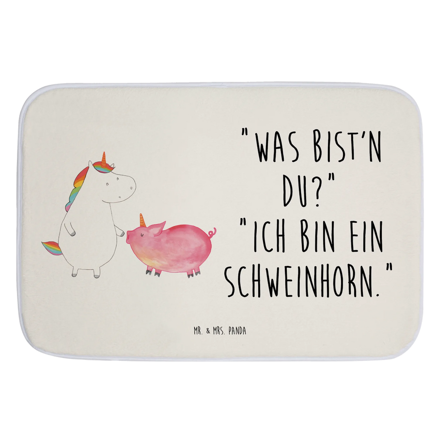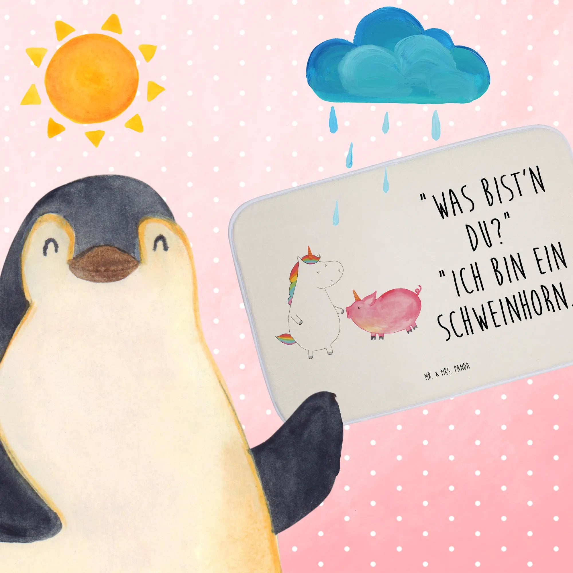 Badematte Einhorn + Schweinhorn von Mr. & Mrs. Panda - Das perfekte Geschenk für alle Einhorn-Fans! Diese Badvorleger aus der bezaubernden Einhorn-Kollektion sind nicht nur funktional, sondern auch ein echter Hingucker in jedem Badezimmer. Mit den liebevoll handgezeichneten Motiven von Einhorn und Schweinhorn zaubert dieser Badezimmerteppich sofort gute Laune und bringt die magische Welt der Einhörner in dein Zuhause.