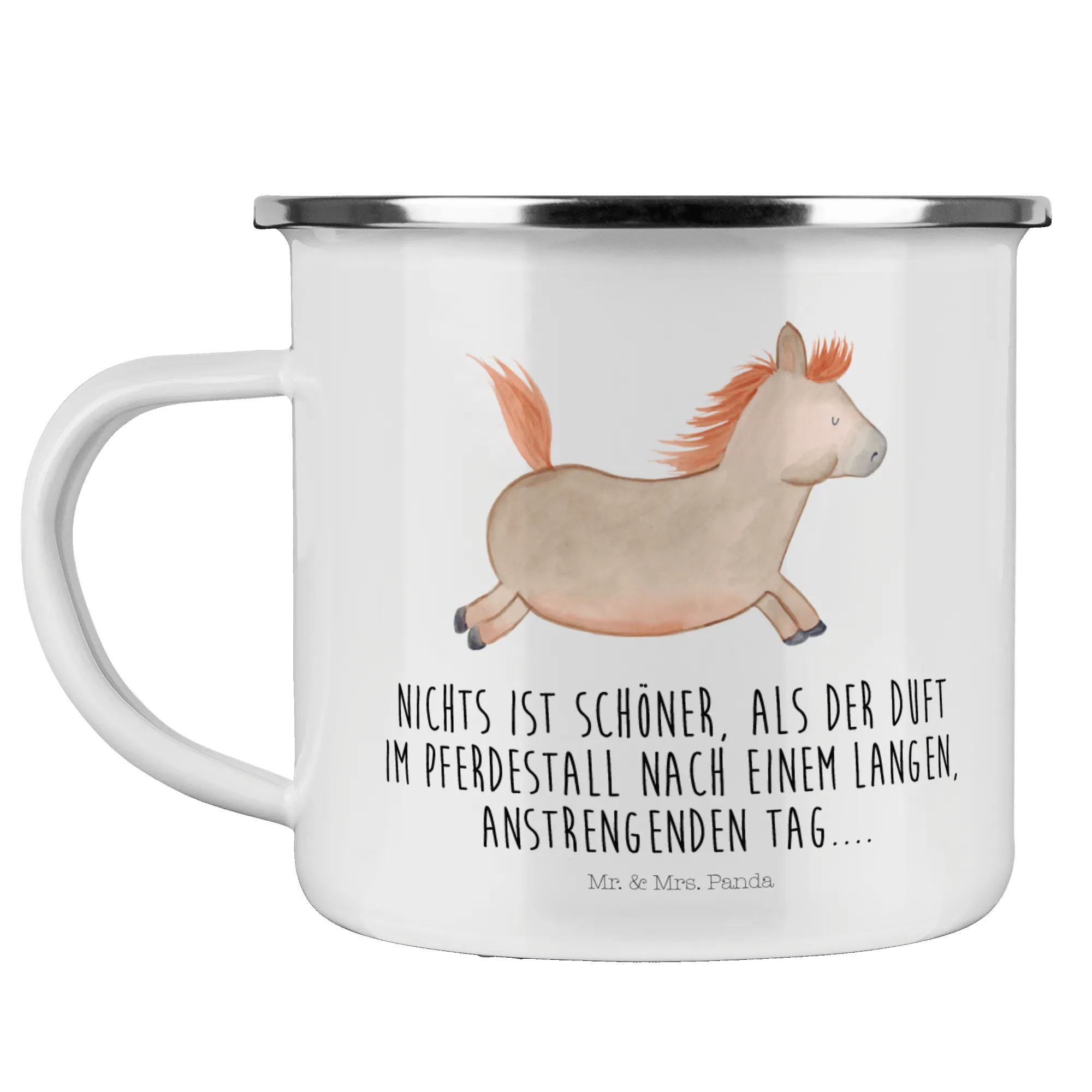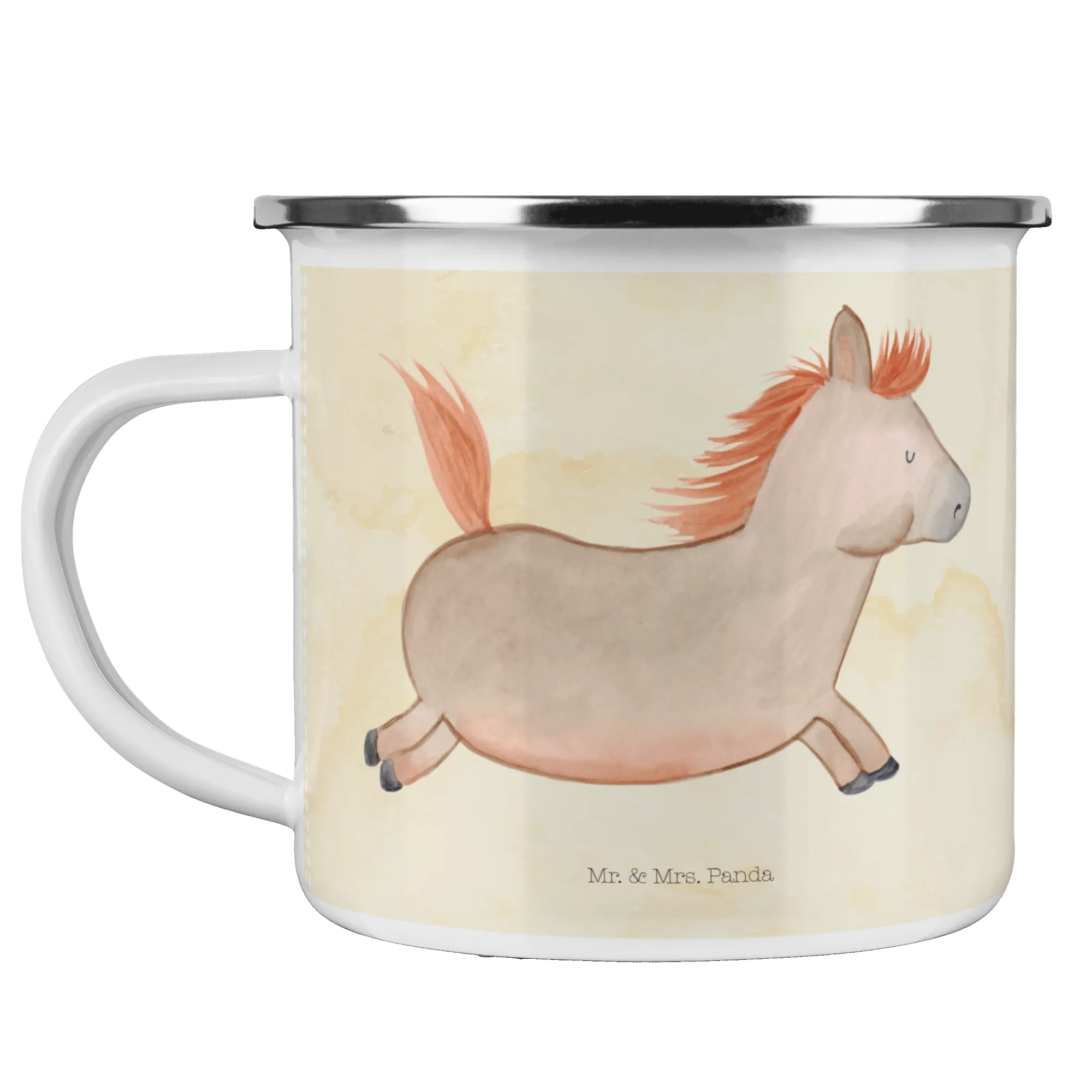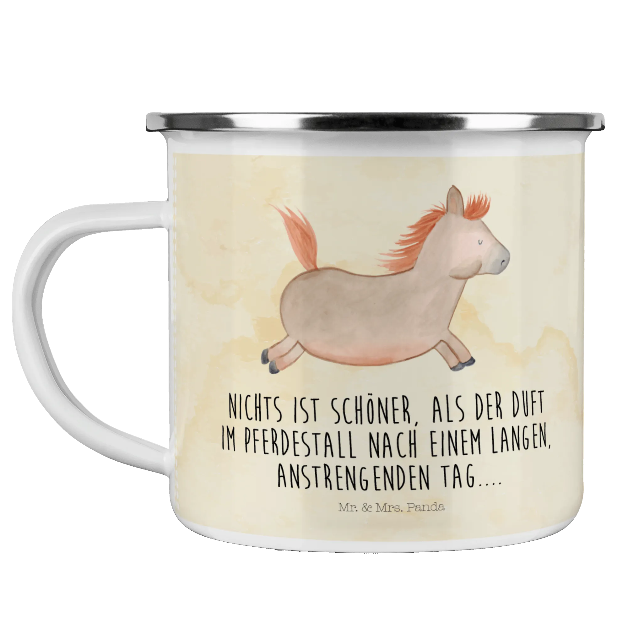Introducing the perfect companion for every horse lover and outdoor enthusiast: our enchanting Enamel Camping Mug featuring the delightful "Horse Jumps" motif from the beloved Mr. & Mrs. Panda Farm collection! This beautiful enamel mug is a heartfelt celebration of the joys of horseback riding and everything that comes with it. Whether you're at the stable, enjoying a cozy campfire, or embarking on a thrilling adventure through the great outdoors, this mug is designed to brighten your day with every sip.