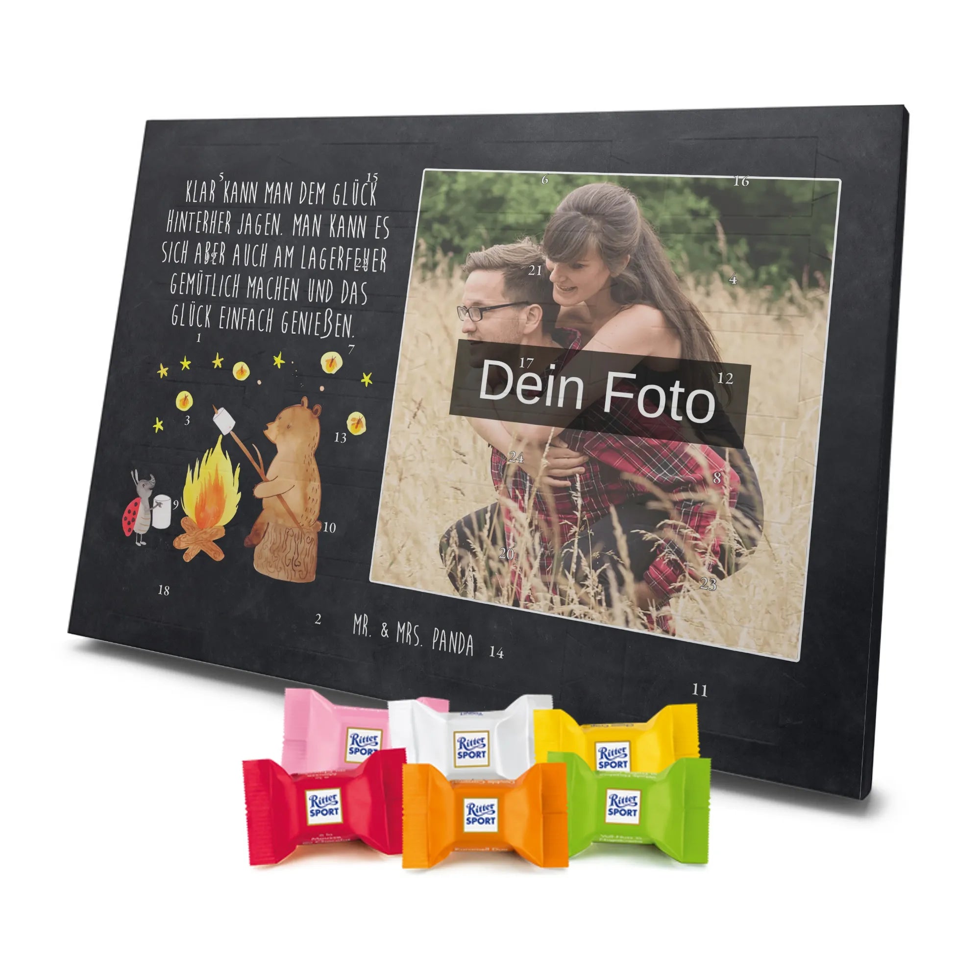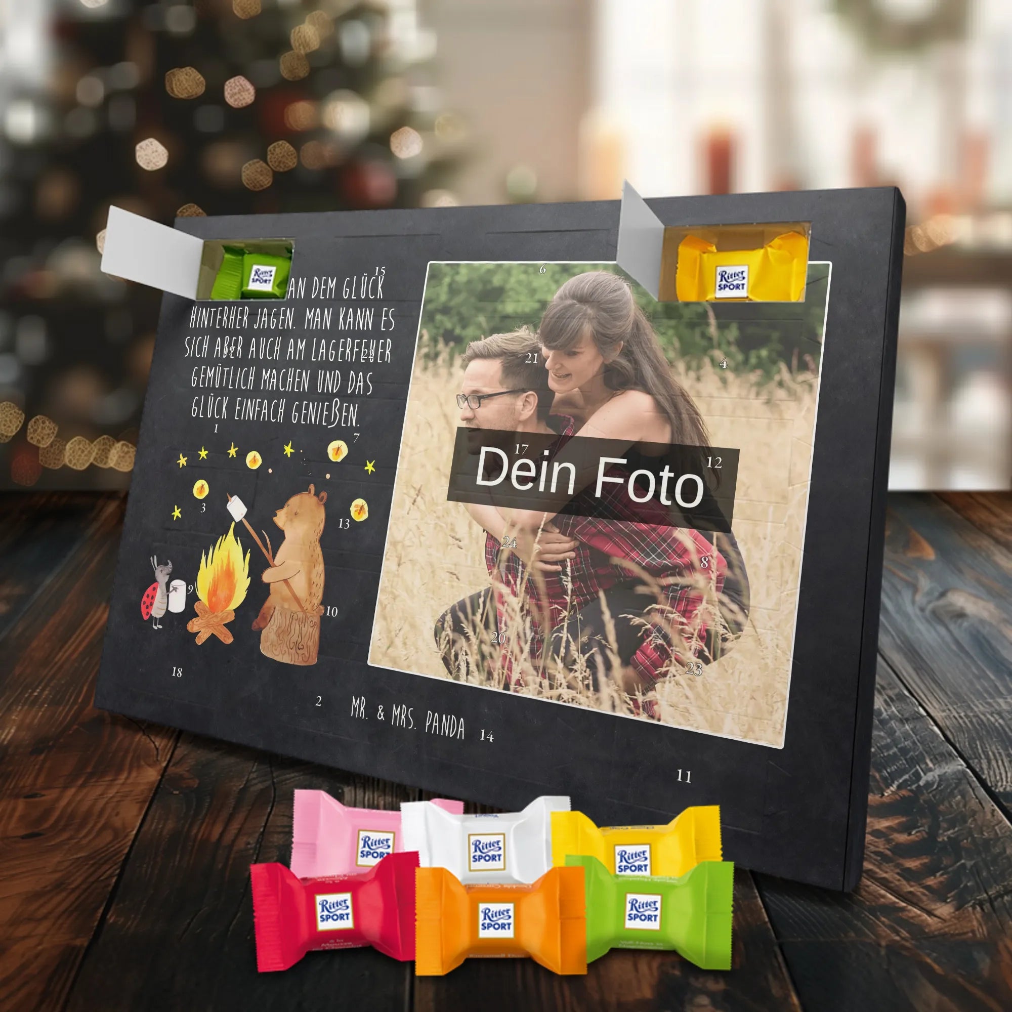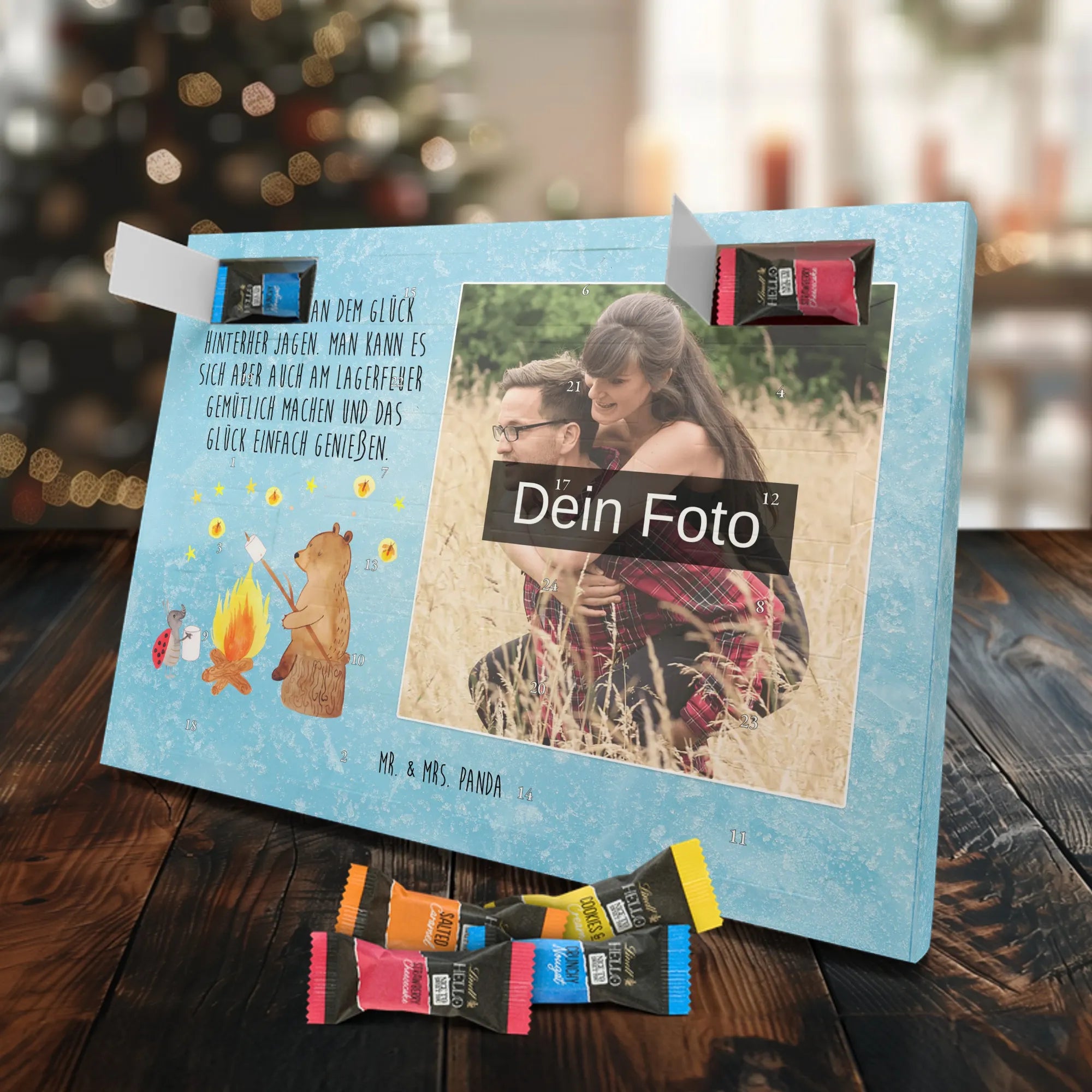 Personalisierter Schoko Foto Adventskalender Bär & Marienkäfer Lagerfeuer - Ritter Sport - Eisblau