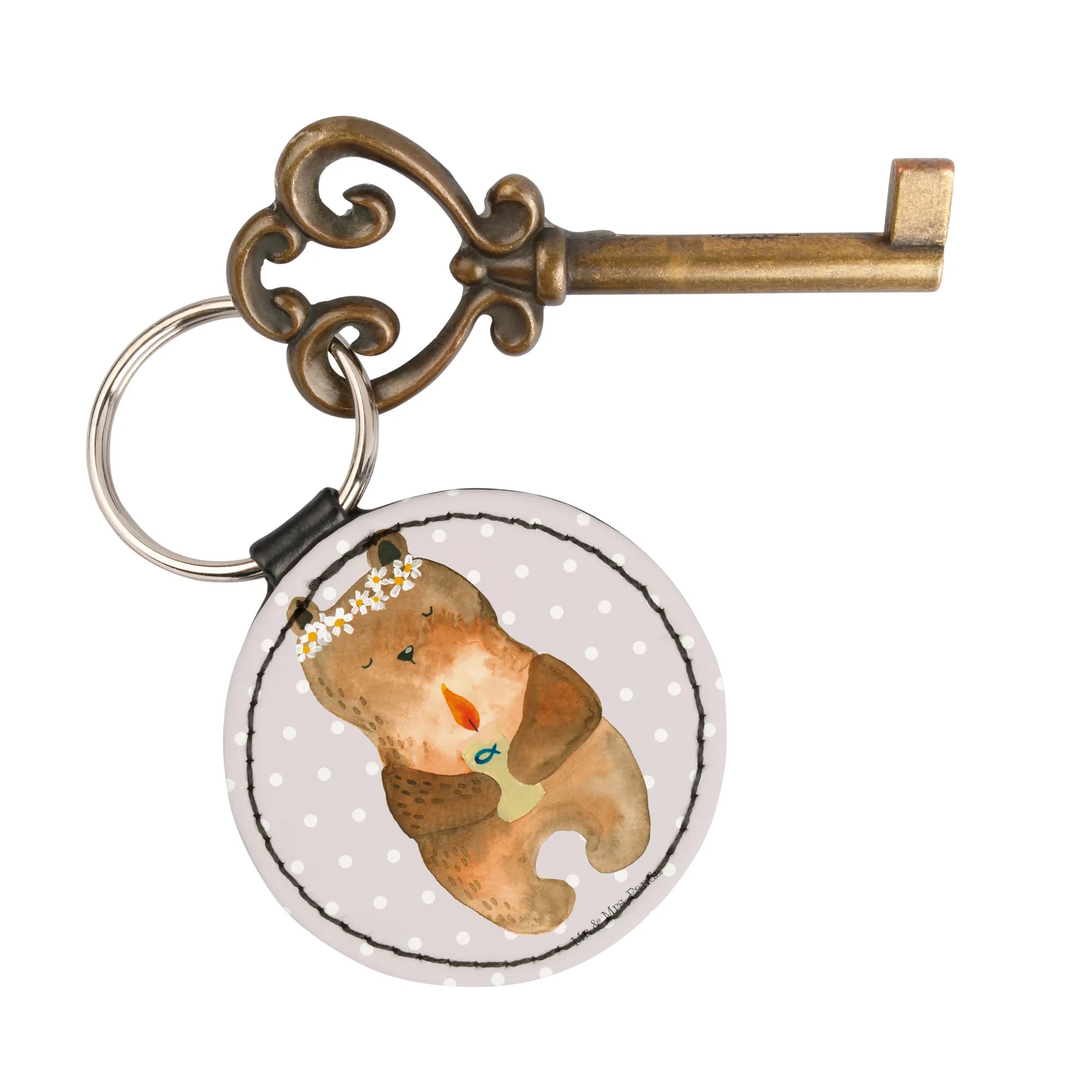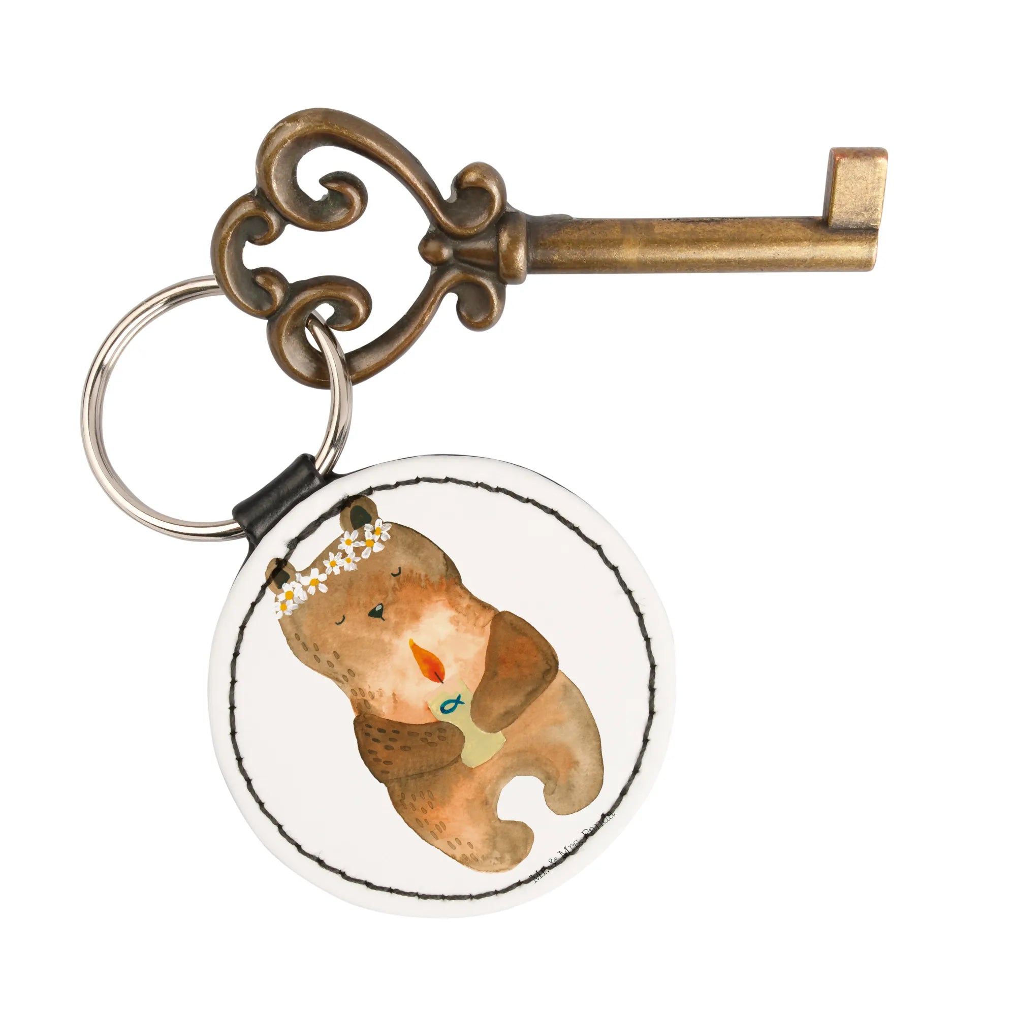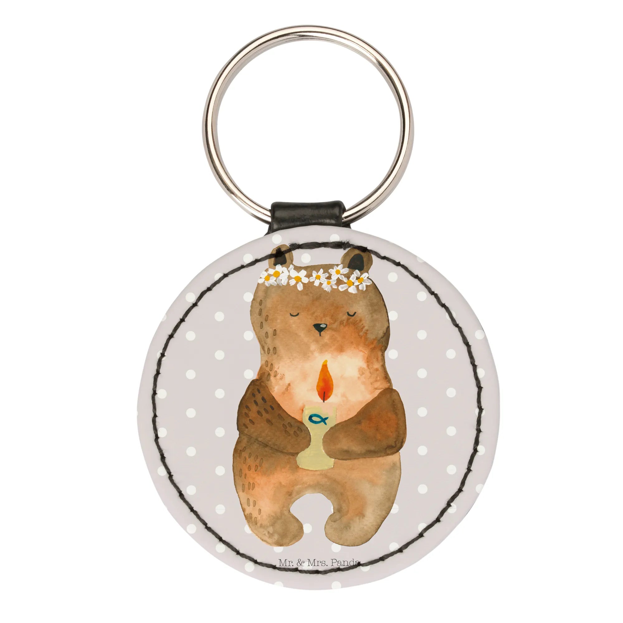 Round key ring bear communion pendant, keychain, key ring, bag pendant, lucky charm, bear, teddy, teddy bear, cuddly toy, God's blessing, communion, catholic, baptismal candle