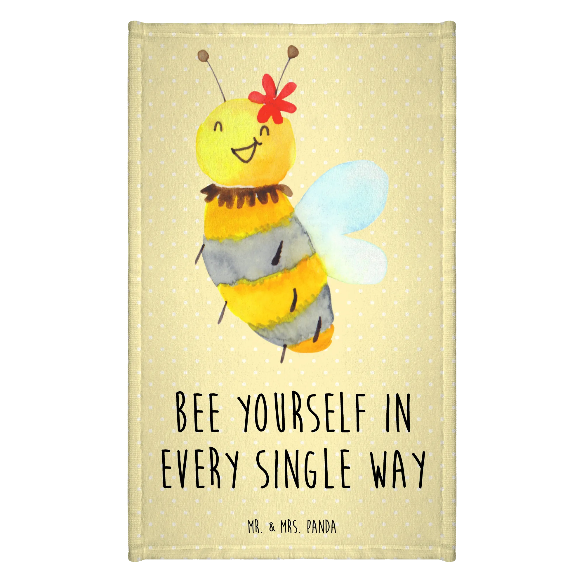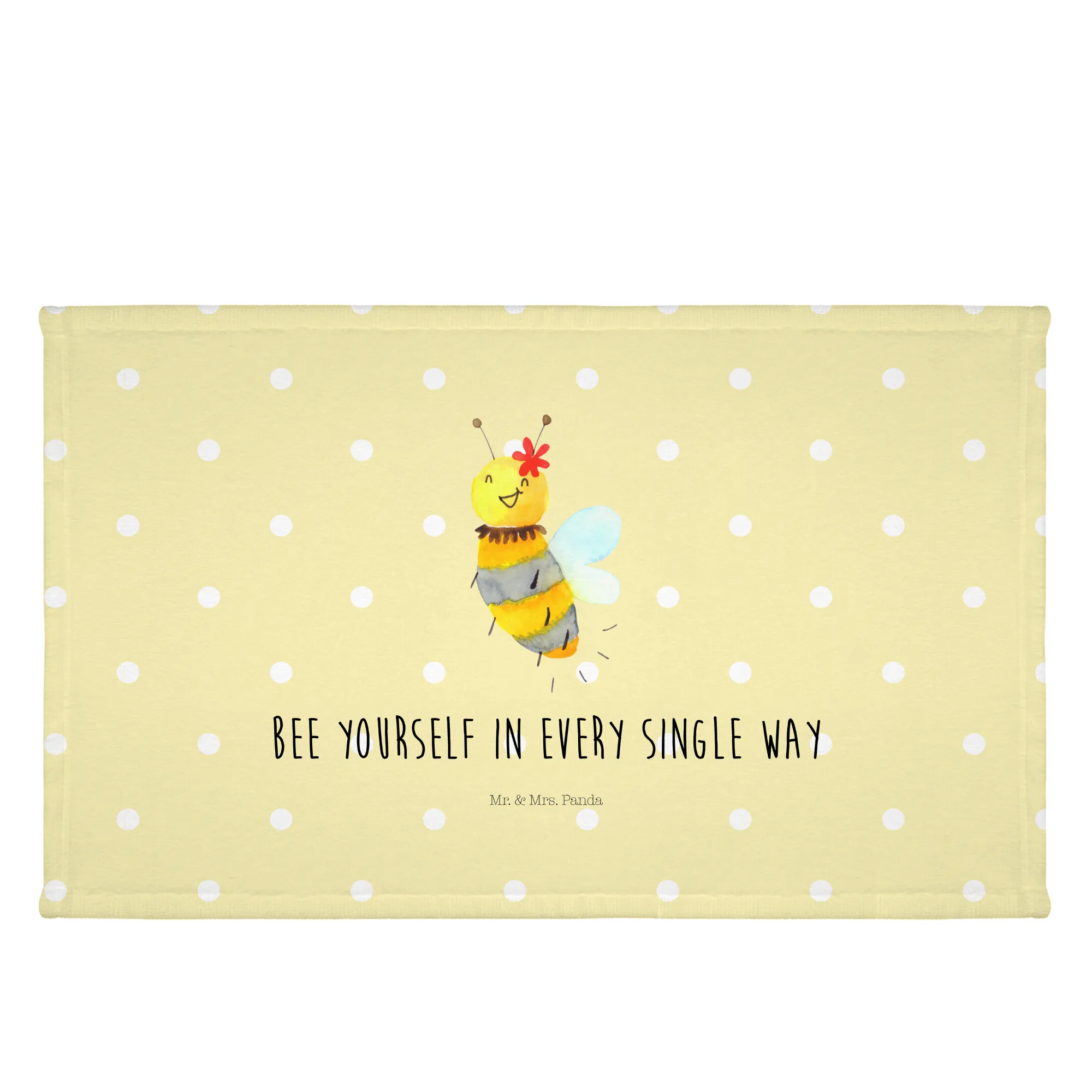 Imagine stepping into your bathroom and being greeted by this vibrant towel adorned with an adorable bee and its delicate flower, instantly lifting your mood. The cheerful design, lovingly hand-drawn by Mrs. Panda, showcases a cute bee playfully hovering above a flower, making it a beautiful reminder to 'Bee yourself in every single way.' This towel serves as a wonderful conversation piece for your guests, creating a welcoming ambiance.