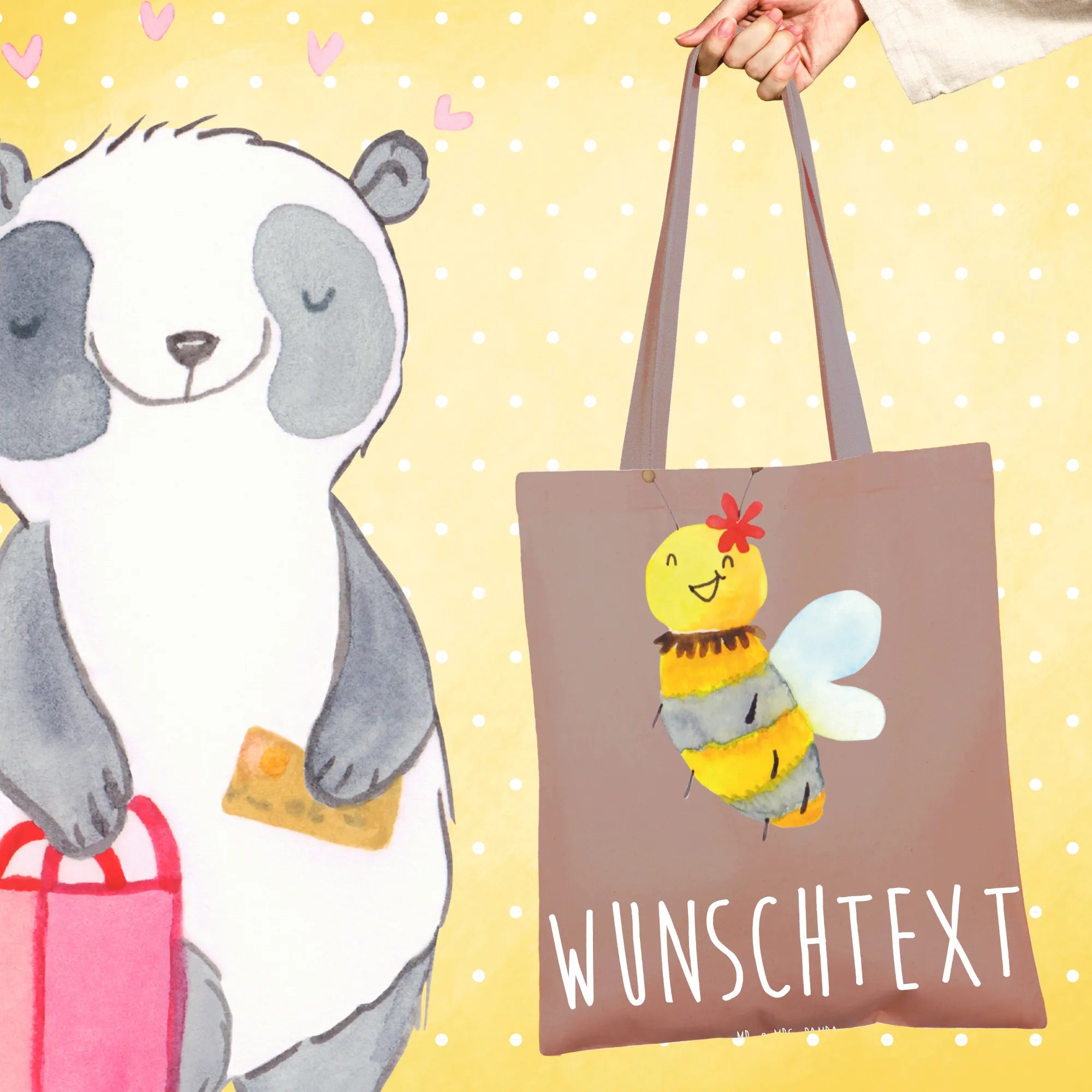 Personalized Photo Tote Bag bee flower - Pastel Brown