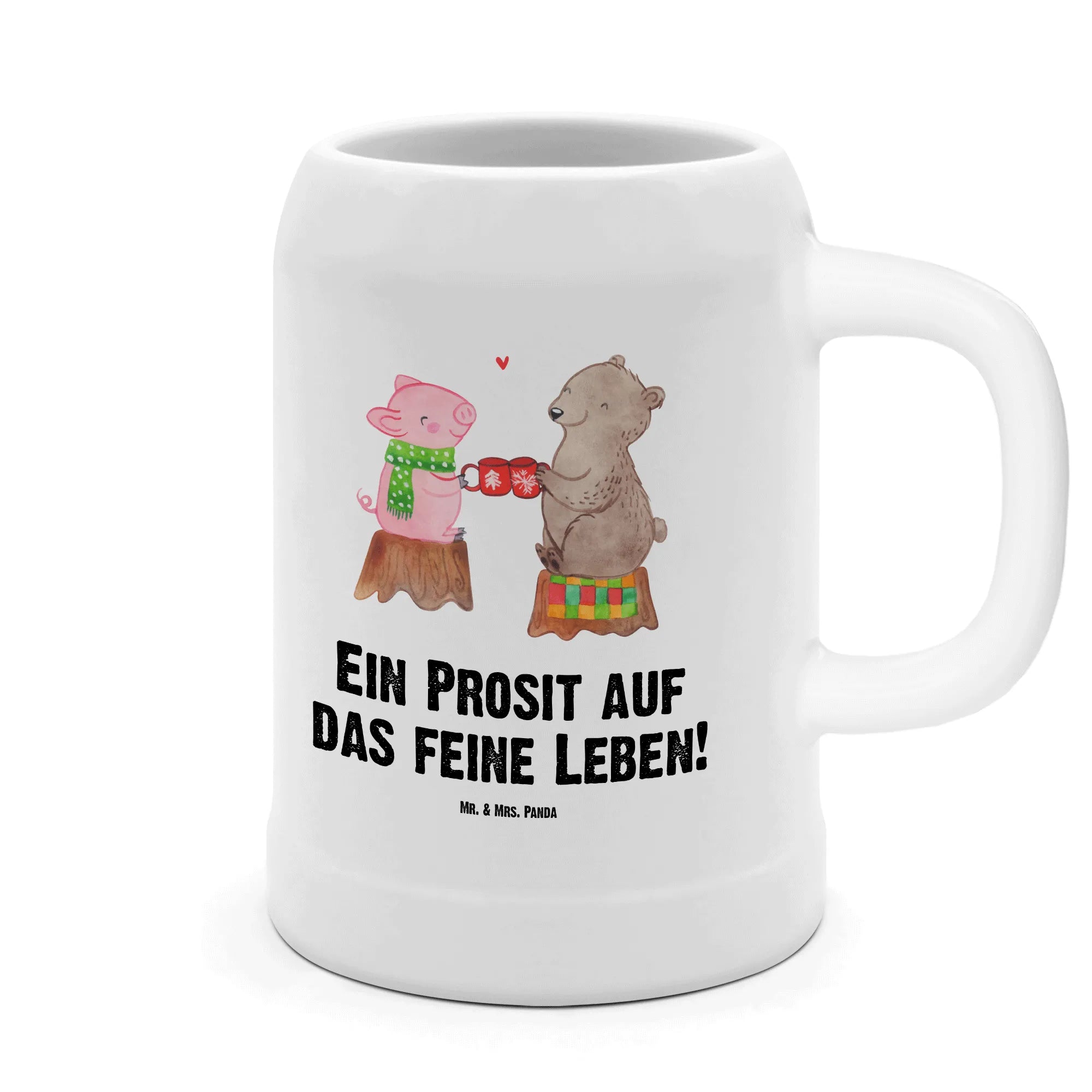 Step into a delightful world where our pig and bear toast to the beauty of friendship. Seated on a tree stump, they lift their cups high, embodying the joy and warmth that comes from a close bond. The small heart between them symbolizes the affection that enhances every shared moment. Our slogan, 'Ein Prosit auf das feine Leben!', encourages us to celebrate every cheerful occasion, especially during the magical Christmas season. Each toast reminds us of the connections that enrich our lives and the happiness that springs from celebrating together. So let’s relish these moments, knowing that true joy lies in the friendships we foster along our journey.