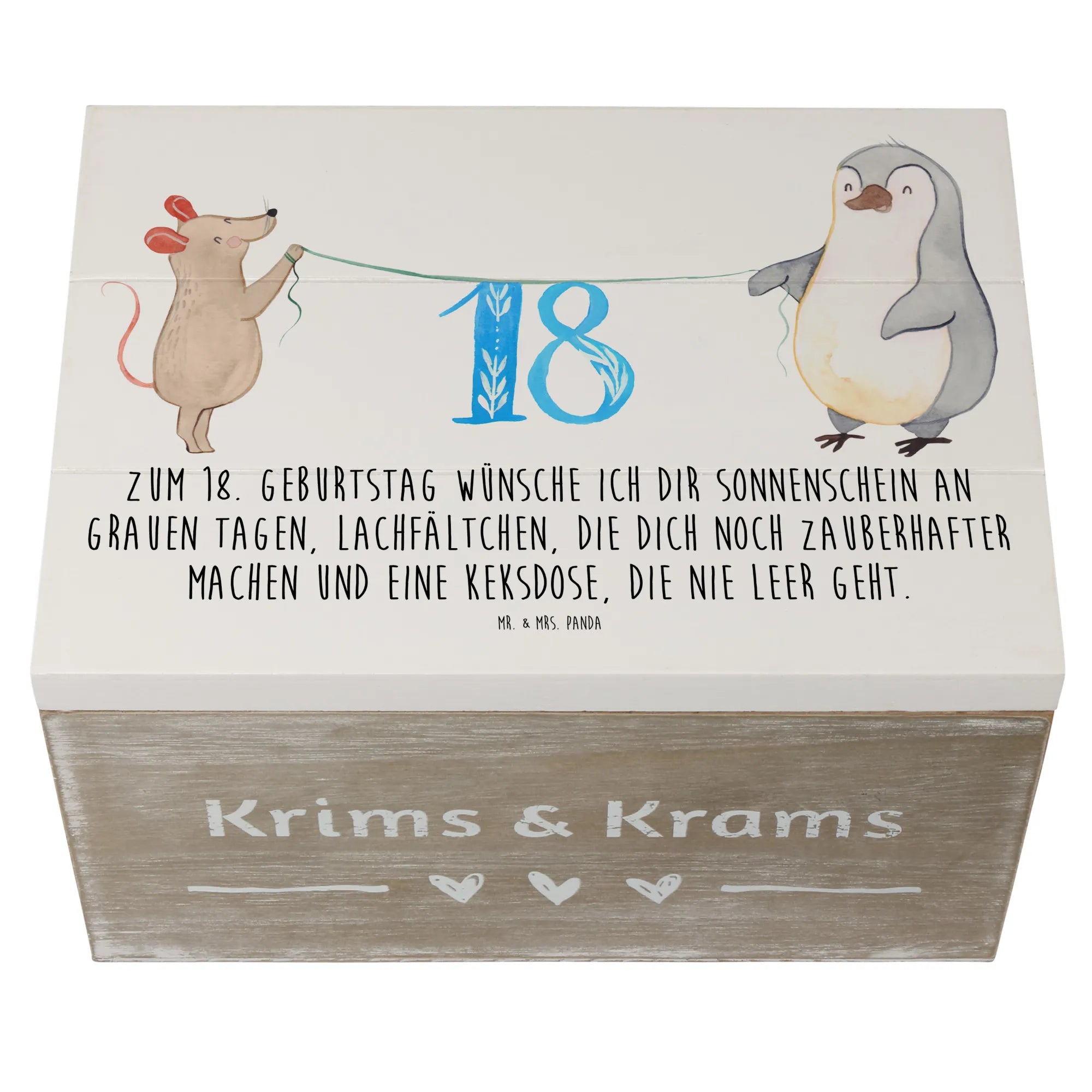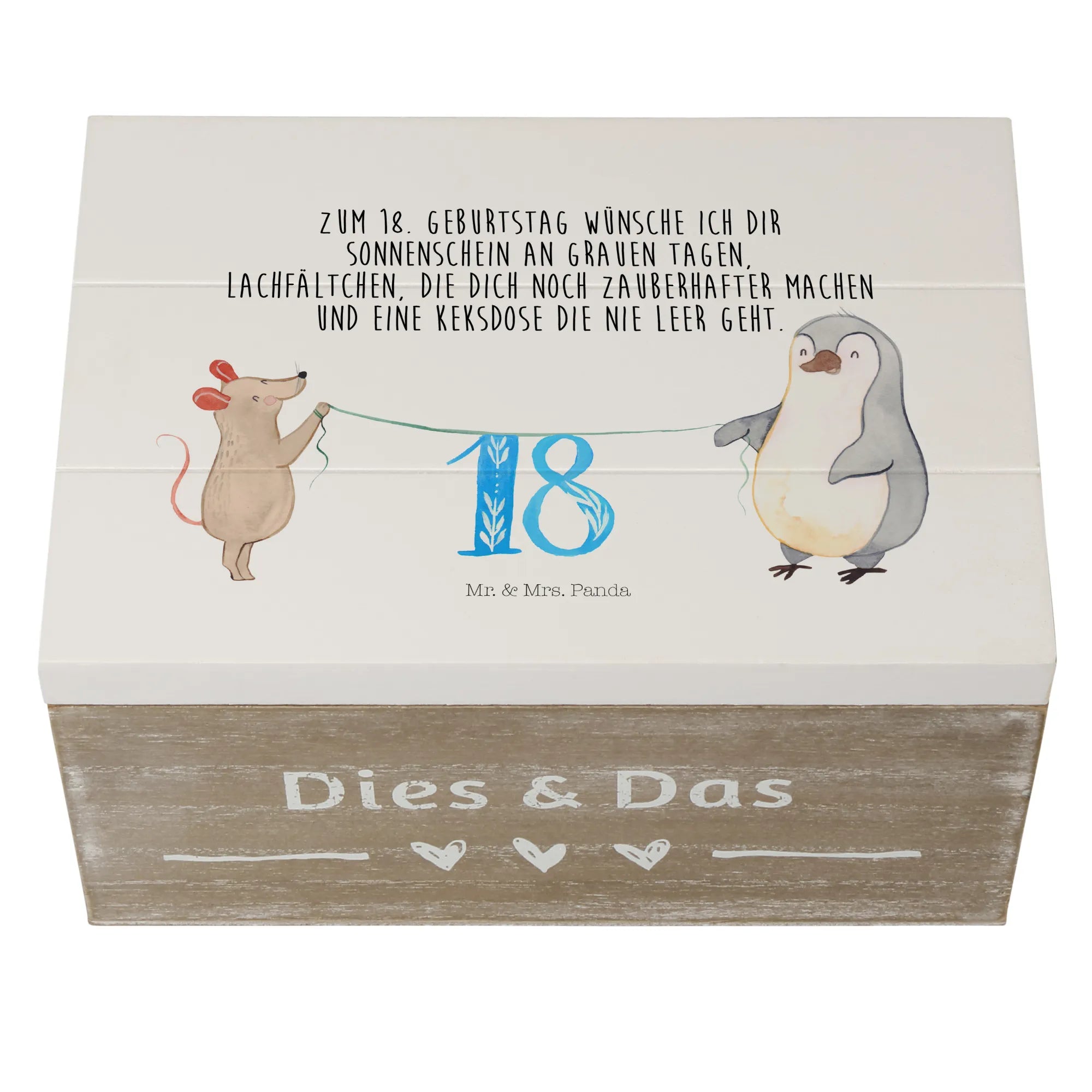 Wooden chest 18th birthday mouse penguin - 22 x 15 cm - with saying