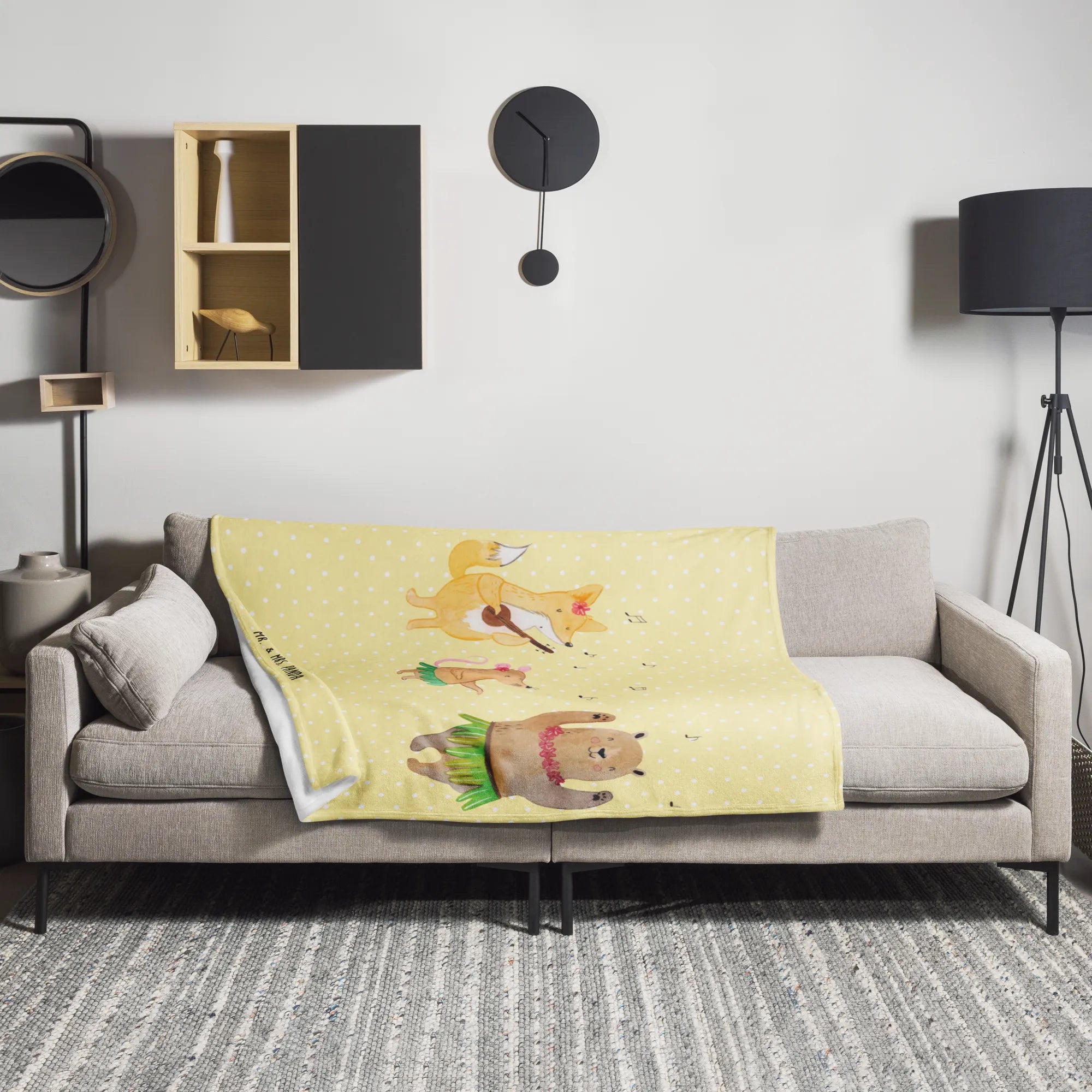 Blanket forest animals Aloha - with saying - Yellow Pastel