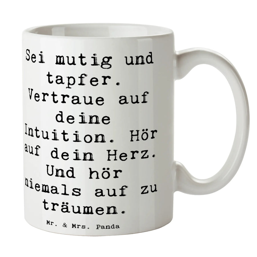 Mug Saying Sei mutig und tapfer. Vertraue auf deine Intuition. Hör auf dein Herz. Und hör niemals auf zu träumen. - White