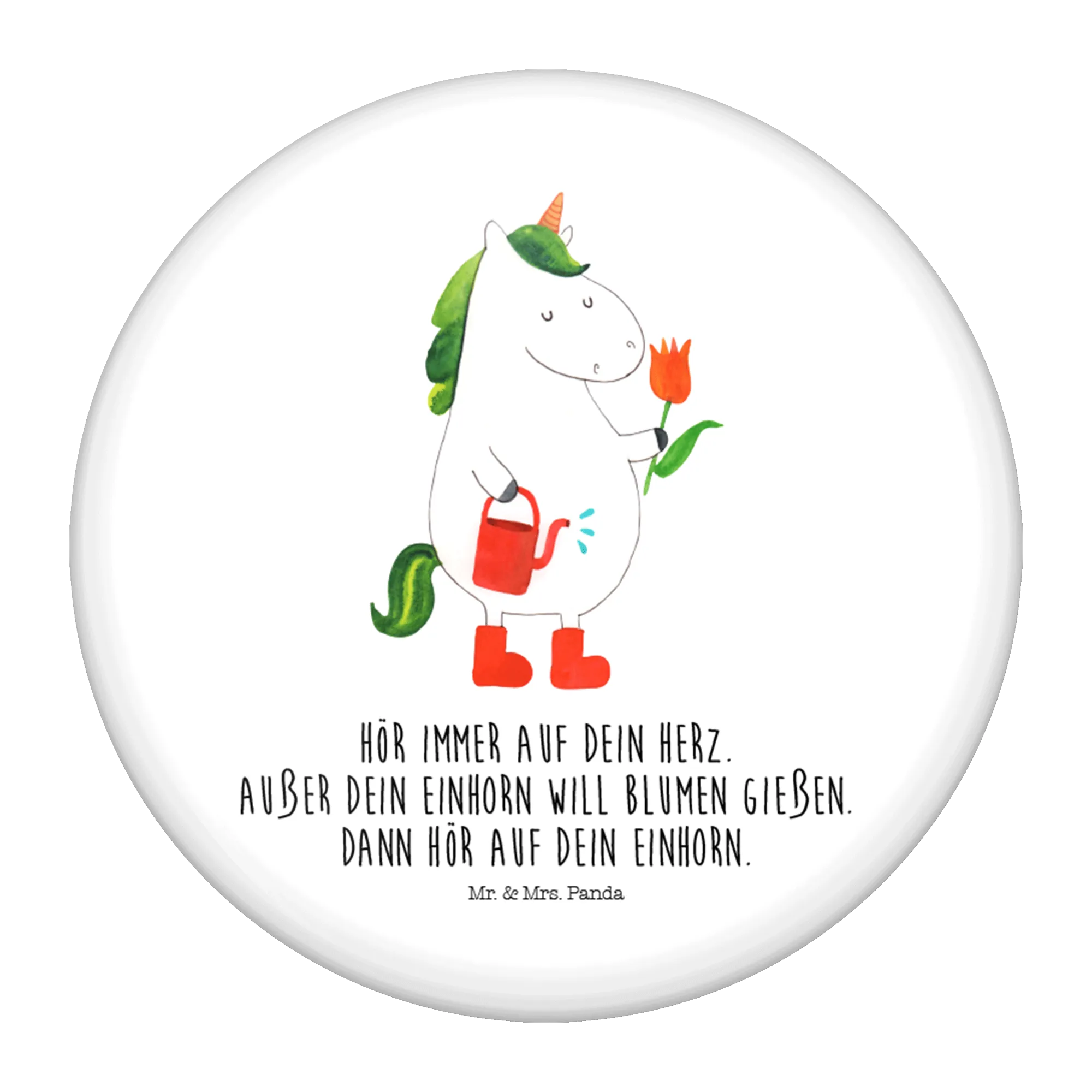 Imagine giving this adorable button with the slogan "Hör immer auf dein Herz. Außer dein Einhorn will Blumen gießen. Dann hör auf dein Einhorn." ("Always listen to your heart. Unless your unicorn wants to water flowers. Then listen to your unicorn.") This delightful phrase adds a playful twist that gardeners and unicorn enthusiasts alike can cherish.