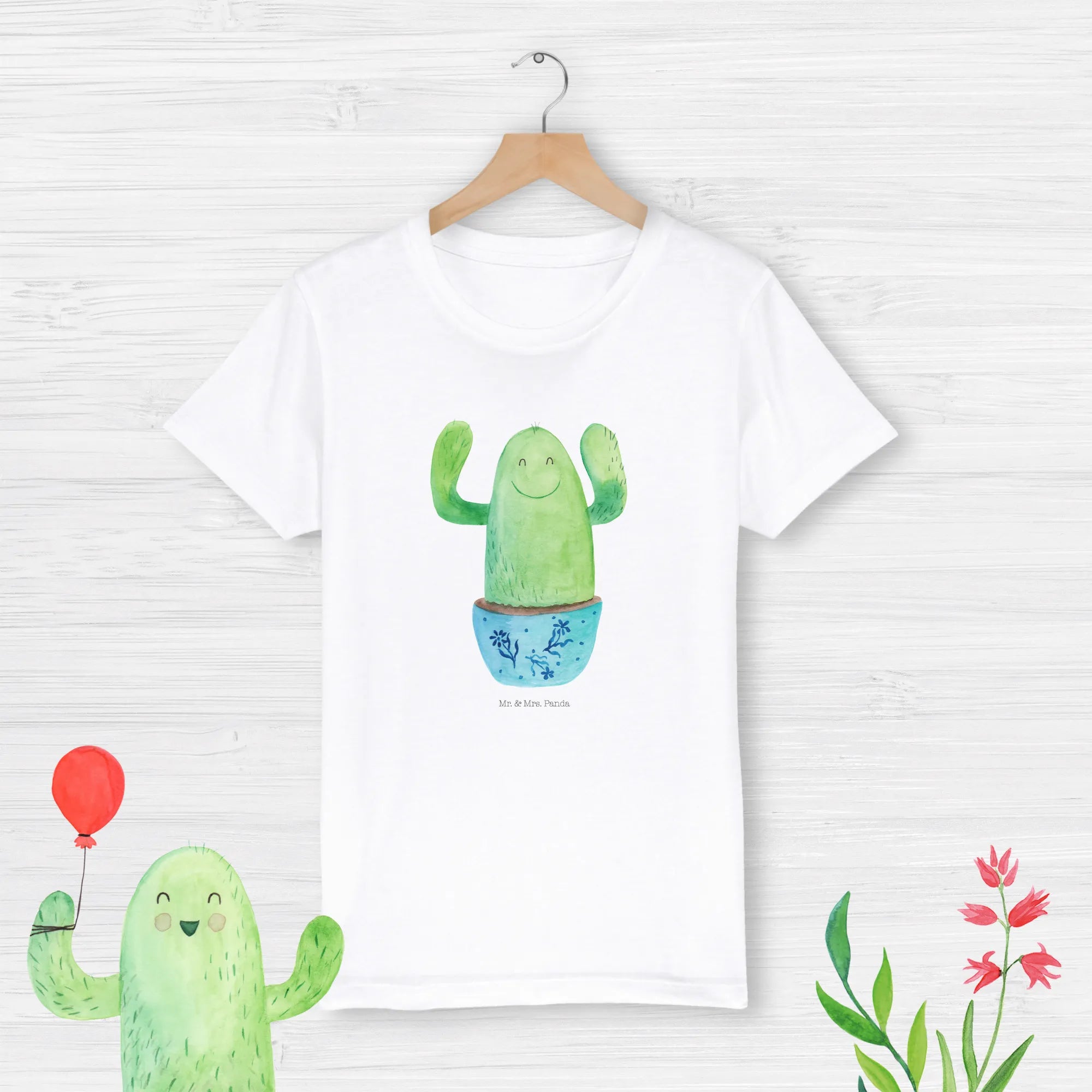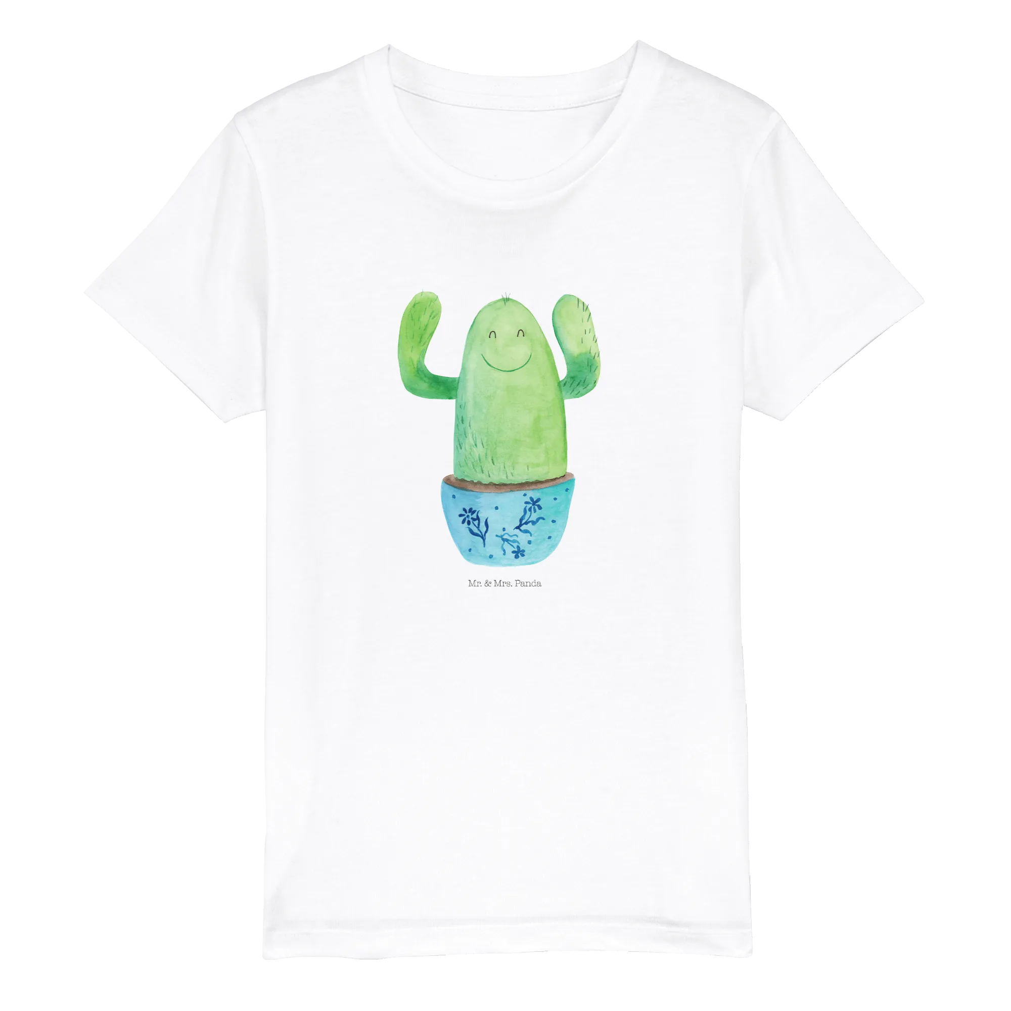 Crafted from 100% organic cotton, it’s not only gentle on their skin but also kind to the planet. Each shirt features a cheerful cactus motif, radiating positivity and fun. Why a cactus, you ask? Cactuses are resilient little plants that symbolize perseverance and joy—qualities we all want to nurture in our children. This shirt showcases a bright, happy cactus wearing a beautiful blue flower pot, all lovingly illustrated by Mrs. Panda in a charming watercolor style. It’s more than just a T-shirt; it's an inspiring piece that encourages kids to embrace their individuality and shine in their own special way.