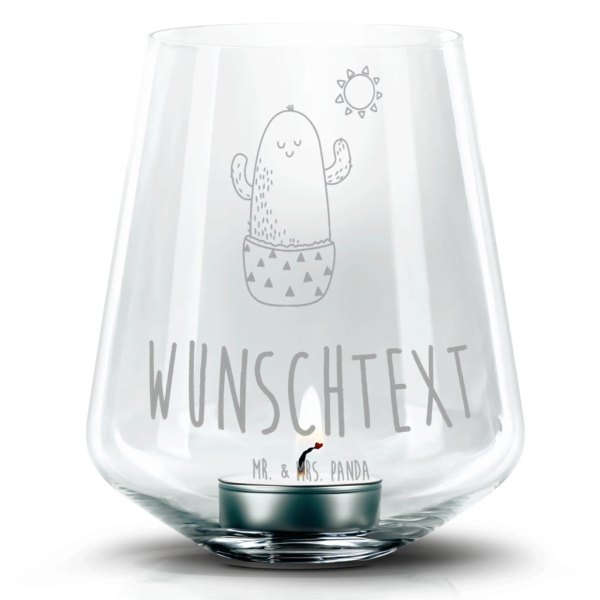 Personalisiertes Gravur Windlicht Kaktus Sonne – Mr. & Mrs. Panda