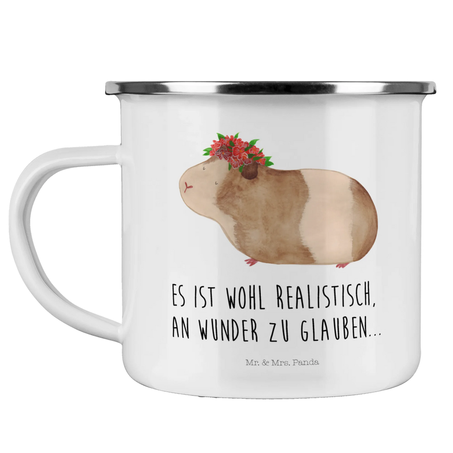 Enamel camping mug Guinea pig wisdom - with a saying - White