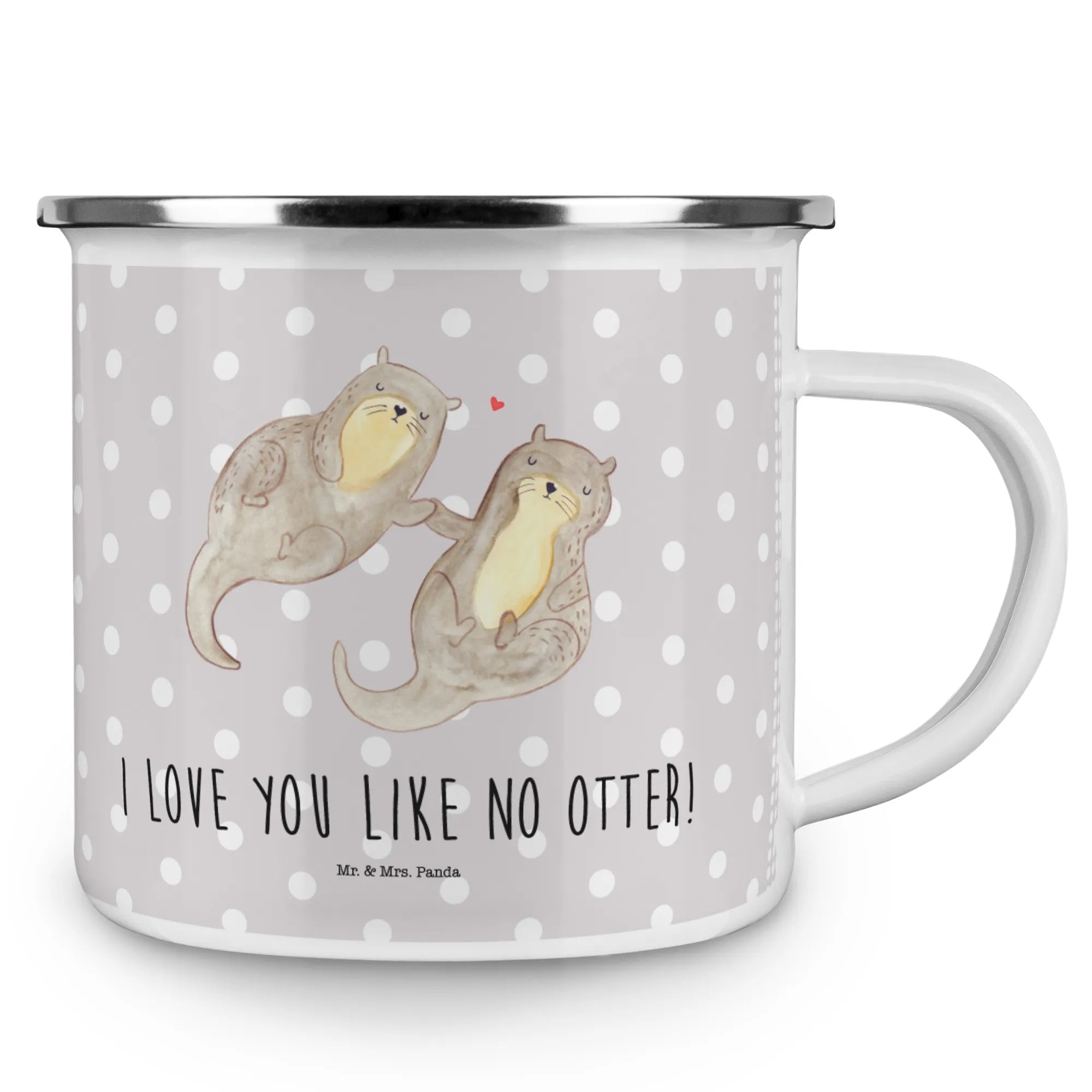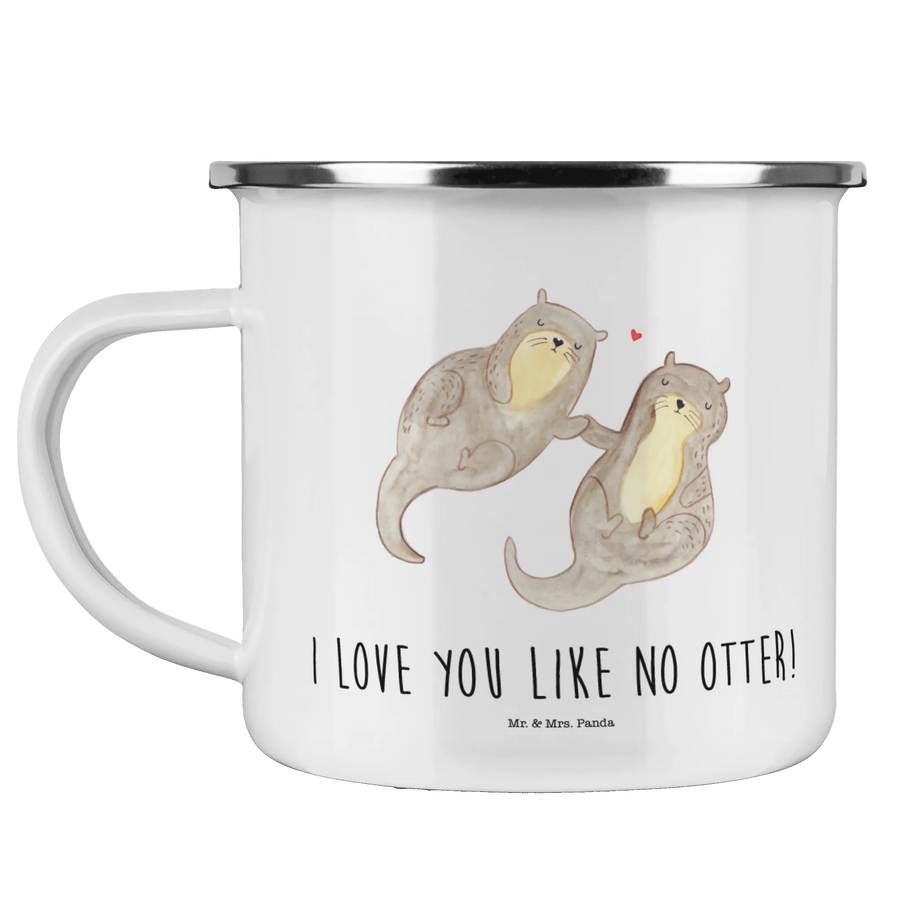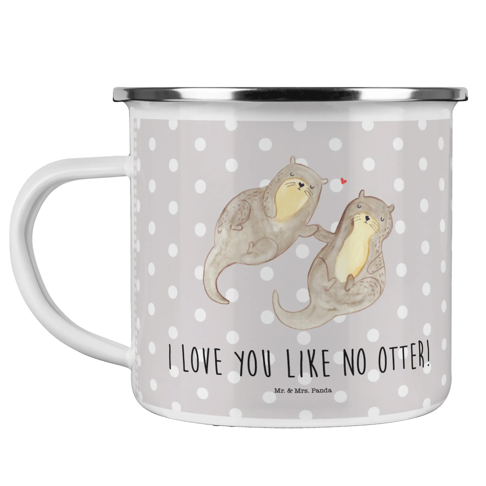 Introducing our delightful Enamel Camping Mug from the beloved Otter - Collection, featuring the cutest otters holding hands! This charming cup is not only a perfect companion for your outdoor adventures but also an ideal gift for anyone who adores these aquatic animals. The moment you sip your favorite coffee or tea from this lovely mug, you'll feel the warmth of those little otters capturing the essence of love and friendship.