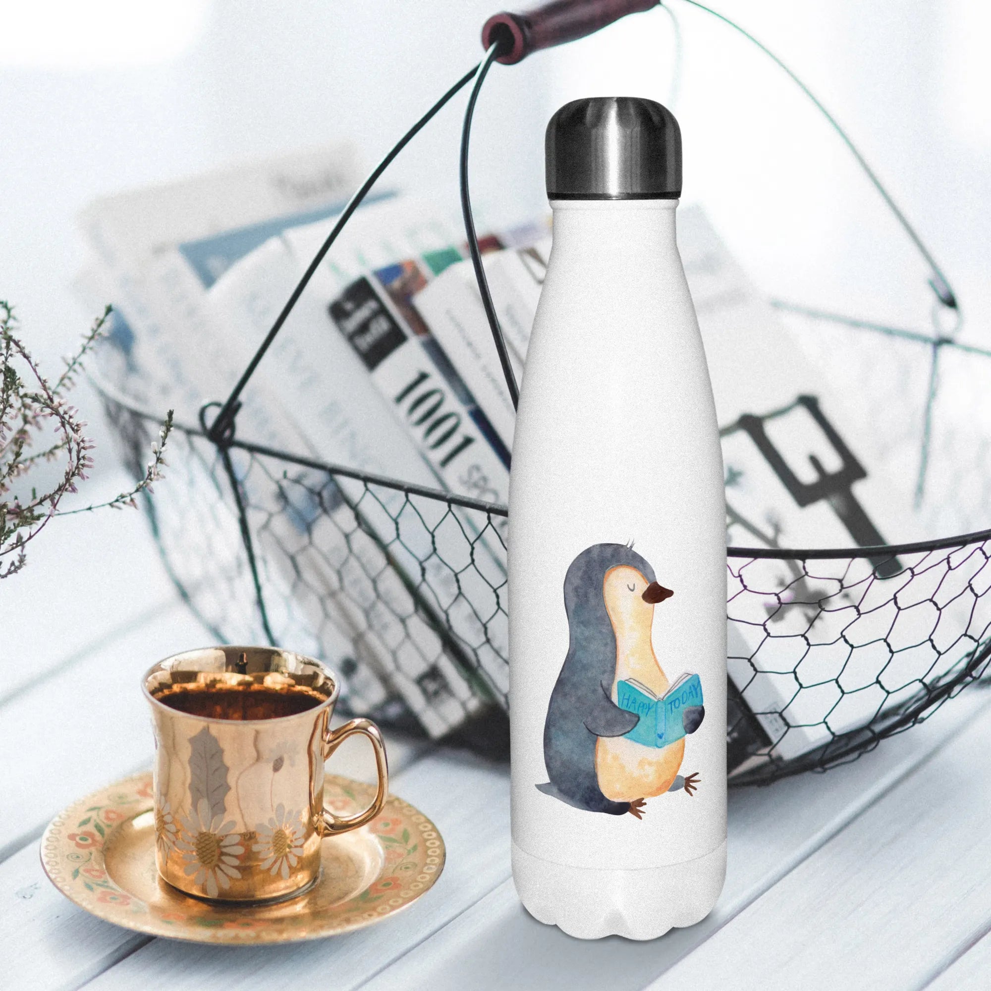 Mit dieser Thermosflasche schenkt Du nicht nur eine praktische Getränkeflasche, sondern ein Gefühl von Gemütlichkeit und Ruhe. Ob als Thermobehälter für heißen Kaffee an kalten Tagen oder als Metallflasche für erfrischendes Wasser bei warmem Wetter – die „Pinguin Buch“ Trinkflasche ist immer dabei.