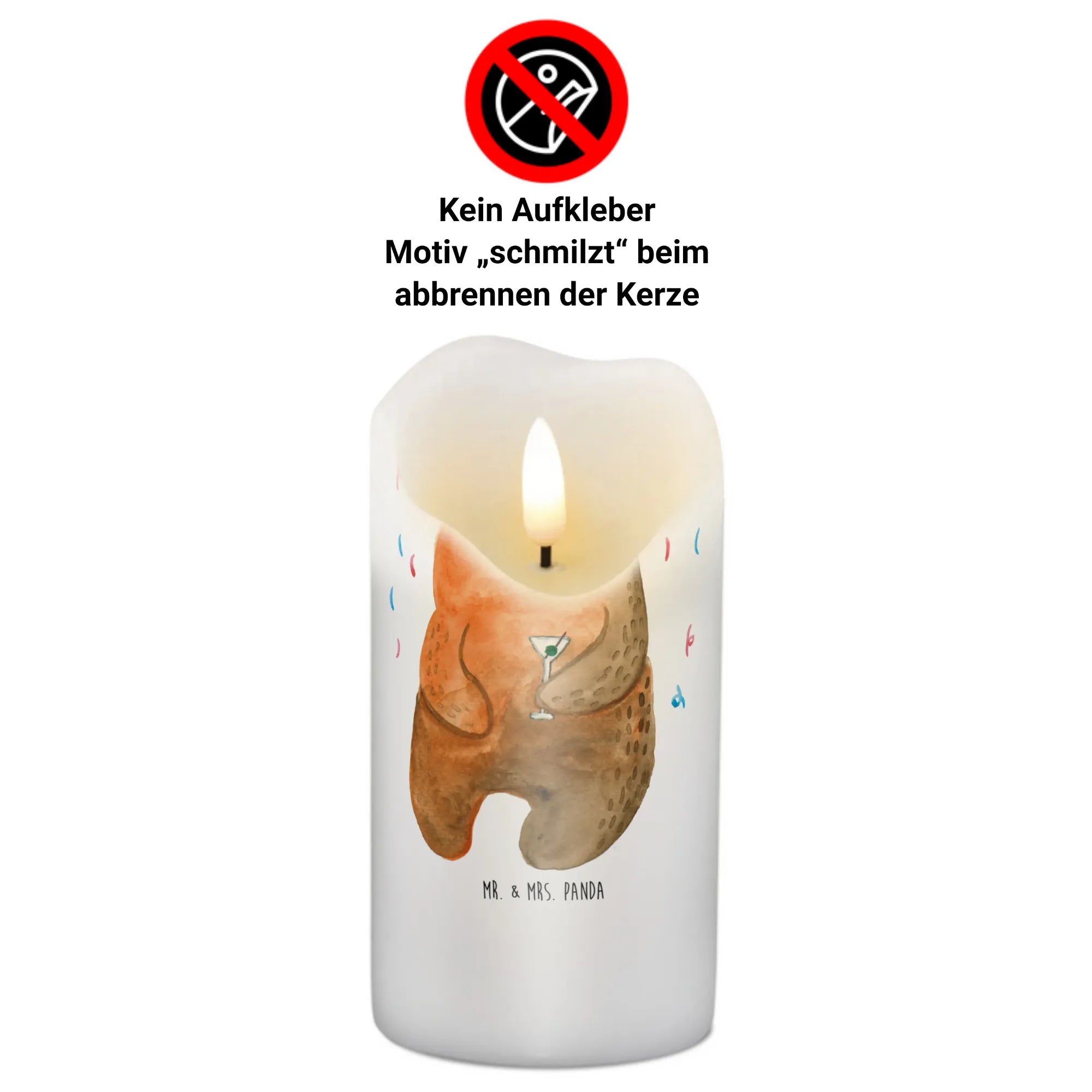 Bring joy to your celebrations with the delightful Mr. & Mrs. Panda Candle! This lovely candle measures 190 mm (7 inches) high and 80 mm (3 inches) wide, crafted from 250 g (9 oz) of superior paraffin wax. With playful quotes and charming designs, it’s perfect for birthdays, anniversaries, or special moments of reflection. The candle’s ultra-long burn time ensures that you can enjoy its beauty even longer. A unique feature is the subtle transparent wax layer, which adds a special touch as the design melts elegantly while the candle burns. Available in a variety of sizes, you're sure to find the perfect fit for your occasion. Gentle cleaning agents and careful hand cleaning are recommended to keep your candle looking its best. Whether it’s lighting up a celebration or serving as a tribute candle, this one is sure to impress!