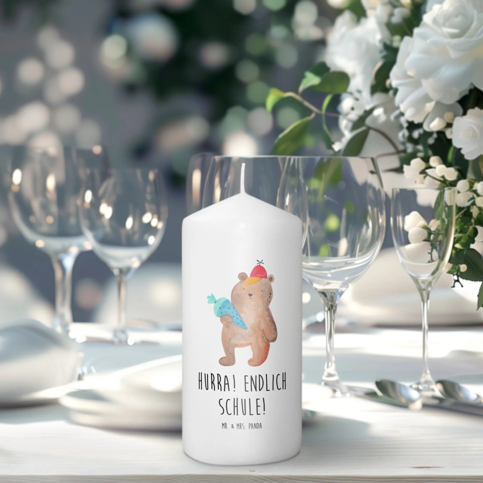The slogan "Hurra! endlich Schule!" captures the excitement of beginning school, even though this version is without text, the charming bear alone conveys the joy. Besides being an enchanting decoration, this candle offers a special ambiance, perfect for gatherings, birthdays, or simply lighting up the evening at home.